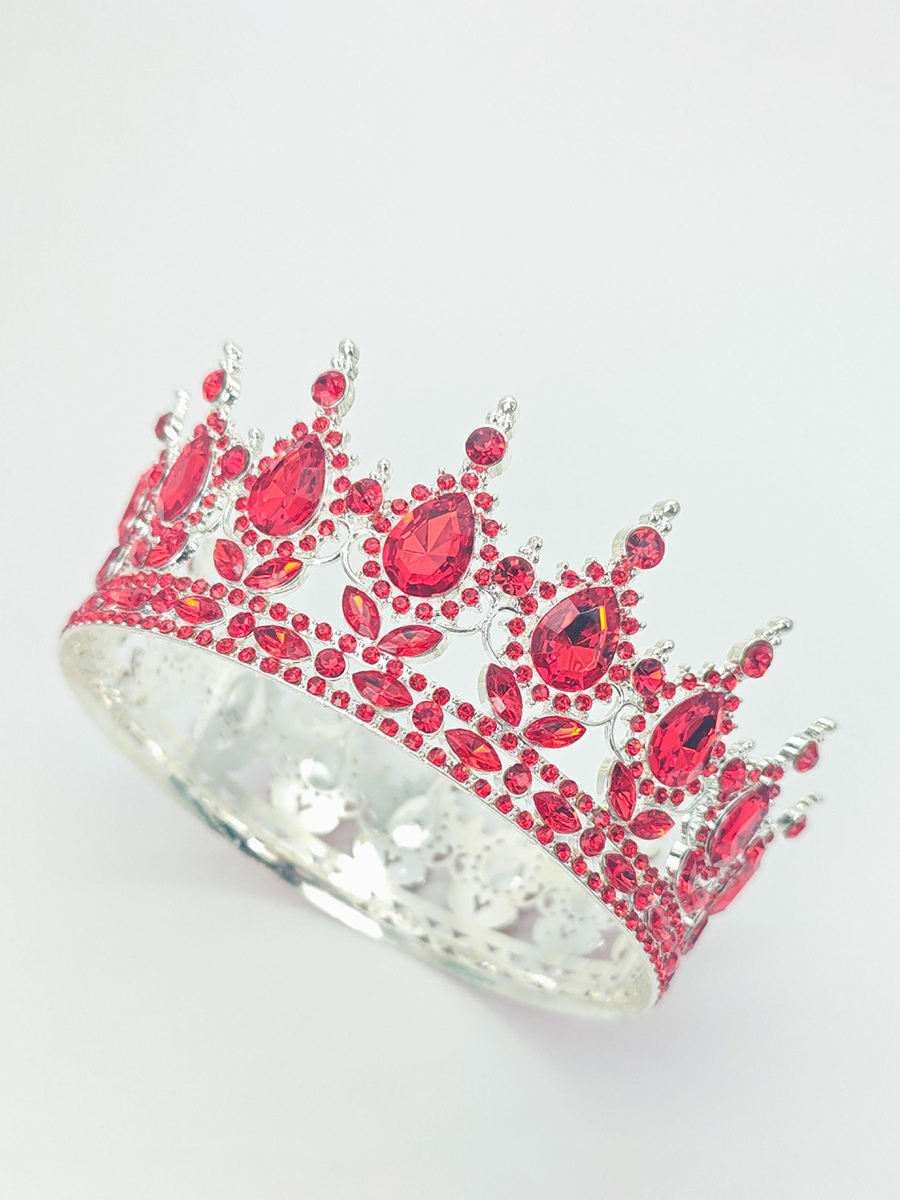 赤いヴィンテージクラウンティアラエレガントな合金クリスタルヘッドウェアアクセサリー