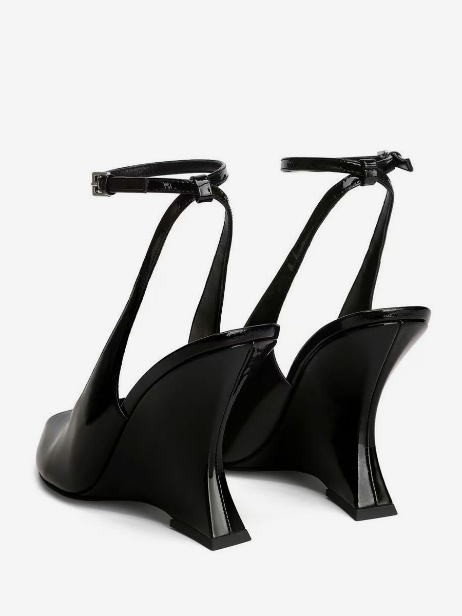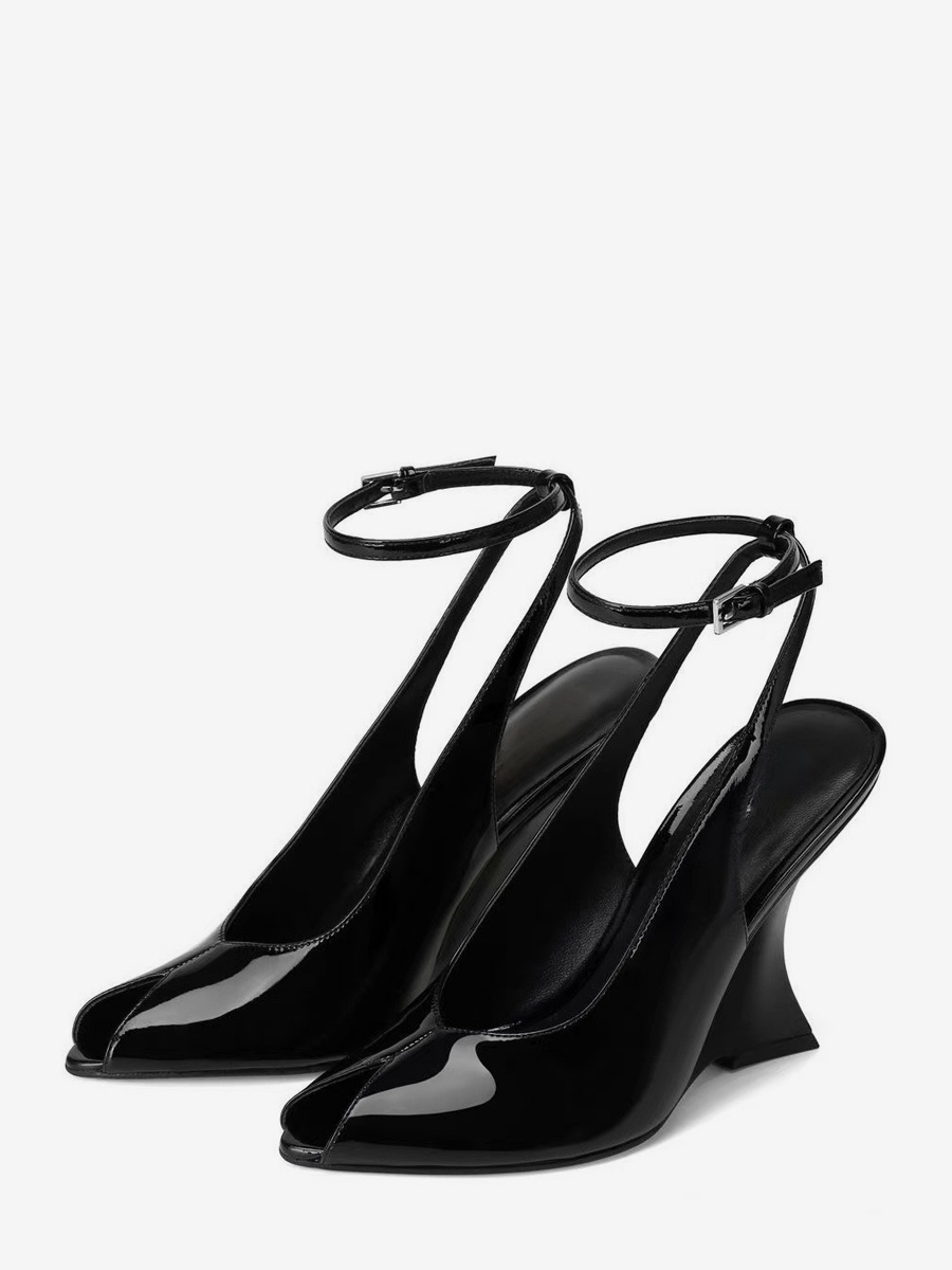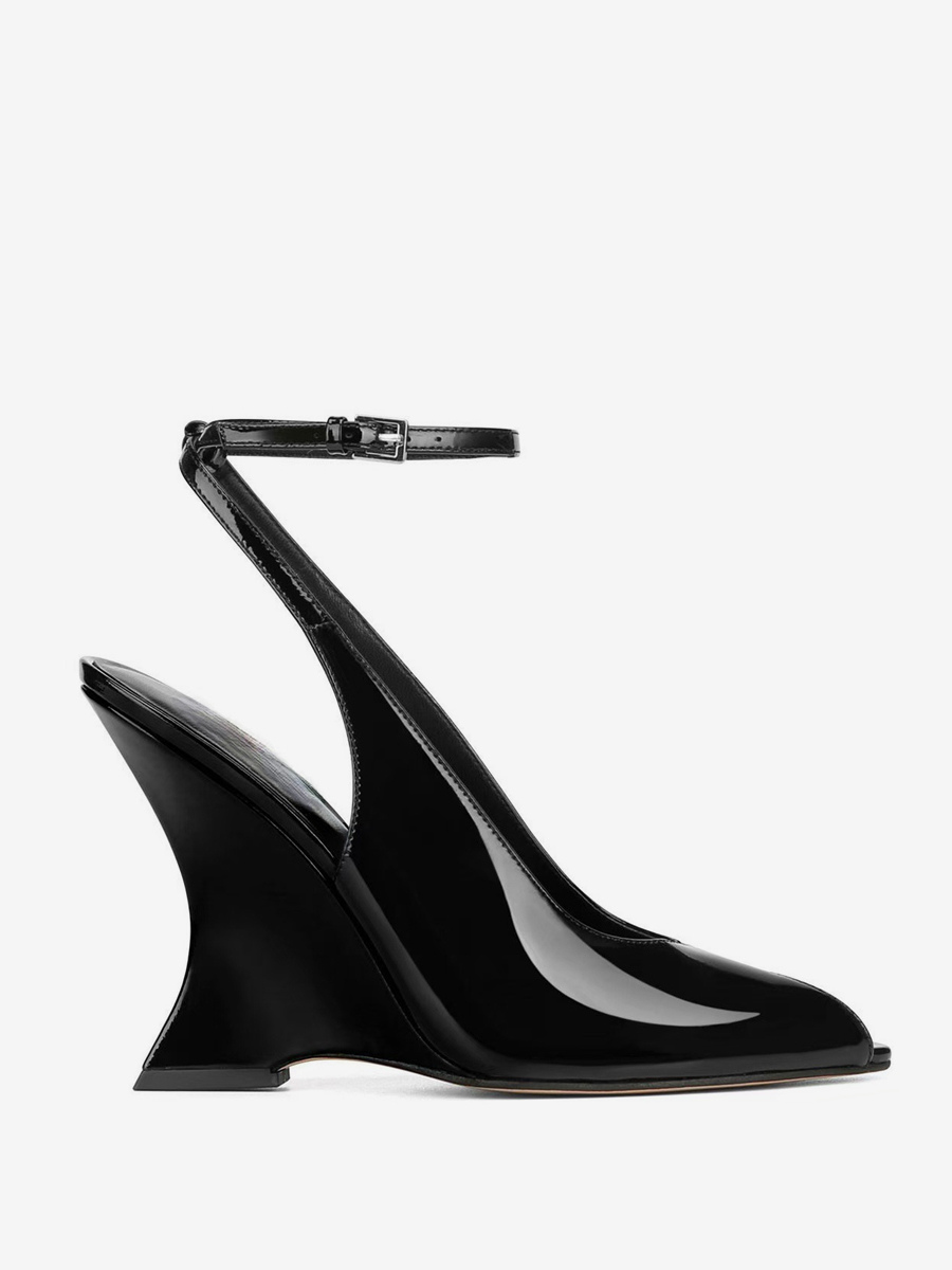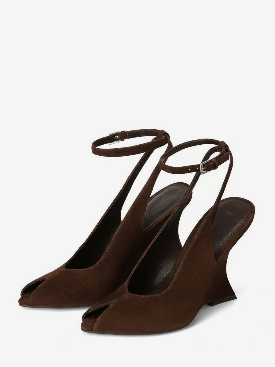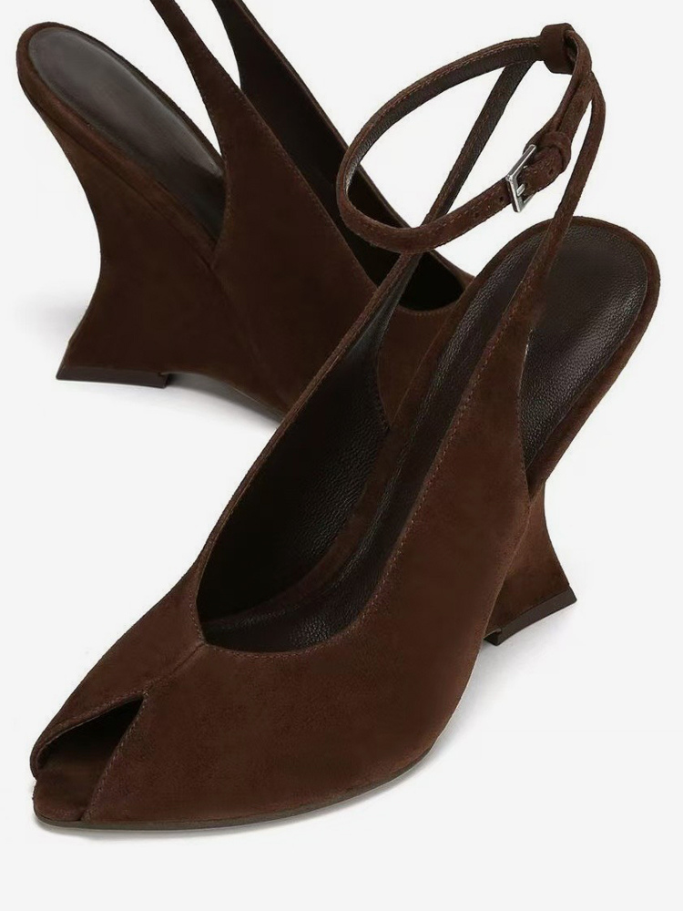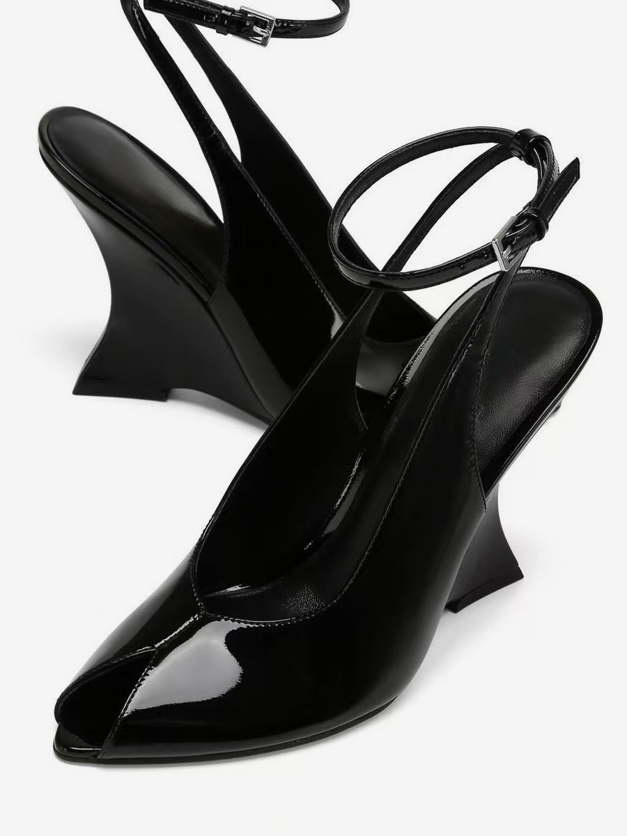 レディース ウェッジパンプス ピープトゥデザインヒール スリングバックヒール