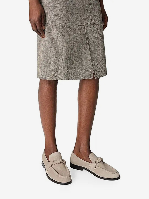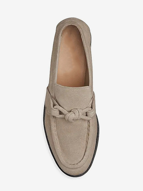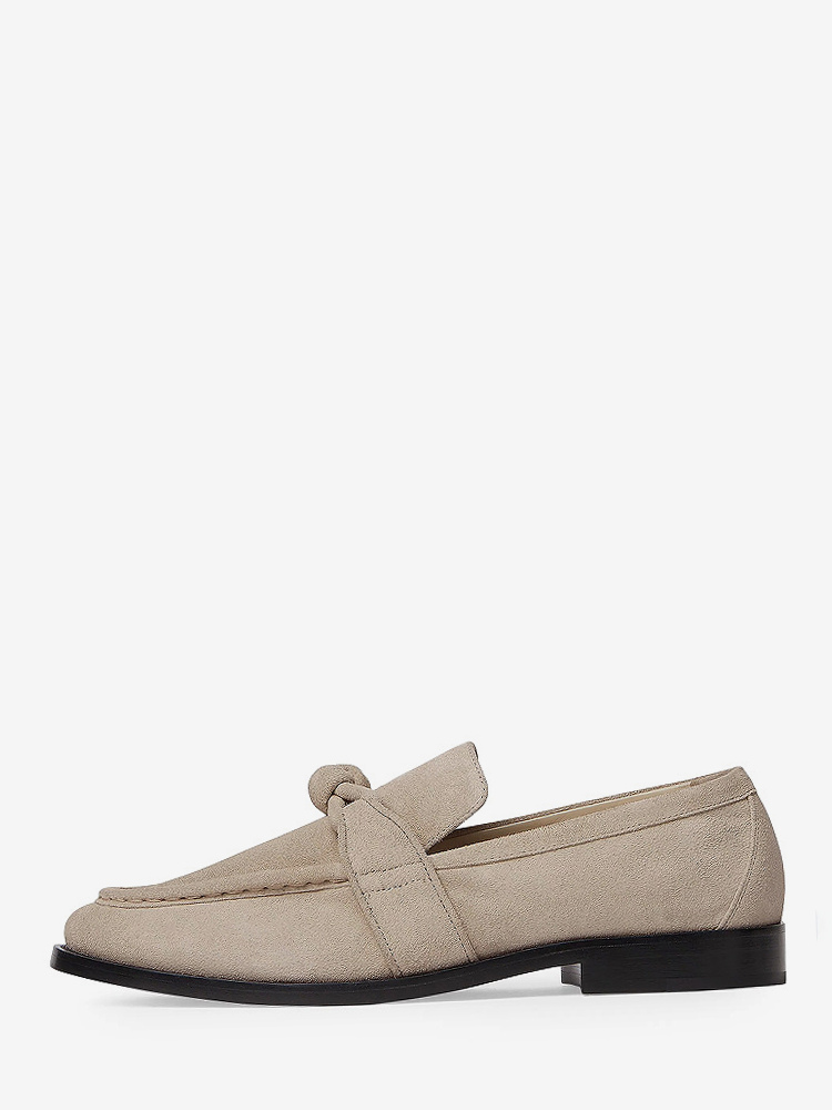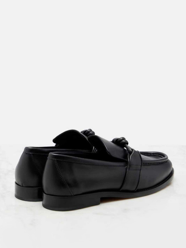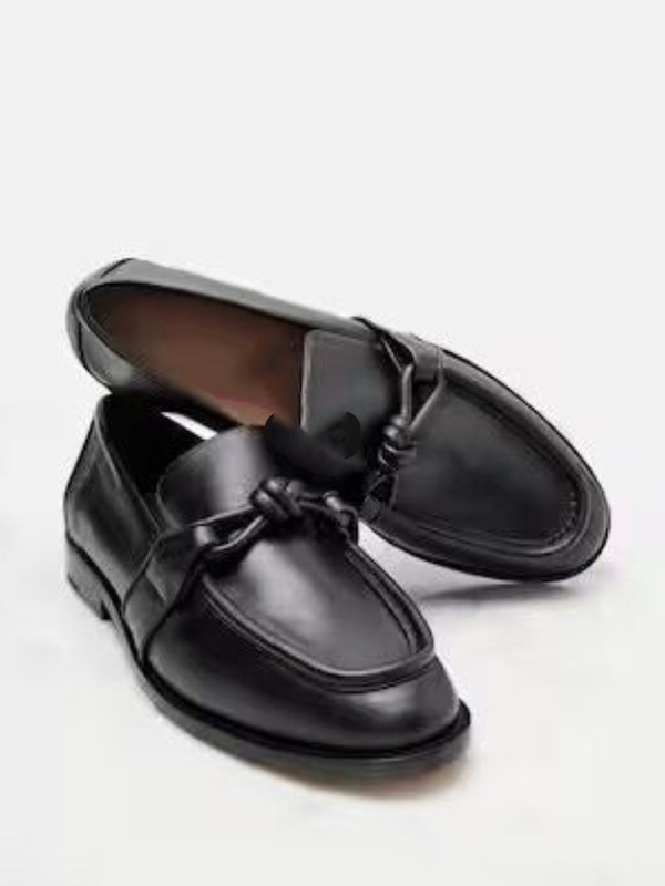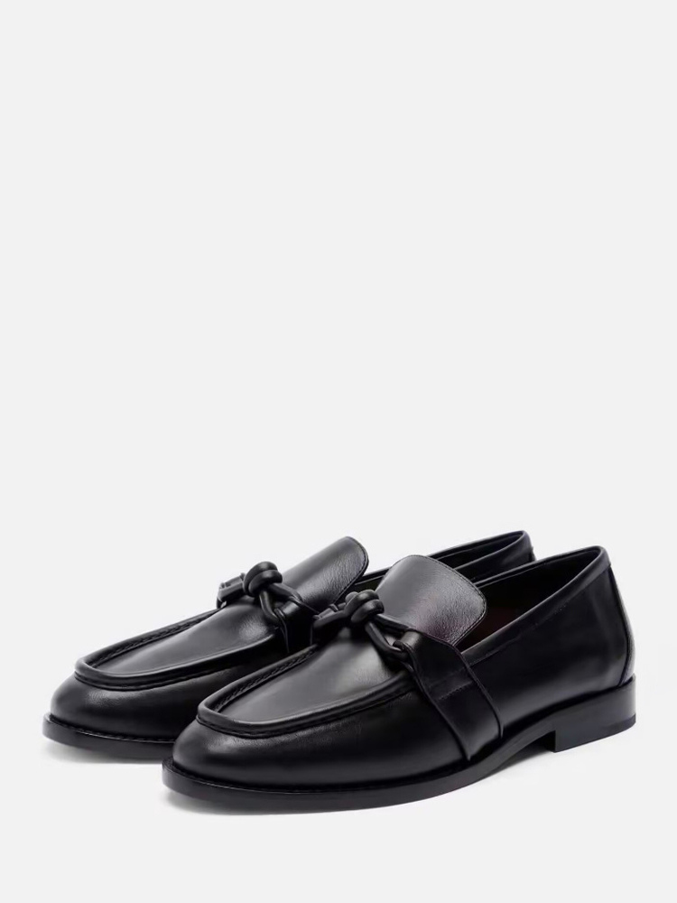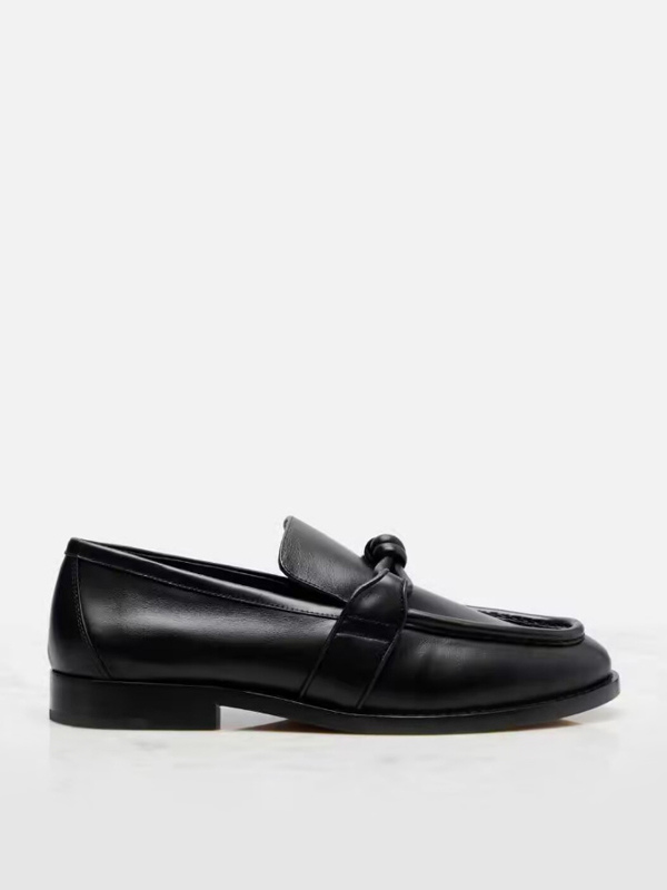 レディース ブラック ローファー 天然皮革 ノット付き スリッポン フラットシューズ
