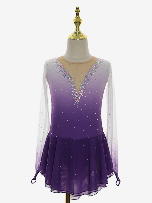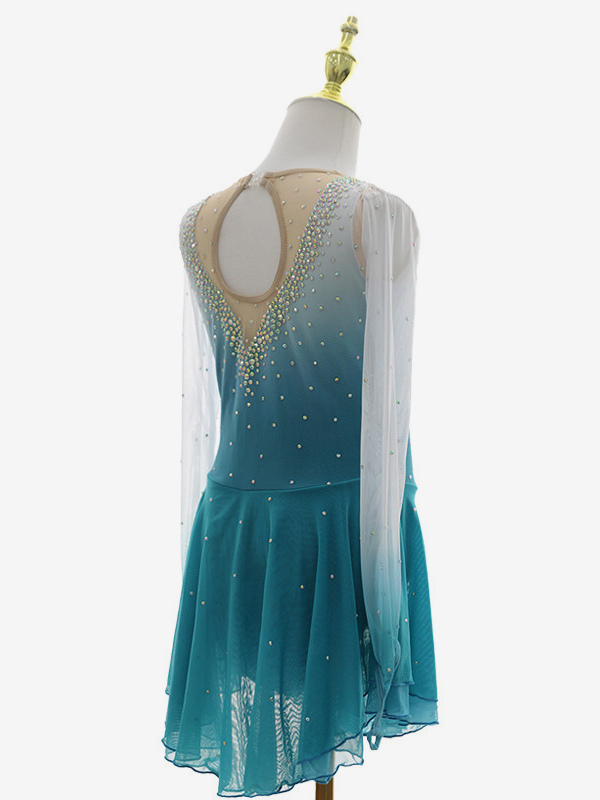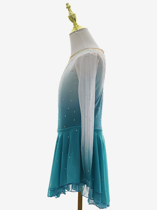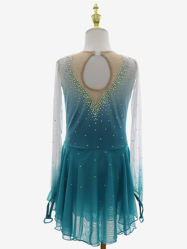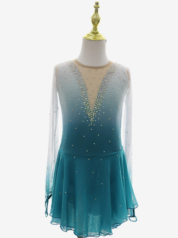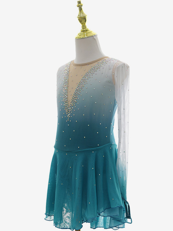 エレガントなフィギュアスケート衣装 ビーズラインストーンメッシュ長袖スケートドレス