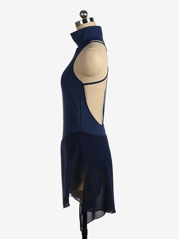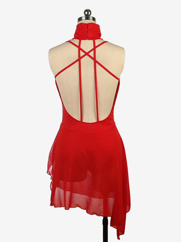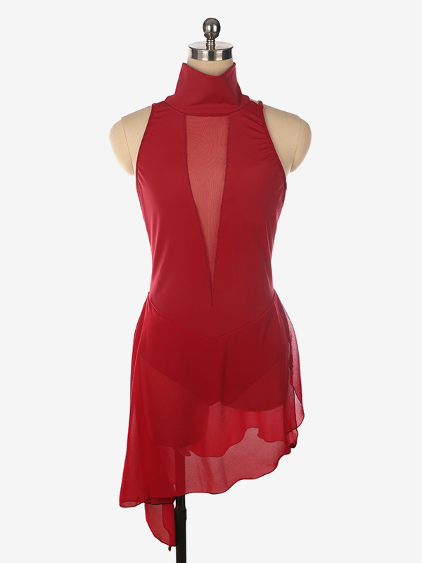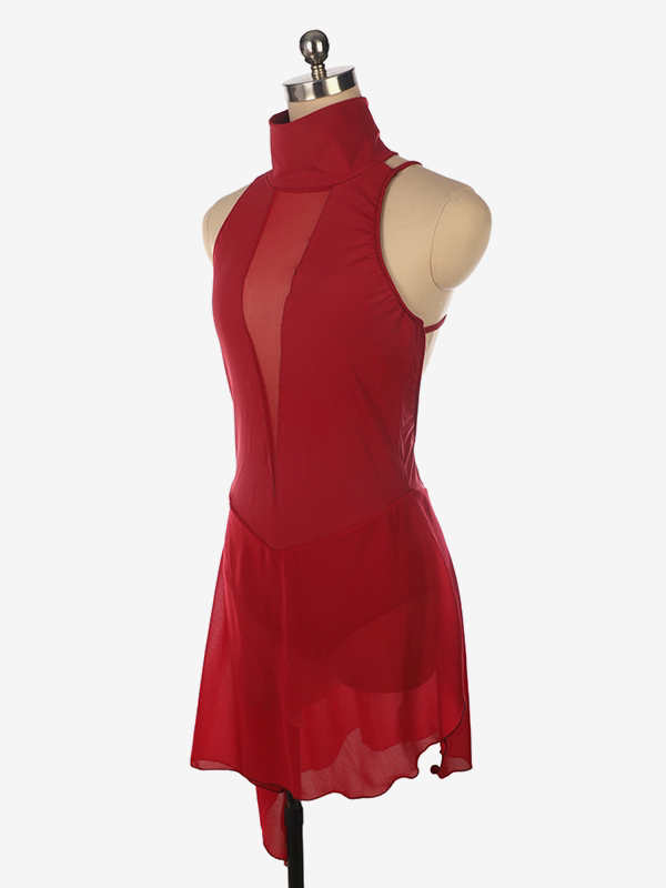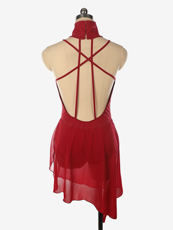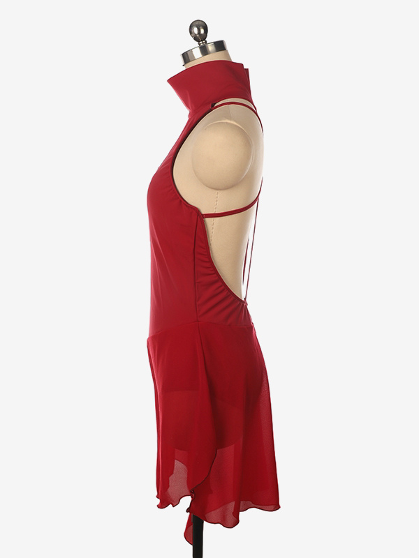 バーガンディスケートドレス ハイカラー ノースリーブ バックレス クロス ストラップレス スケートドレス