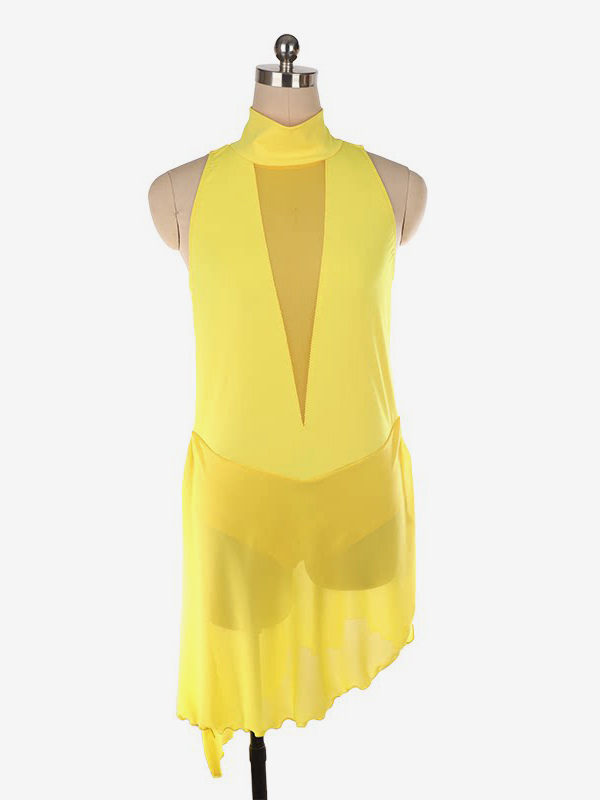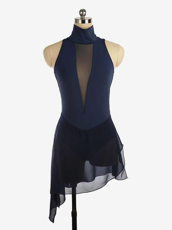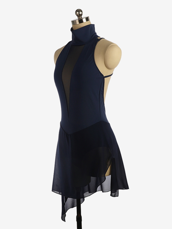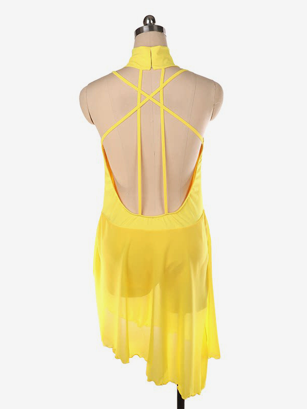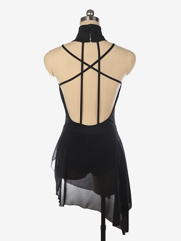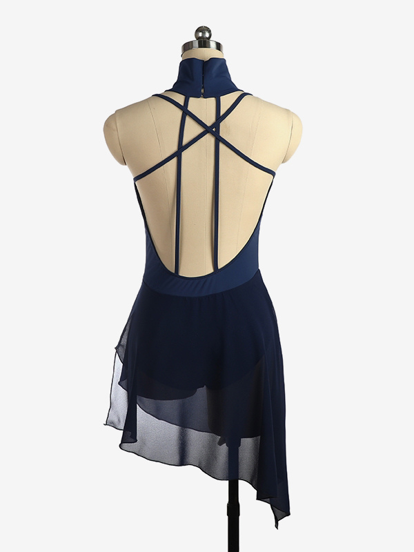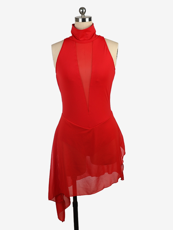 バーガンディスケートドレス ハイカラー ノースリーブ バックレス クロス ストラップレス スケートドレス