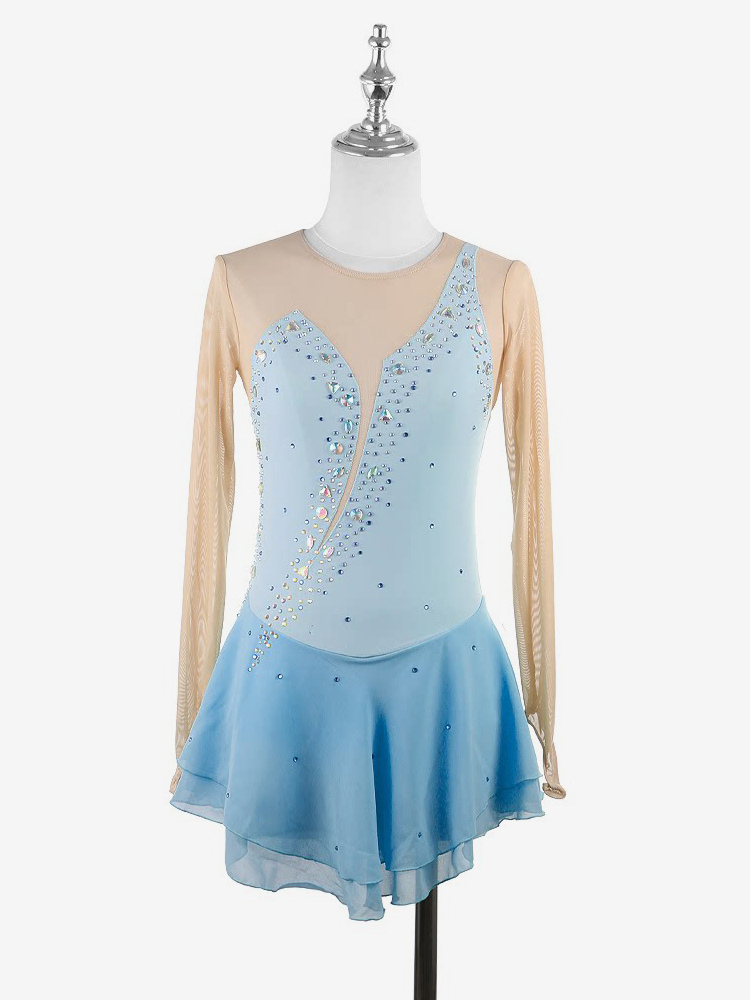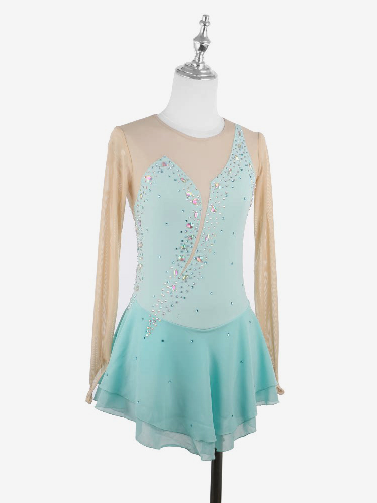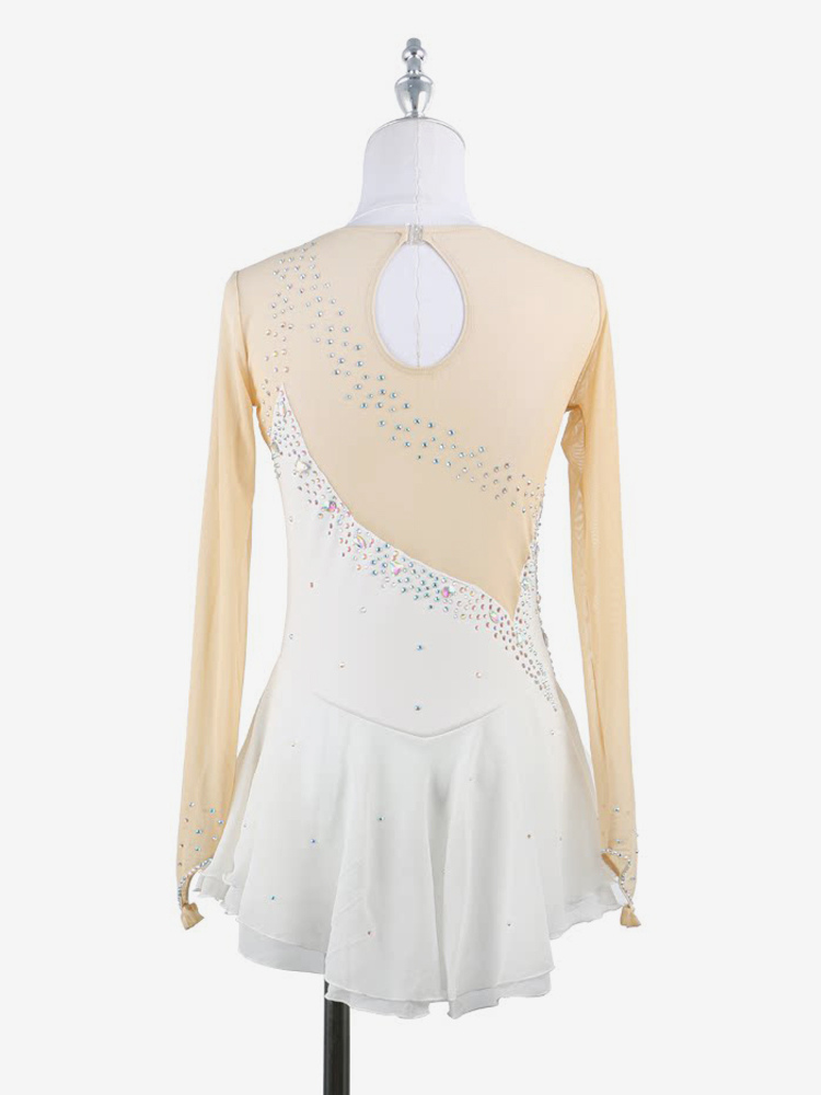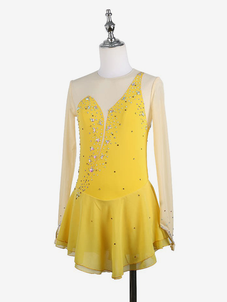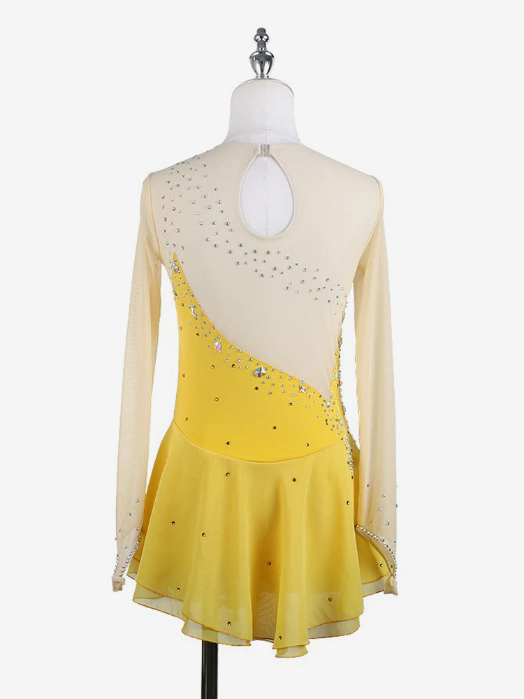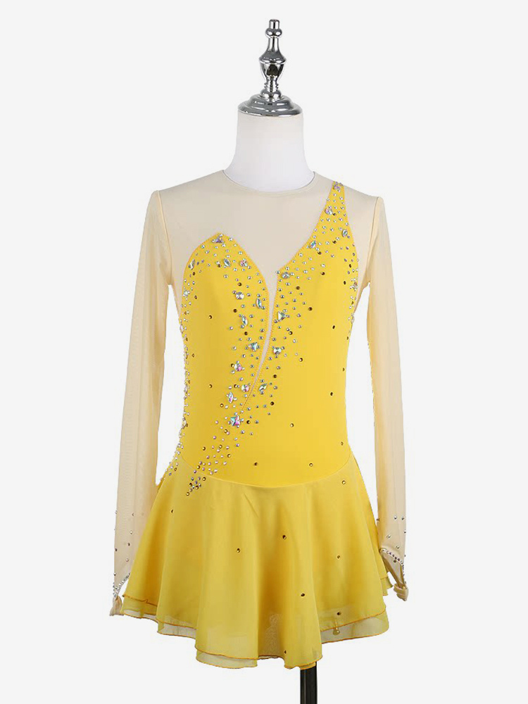 イエローのレディースガールスケートドレスヌードロングスリーブライントーンアイススケータードレス