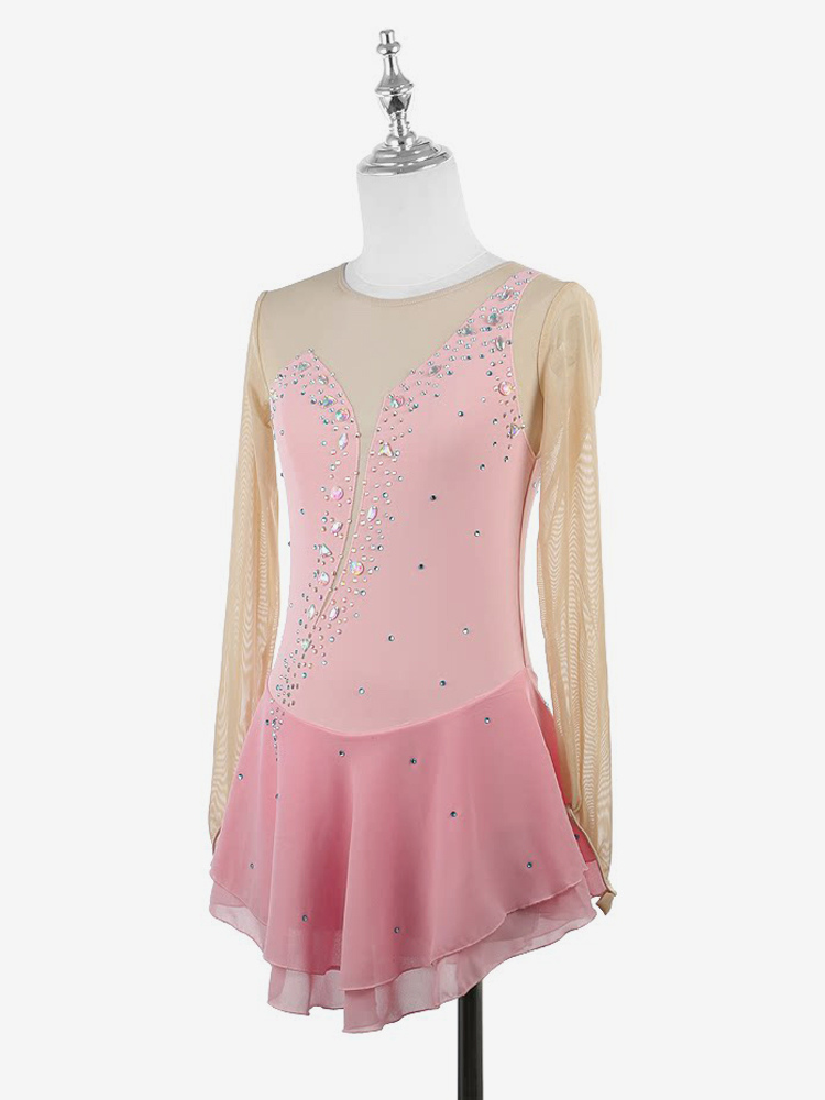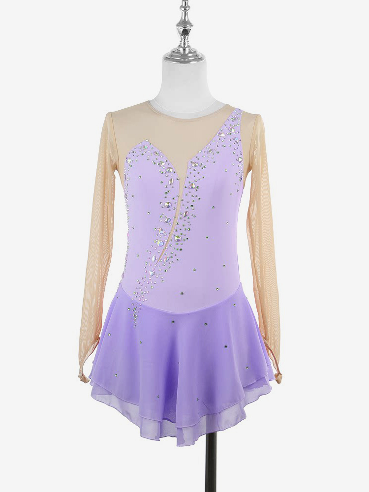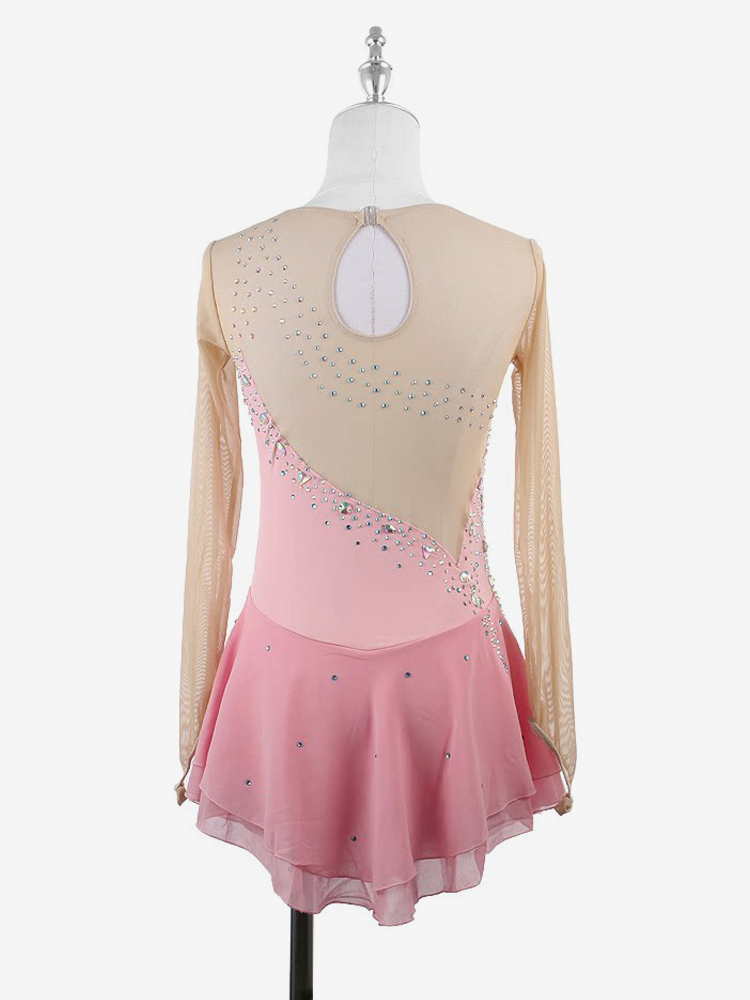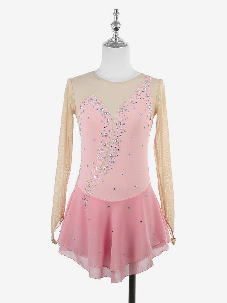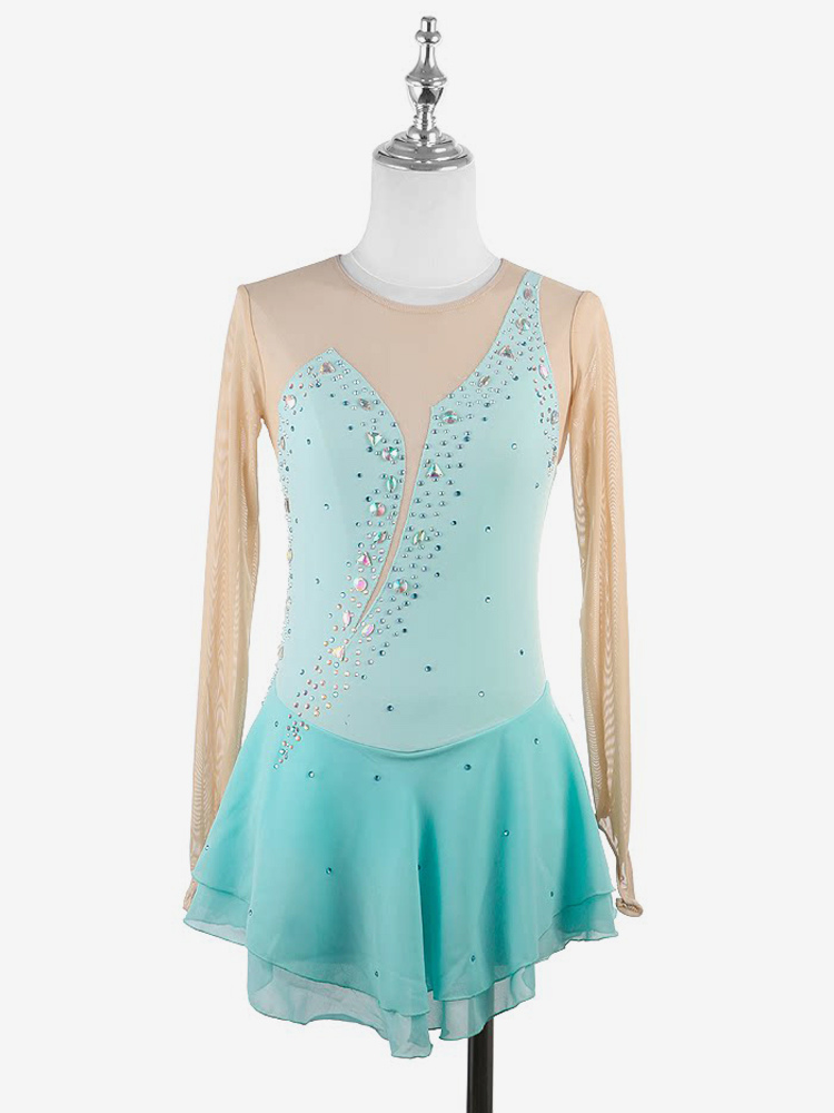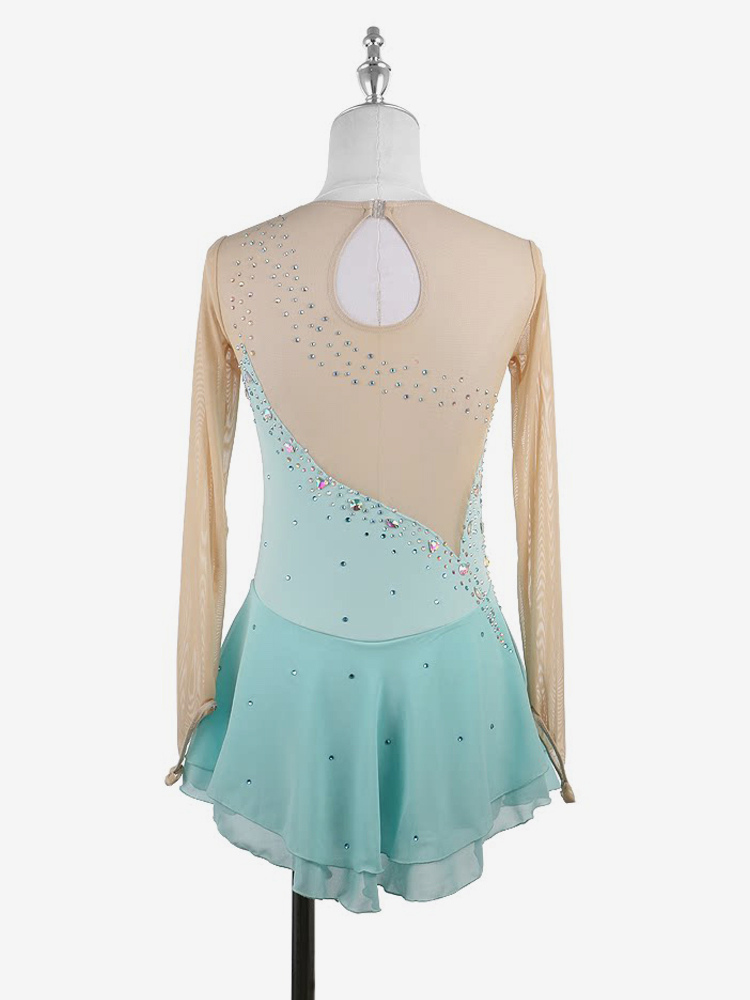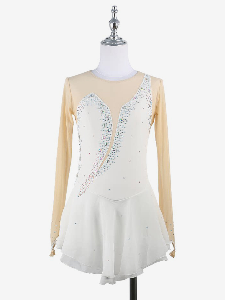イエローのレディースガールスケートドレスヌードロングスリーブライントーンアイススケータードレス