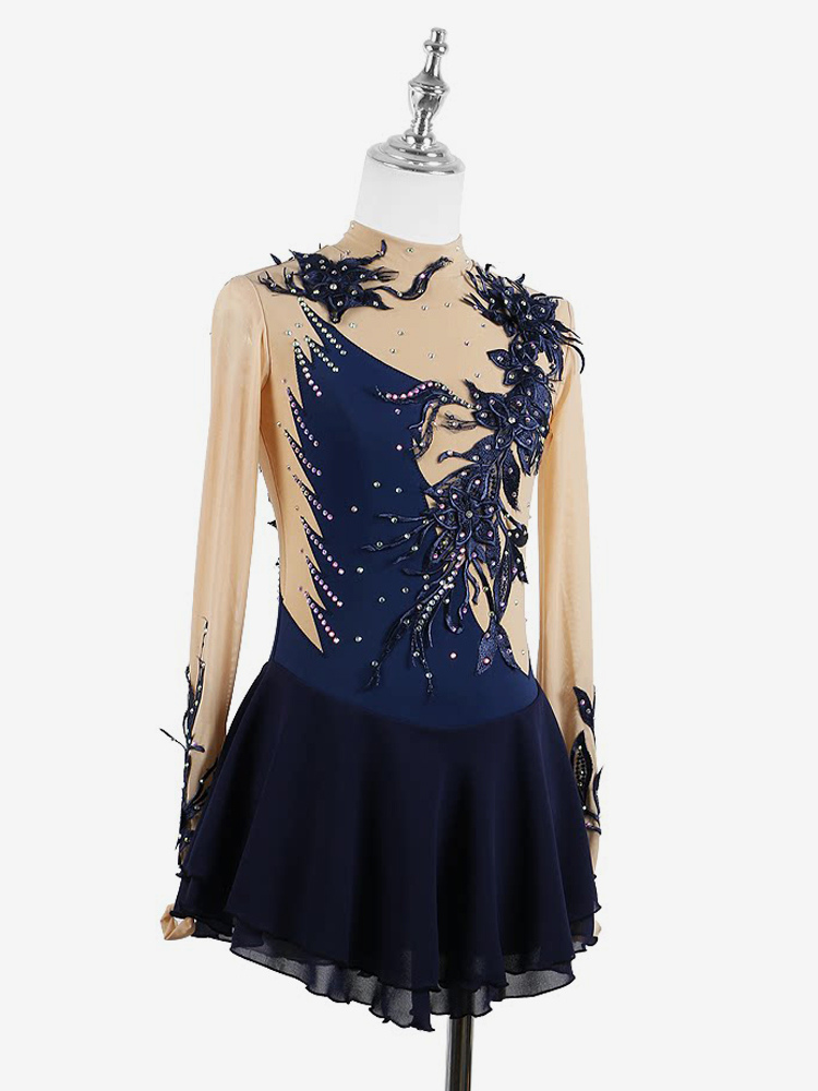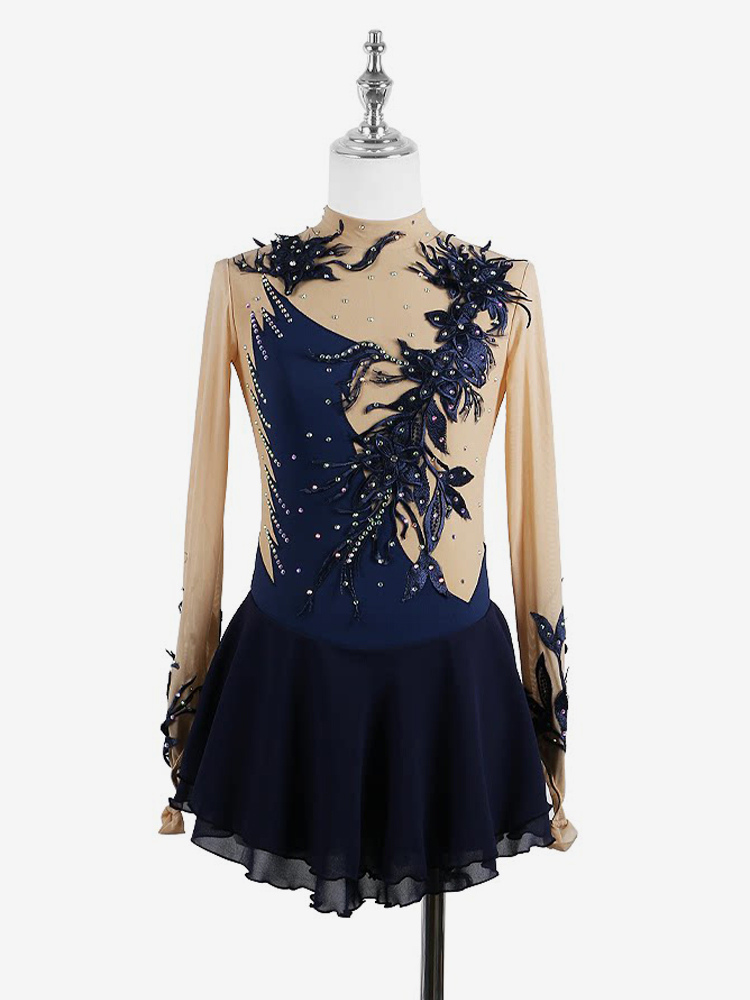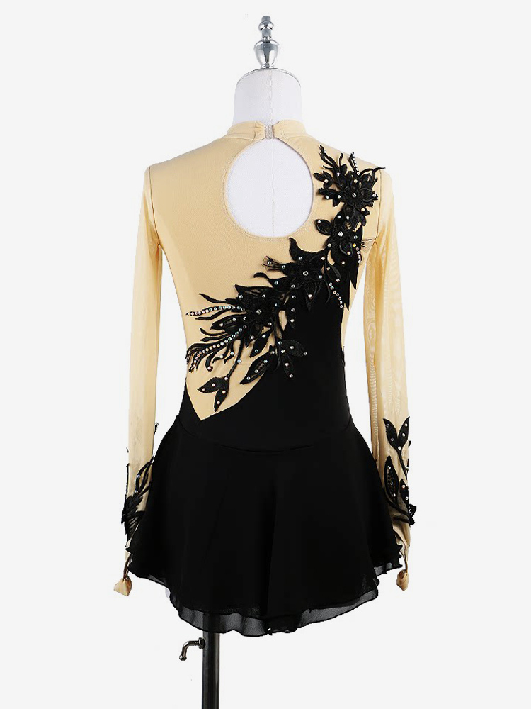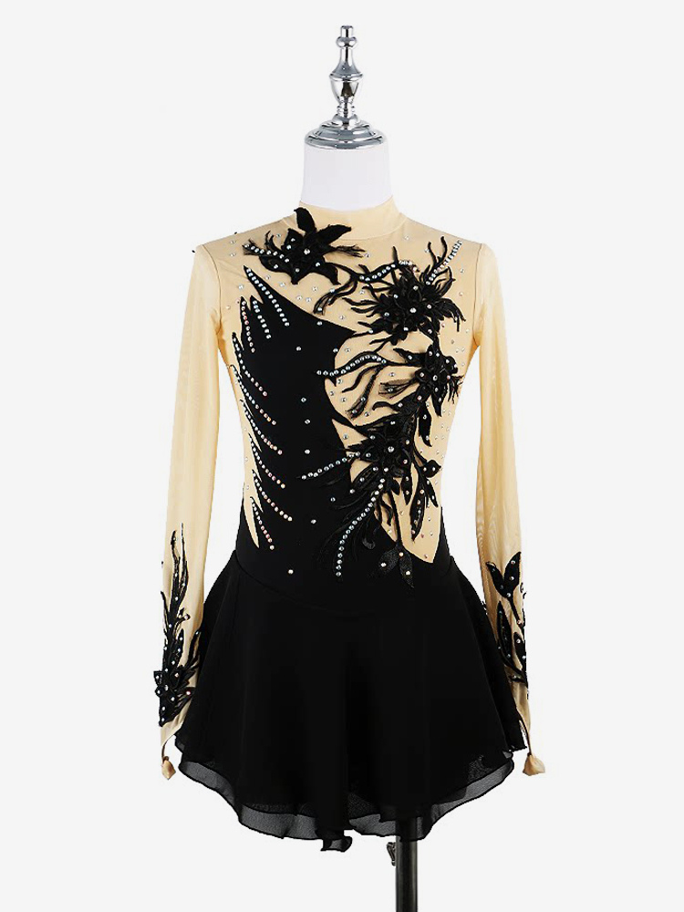 ブラックスワン スケートドレス ビーズメッシュ エレガントな女性と女の子のアイススケータードレス