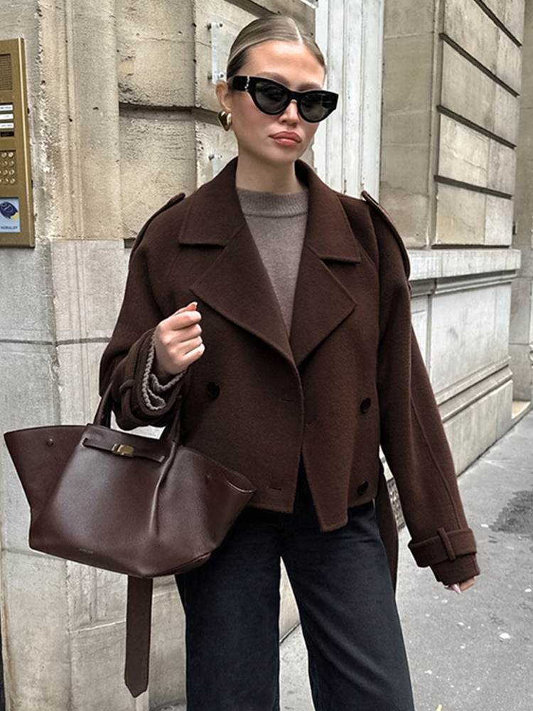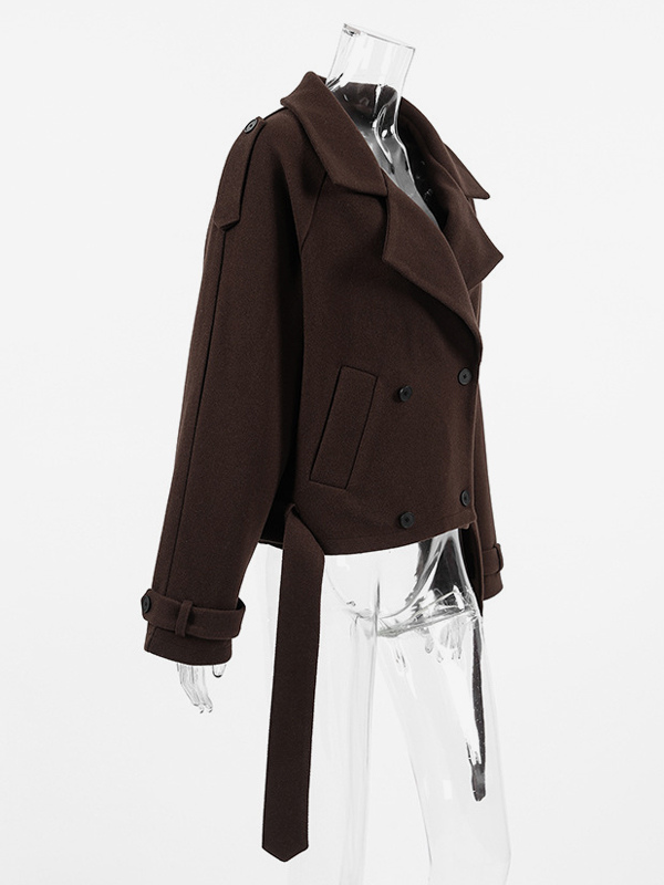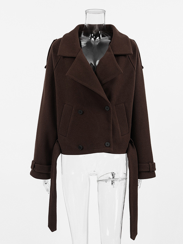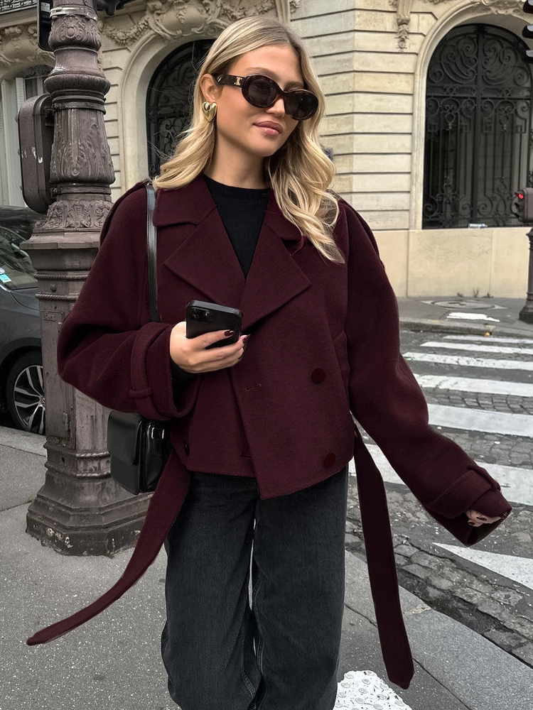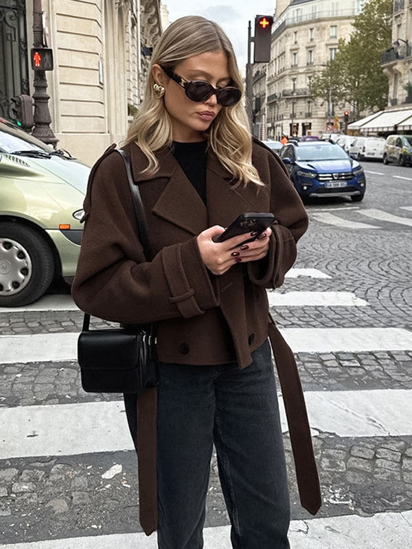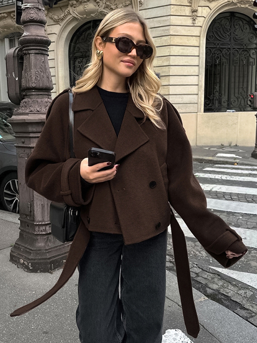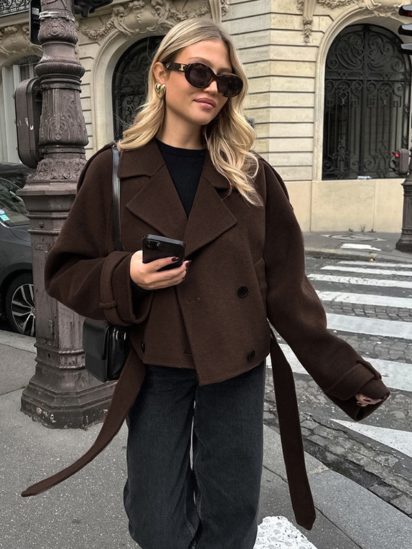 ダブルブレスト レディース ショートジャケット - シックなベルト付きクロップド丈 - 2026年春のカジュアルストリートウェア クワイエットラグジュアリー