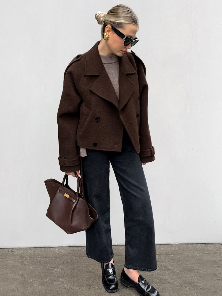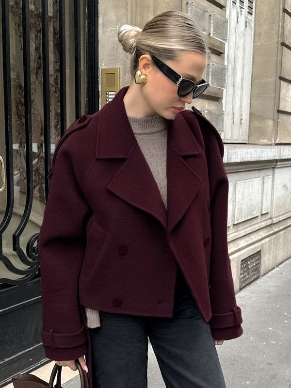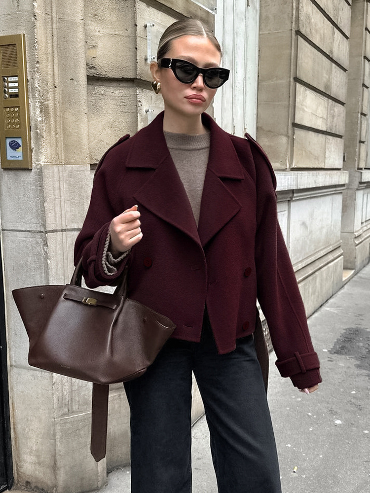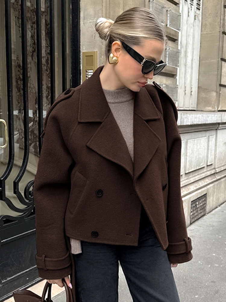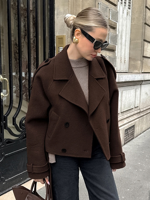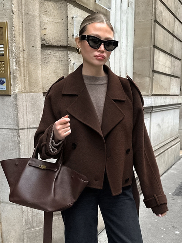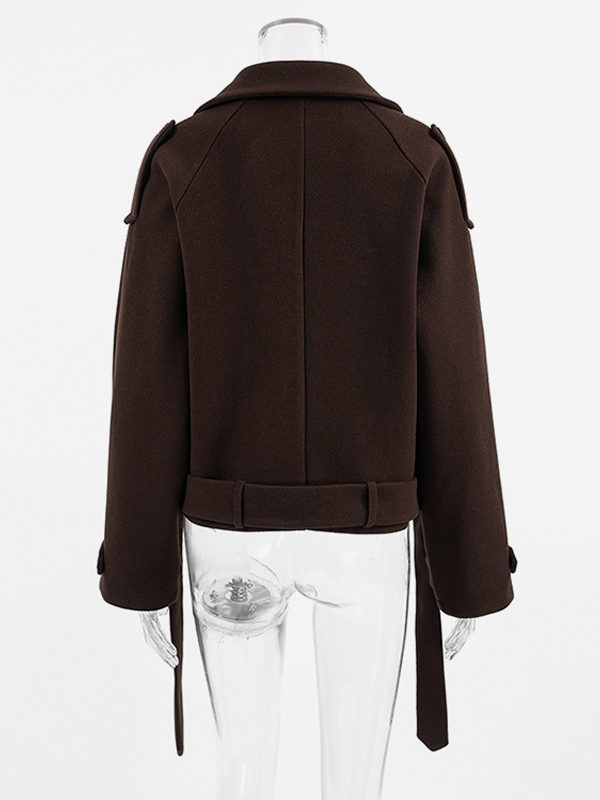 ダブルブレスト レディース ショートジャケット - シックなベルト付きクロップド丈 - 2026年春のカジュアルストリートウェア クワイエットラグジュアリー