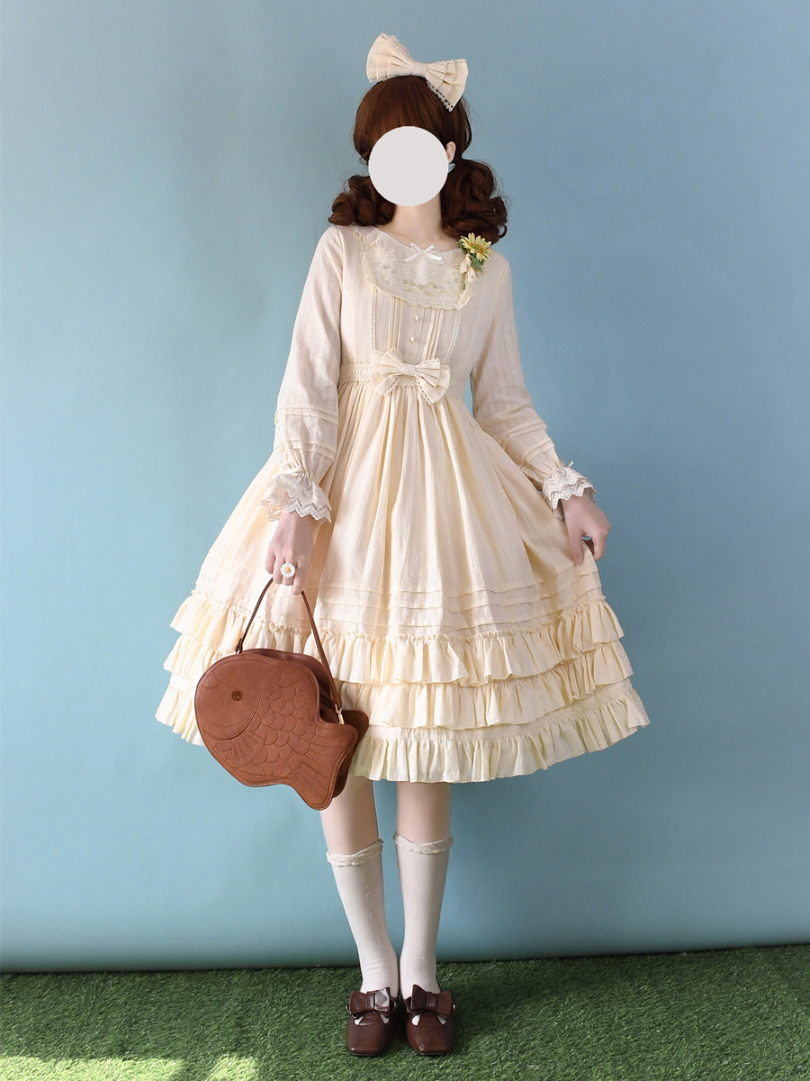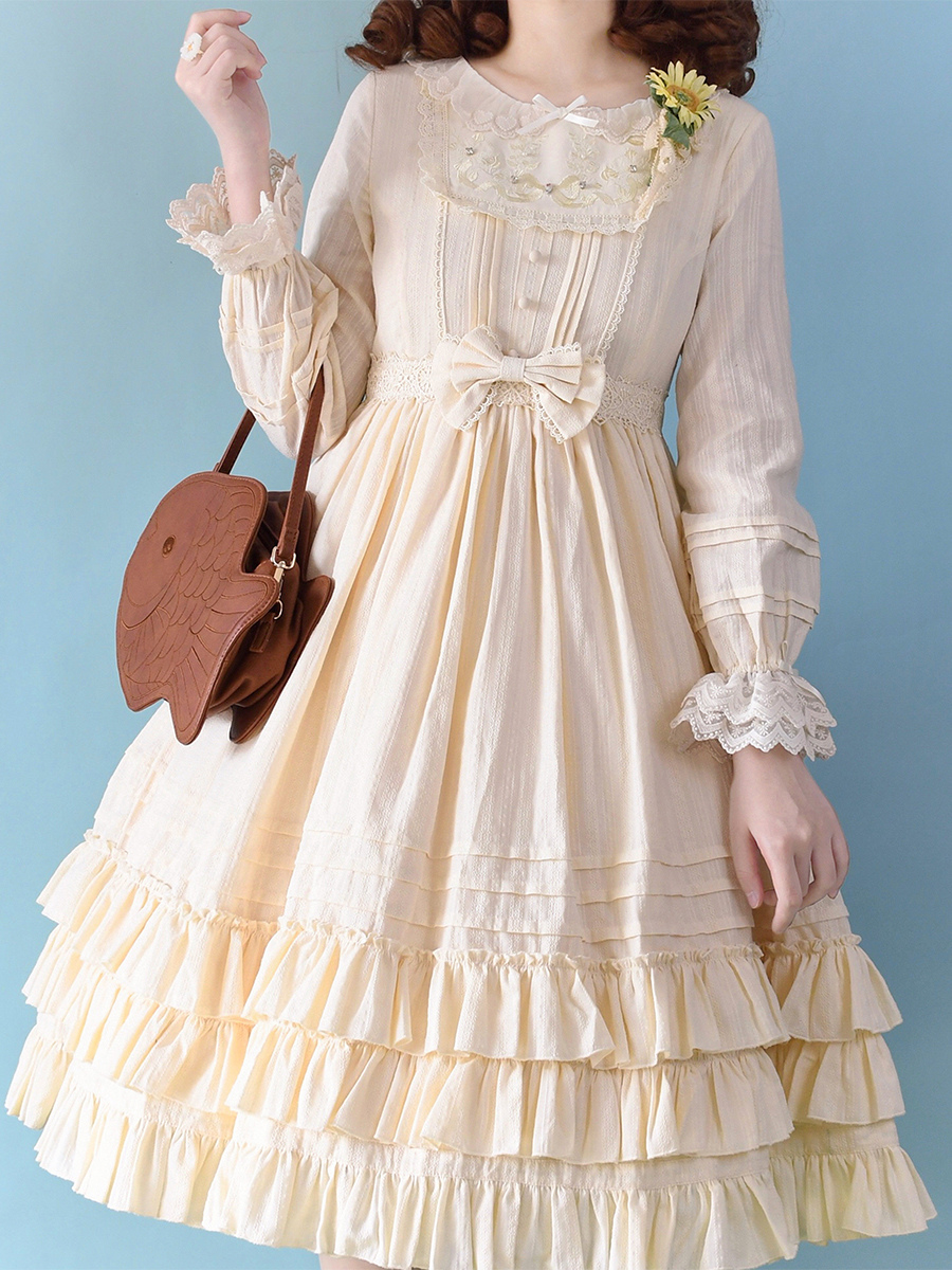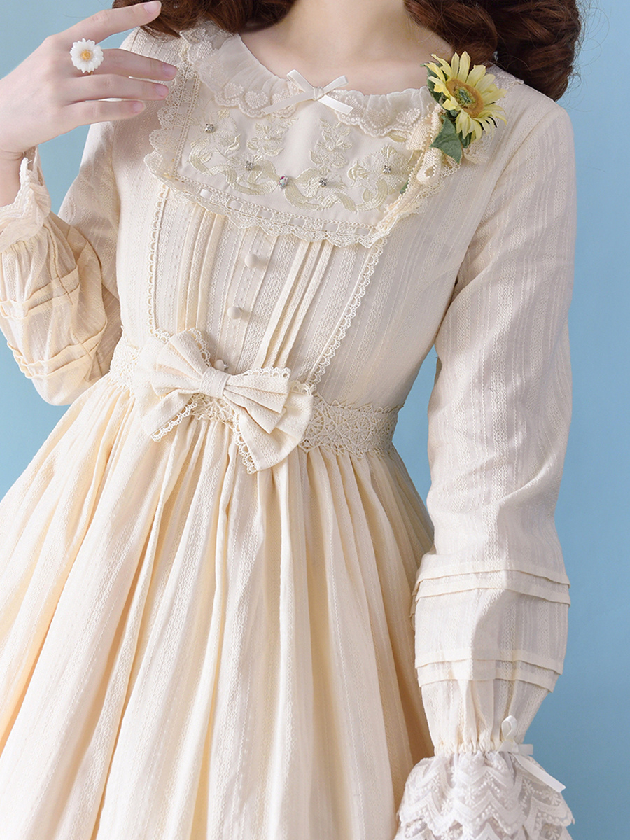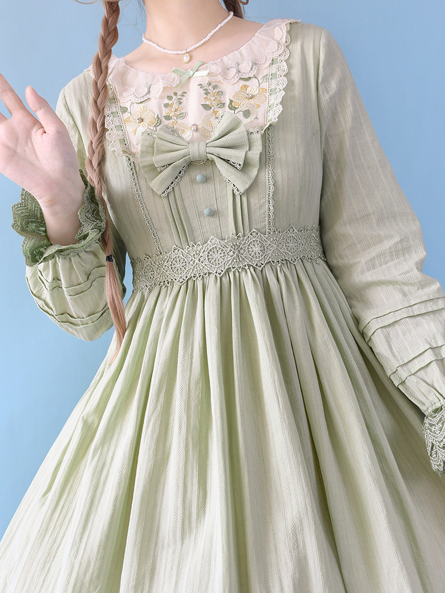 クラシックロリータドレス ポリエステル 長袖 草緑色ロリータドレス