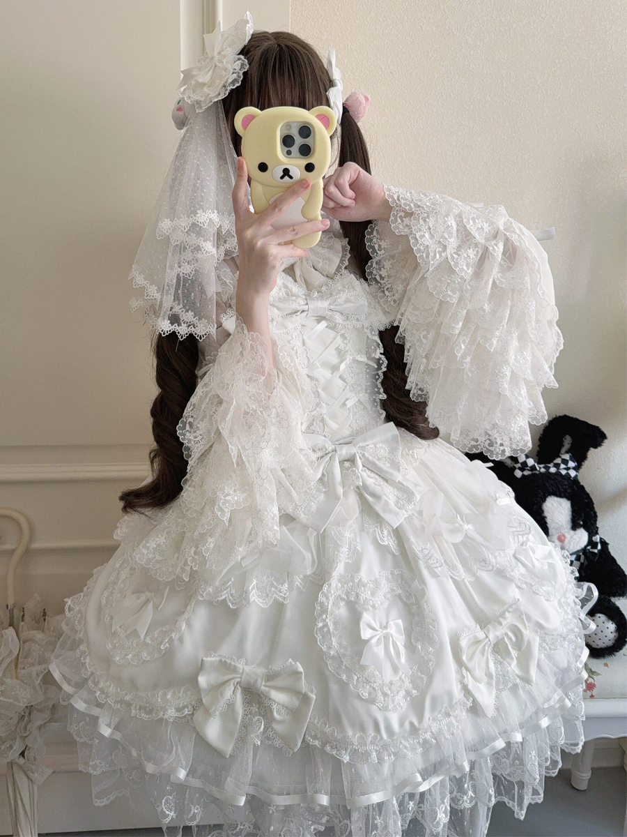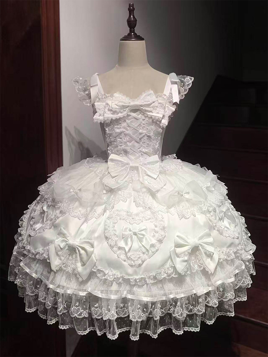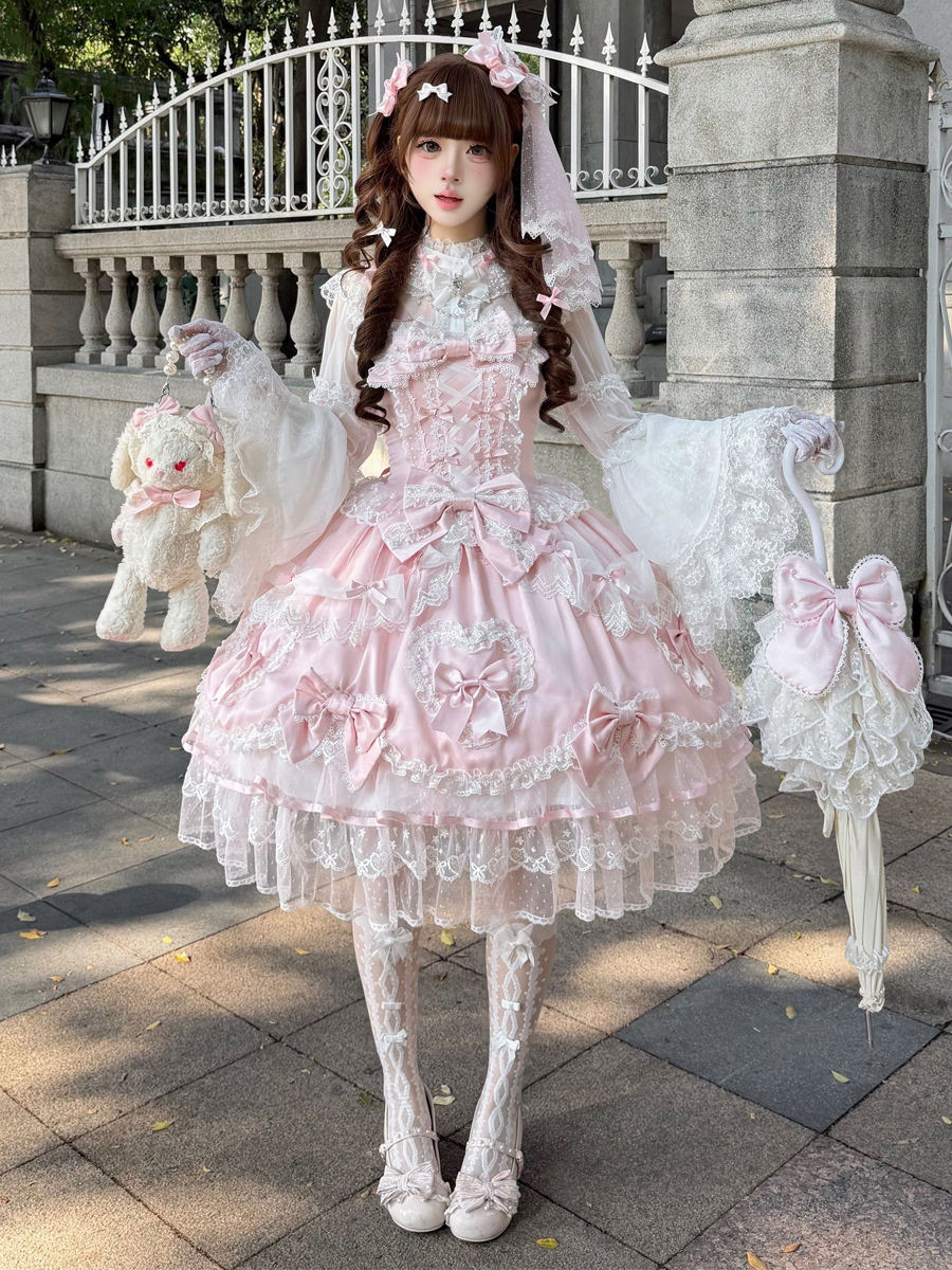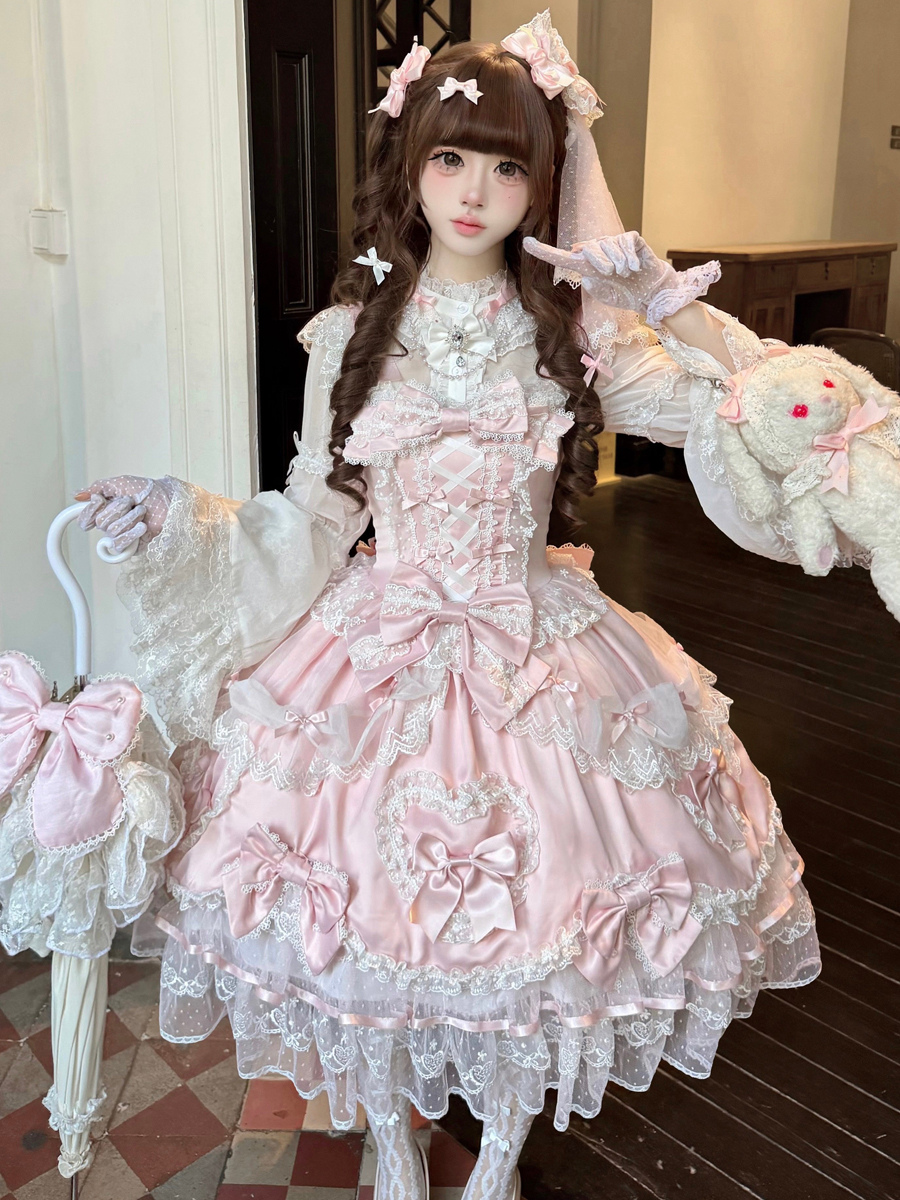 ピンクのスウィートロリータドレス、ノースリーブ、フリル、リボン付きJSK、姫ロリータドレス
