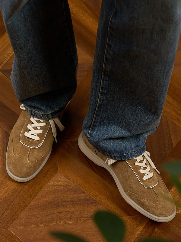 メンズ スエード スニーカー 牛革 ラウンドトゥ レースアップ カジュアルシューズ