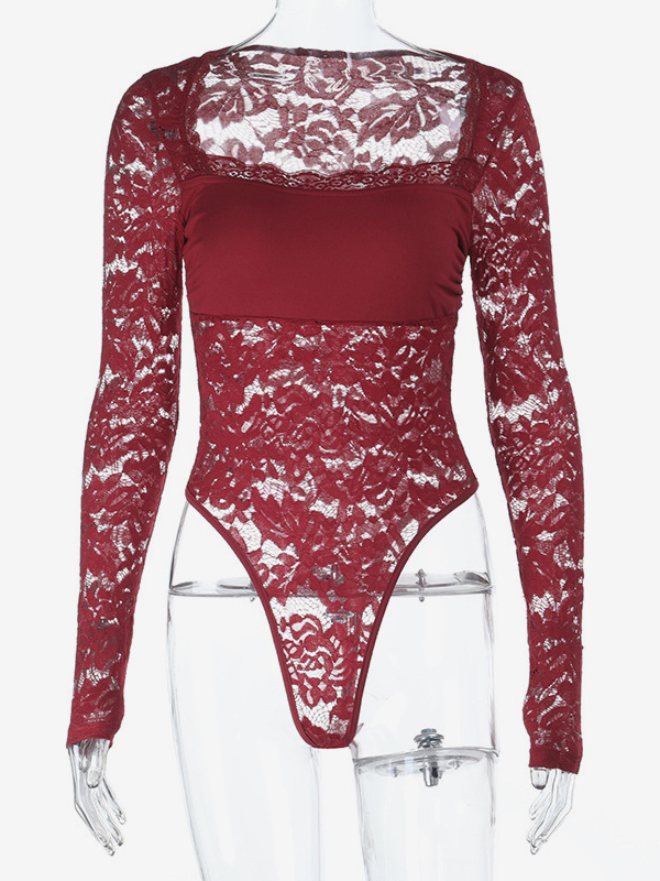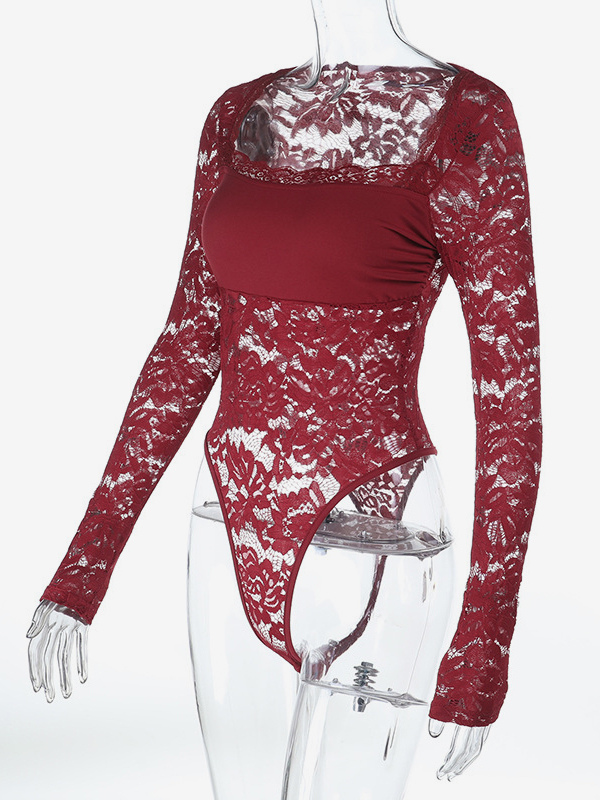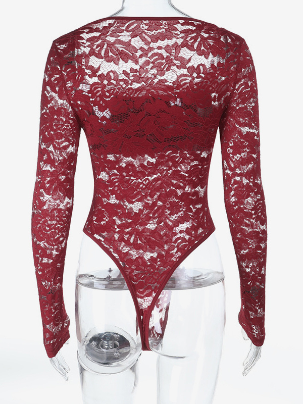 シースルーレースボディスーツ(女性用) - セクシーな長袖スリムフィットレオタードトップ - 春の夜のパーティーに最適 2026