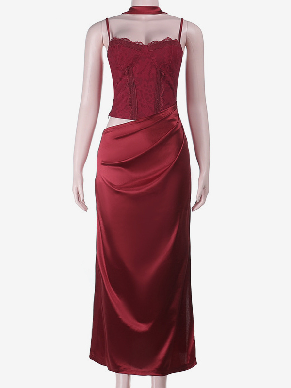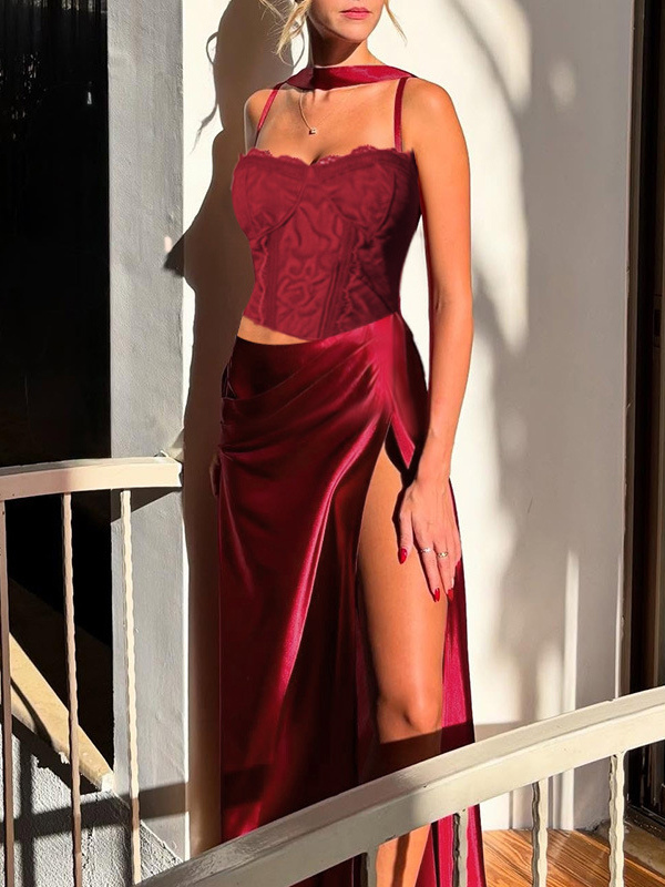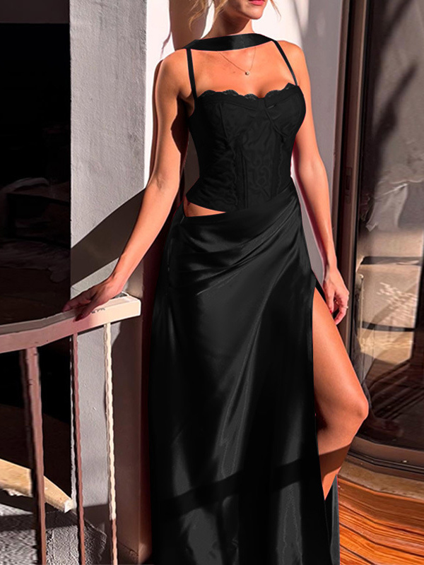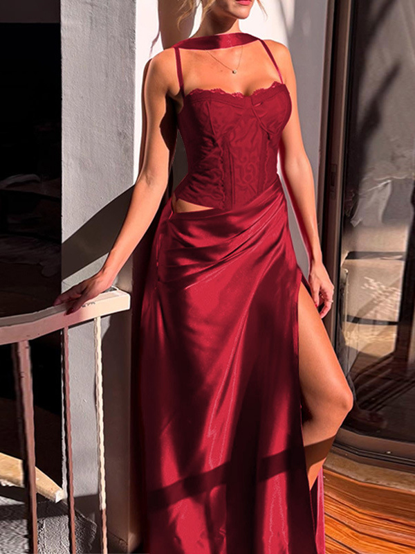 コルセット風レースマキシドレス(女性用) - ドレープギャザーボディコンガウン - 2026年春のイブニングパーティー衣装