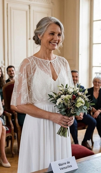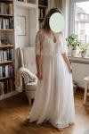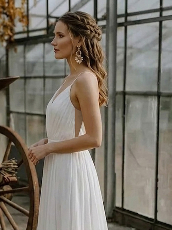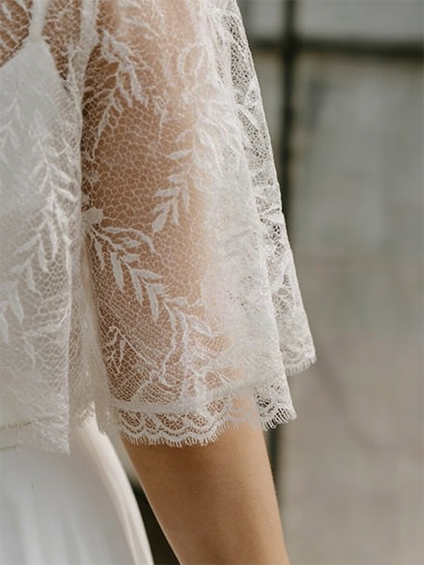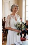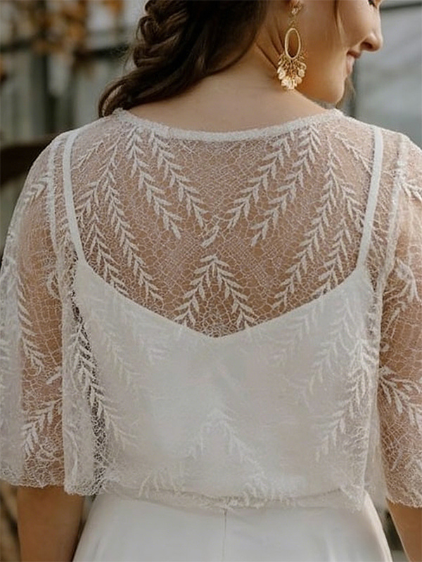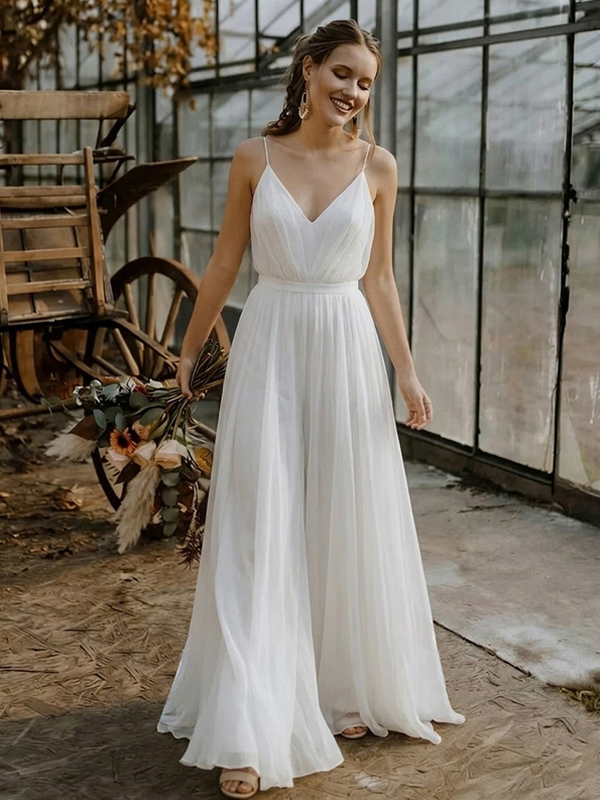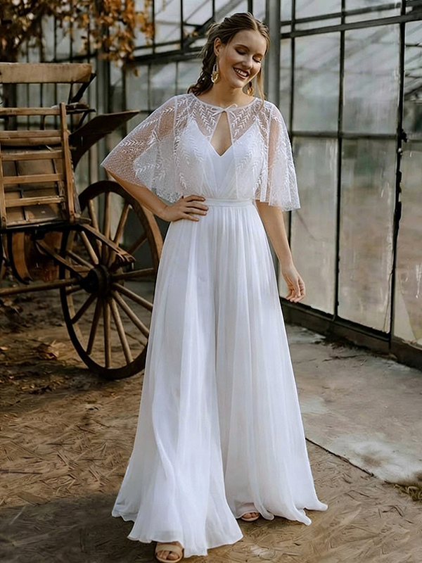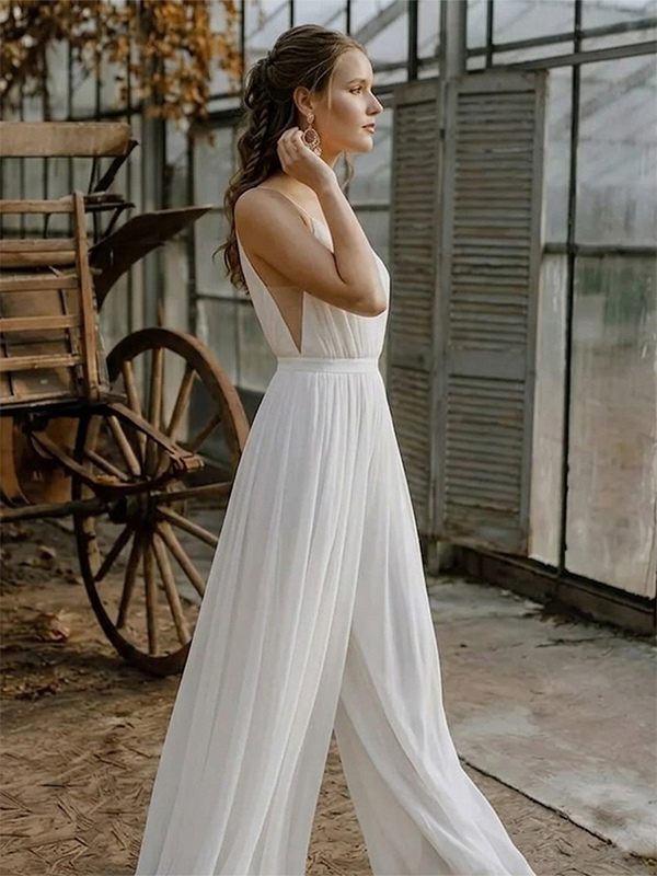 ツーピース ブライダルジャンプスーツ シフォン素材 デザインネックライン Aライン ティーレングス ジッパー付き ハーフスリーブ