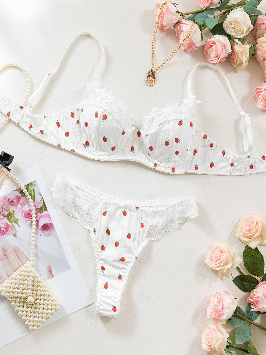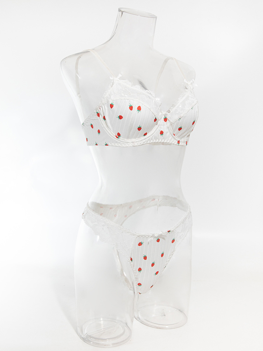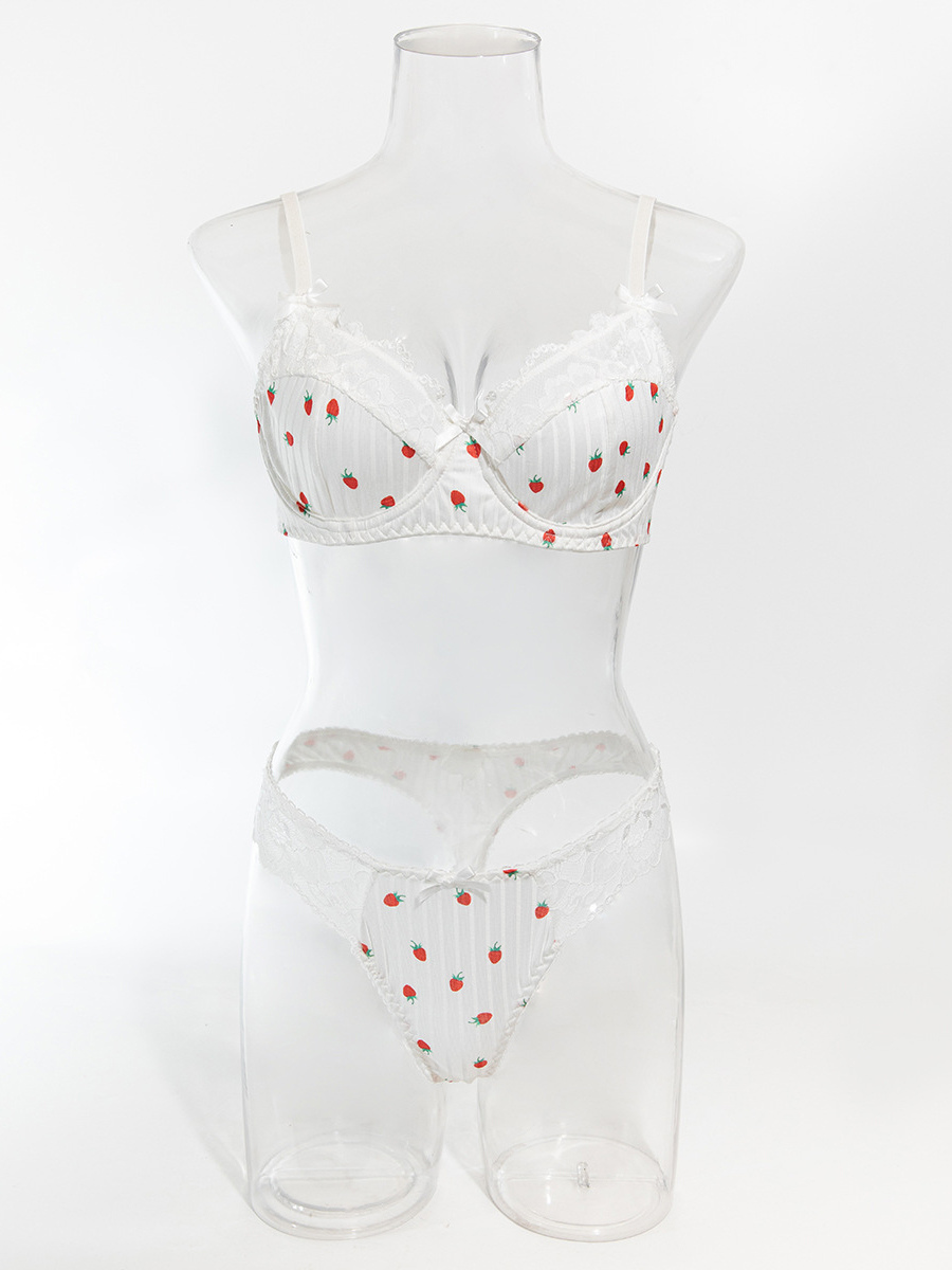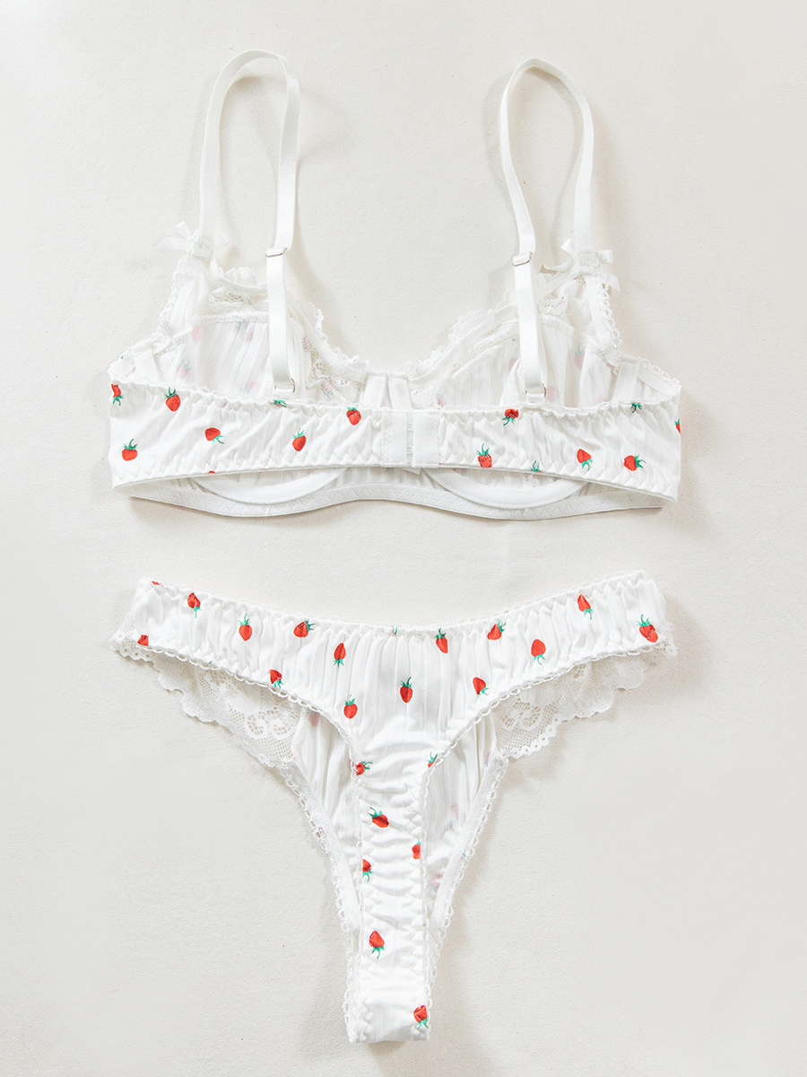 ブライダルランジェリー フルーツ柄レース ホワイト ブラジャー&ショーツ 2点セット