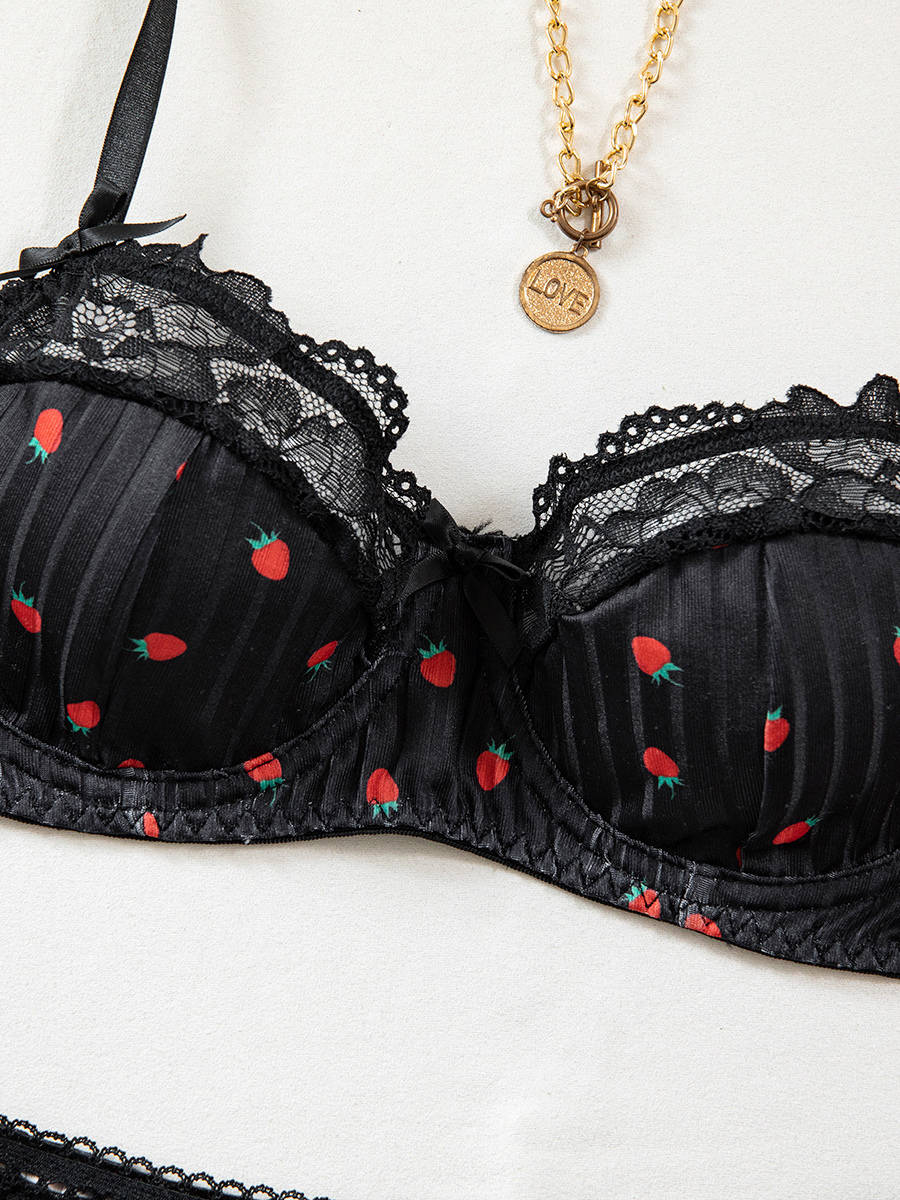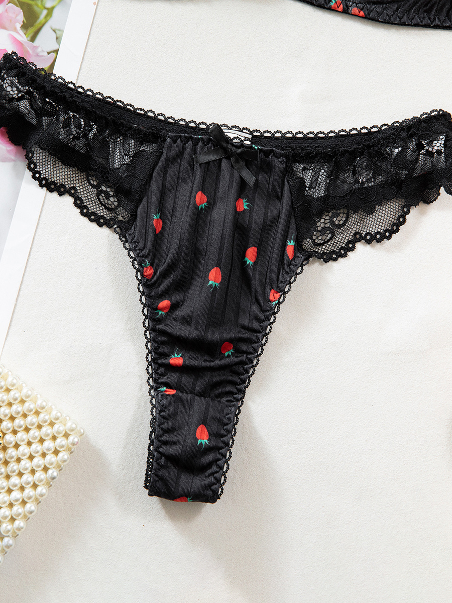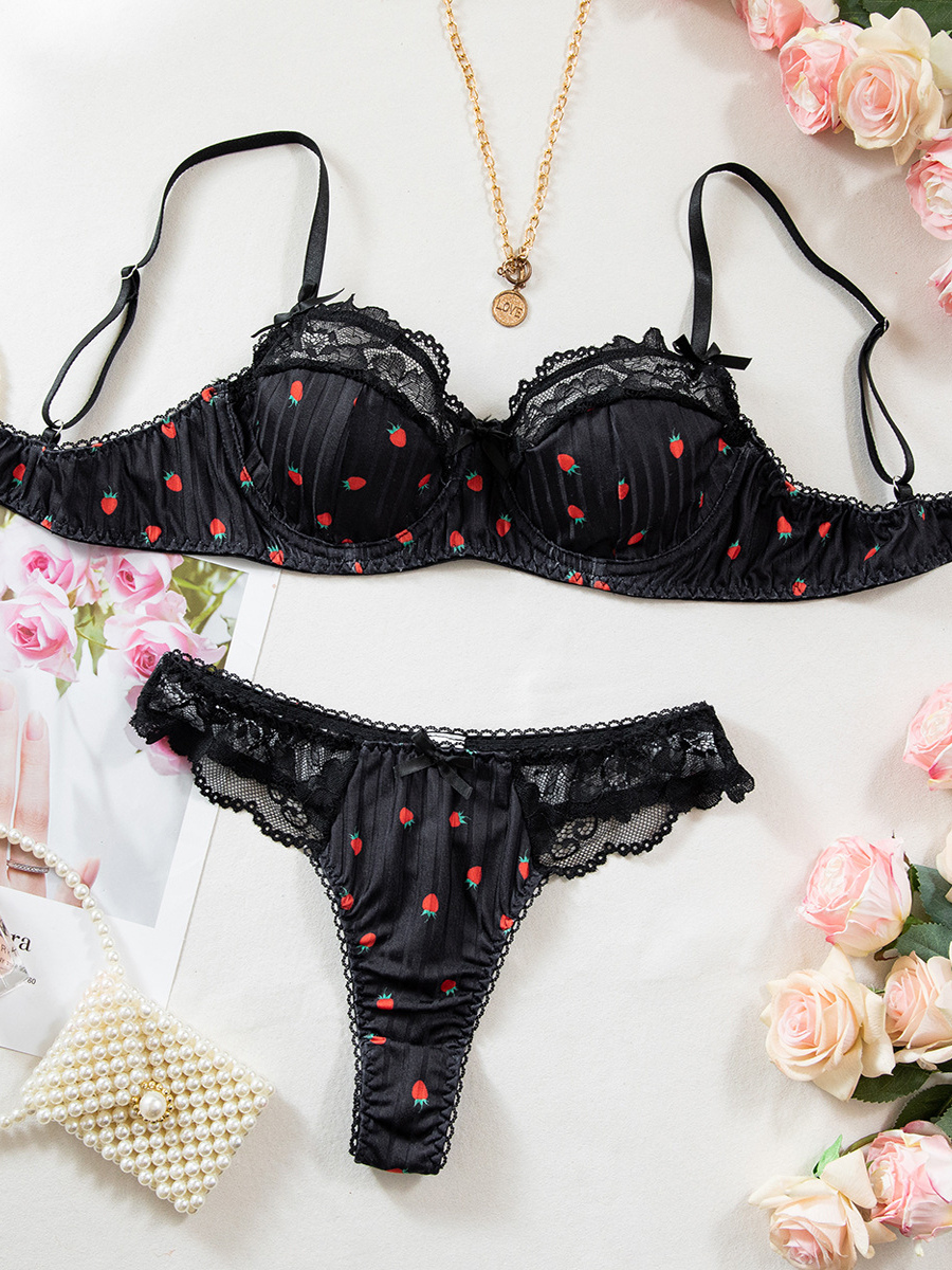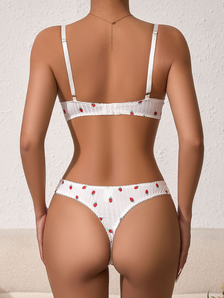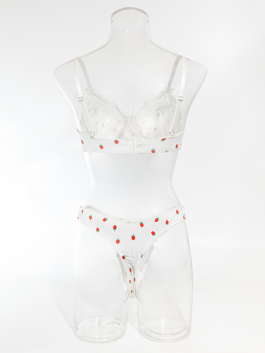 ブライダルランジェリー フルーツ柄レース ホワイト ブラジャー&ショーツ 2点セット
