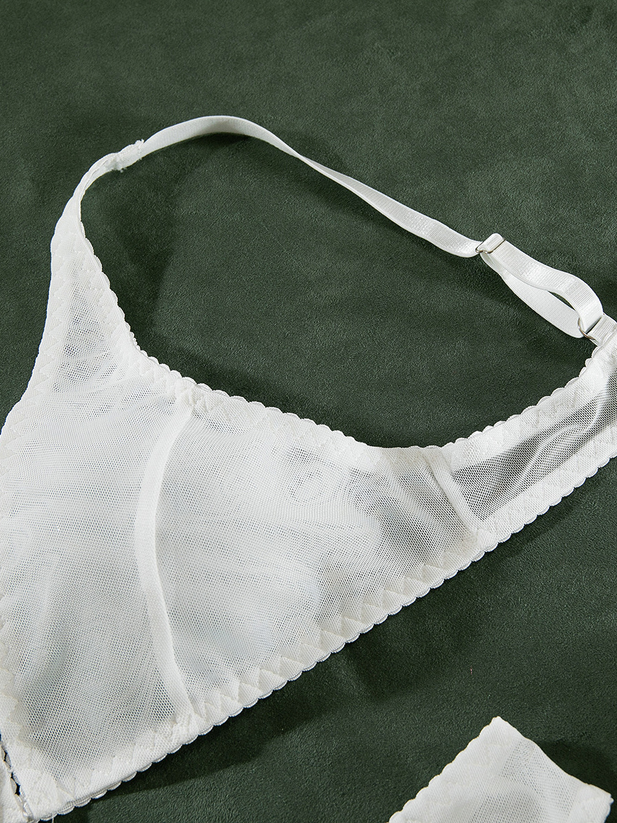 2ピースランジェリー シースルーブラック 調節可能なストラップ付きブラジャー&ショーツセット