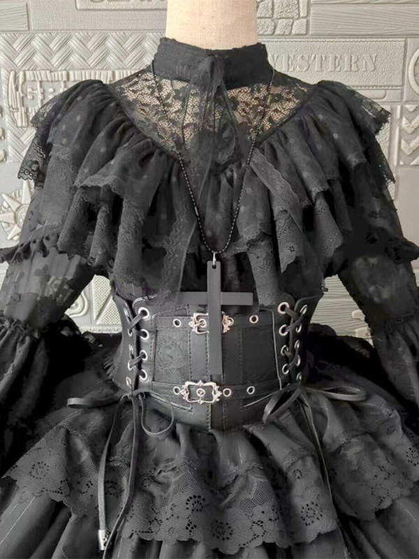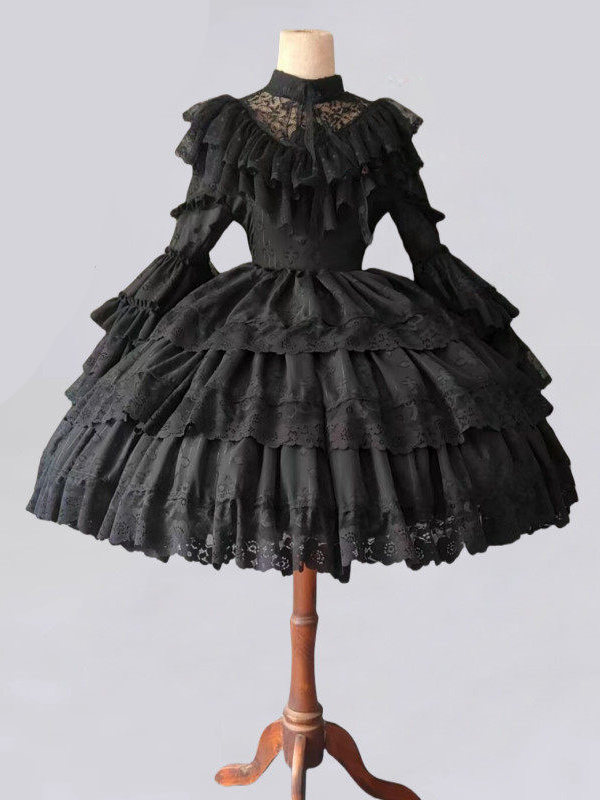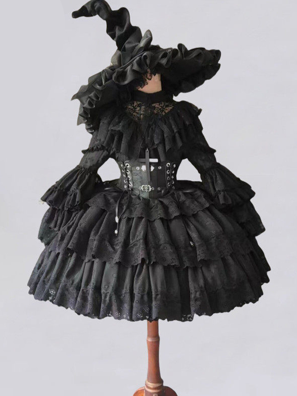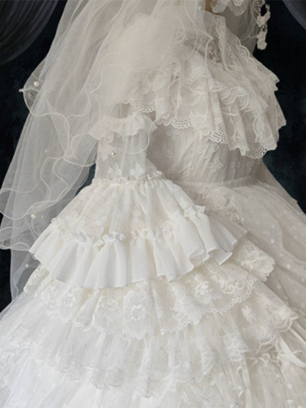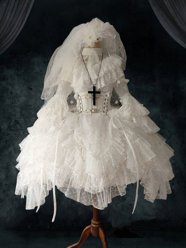 ホワイトゴシックロリータドレス リトルウィッチ 長袖 ワンピース フリルロリータドレス
