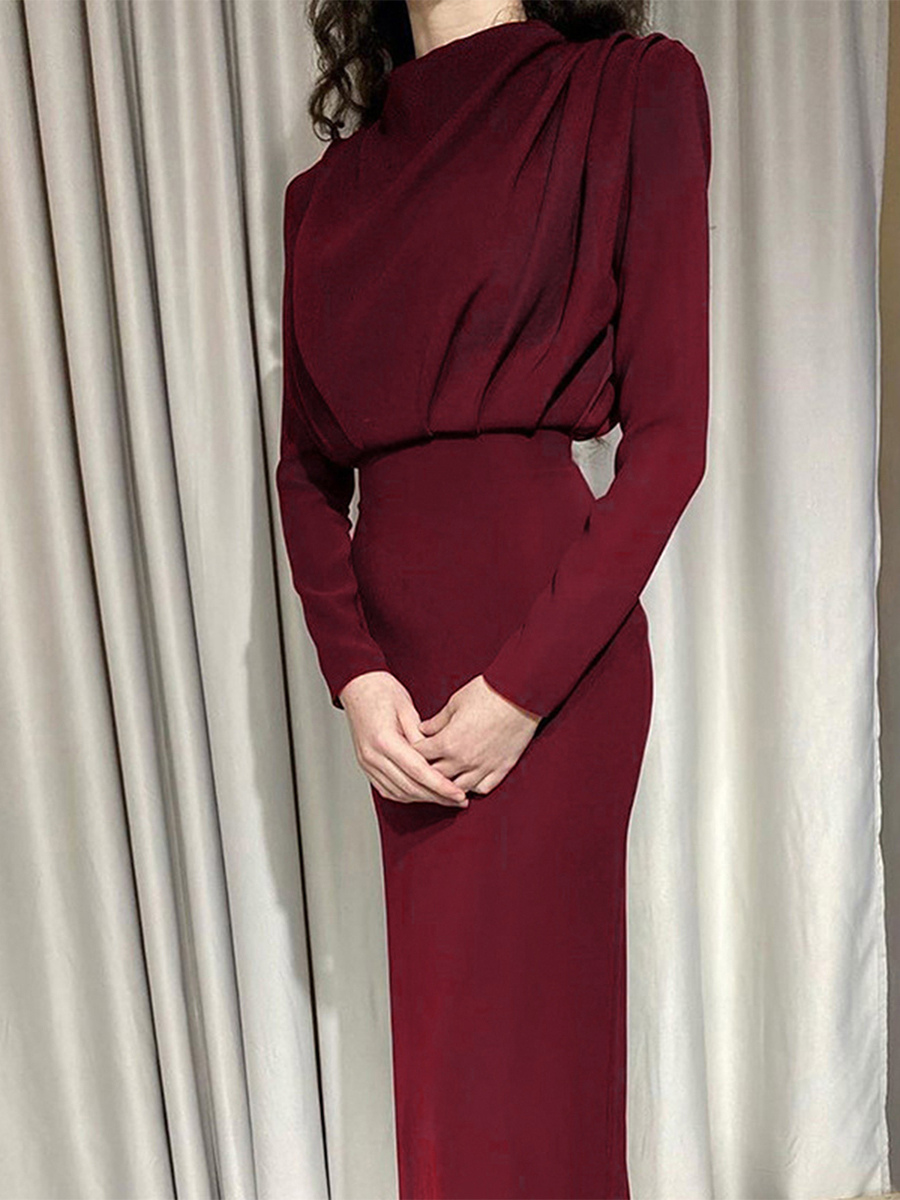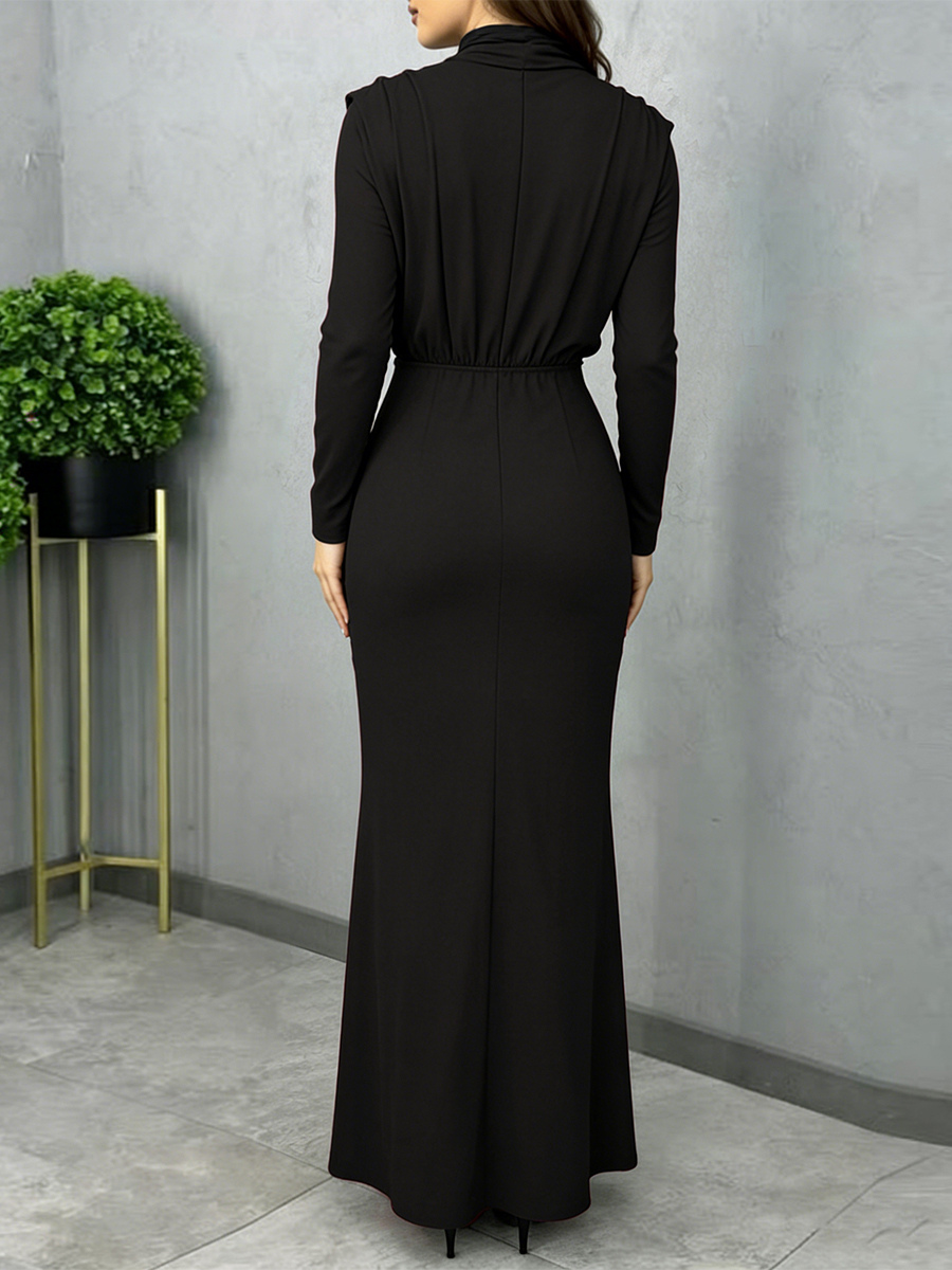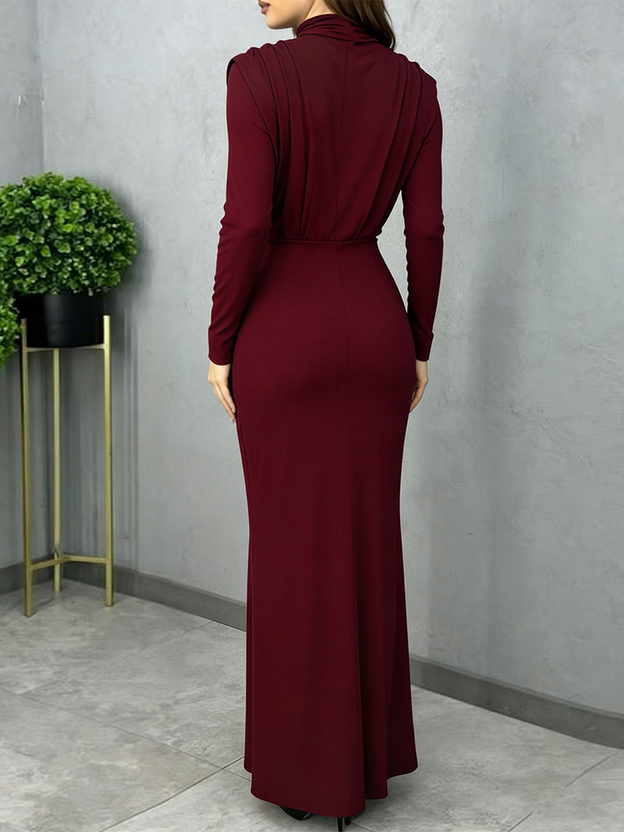 モックネックマキシドレス(女性用) - バックスリット入り長袖ガウン - 2026年春のイブニングパーティー