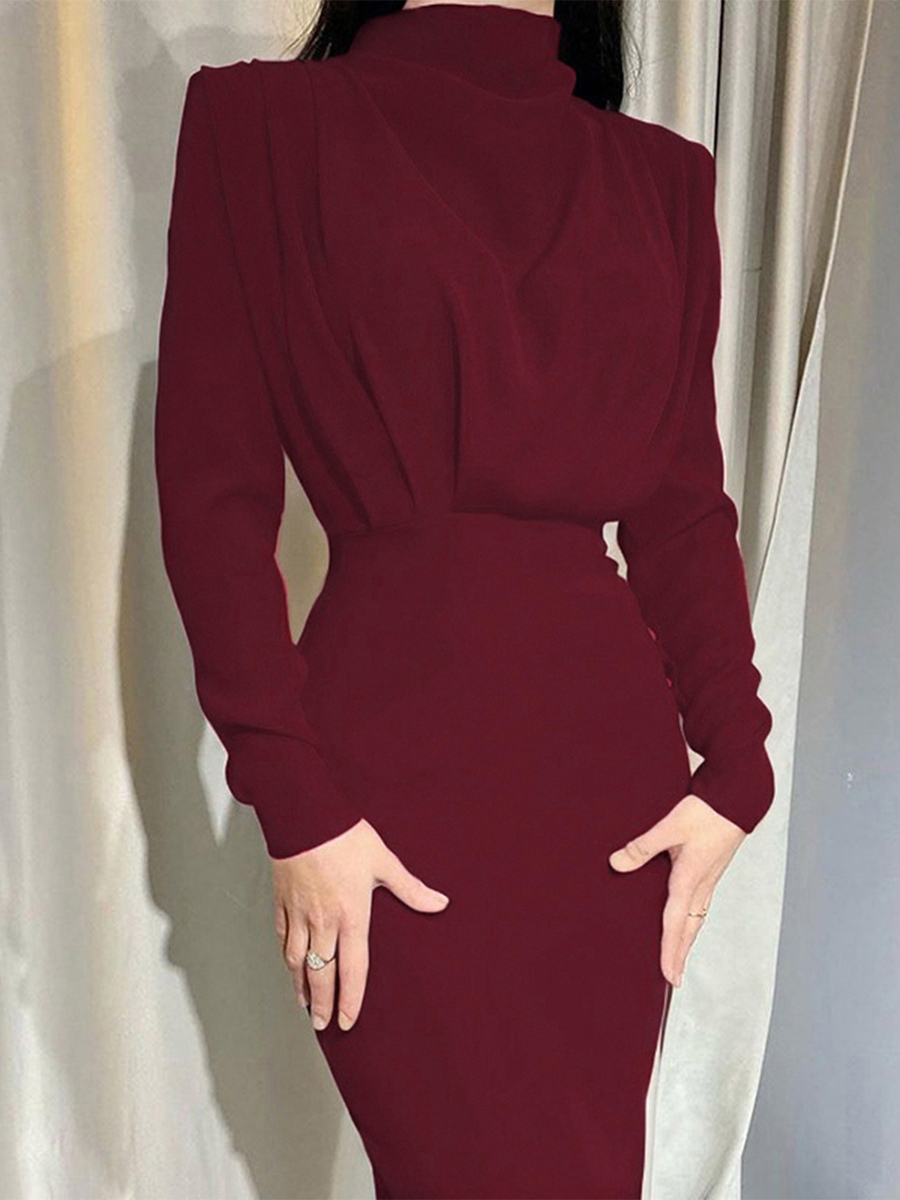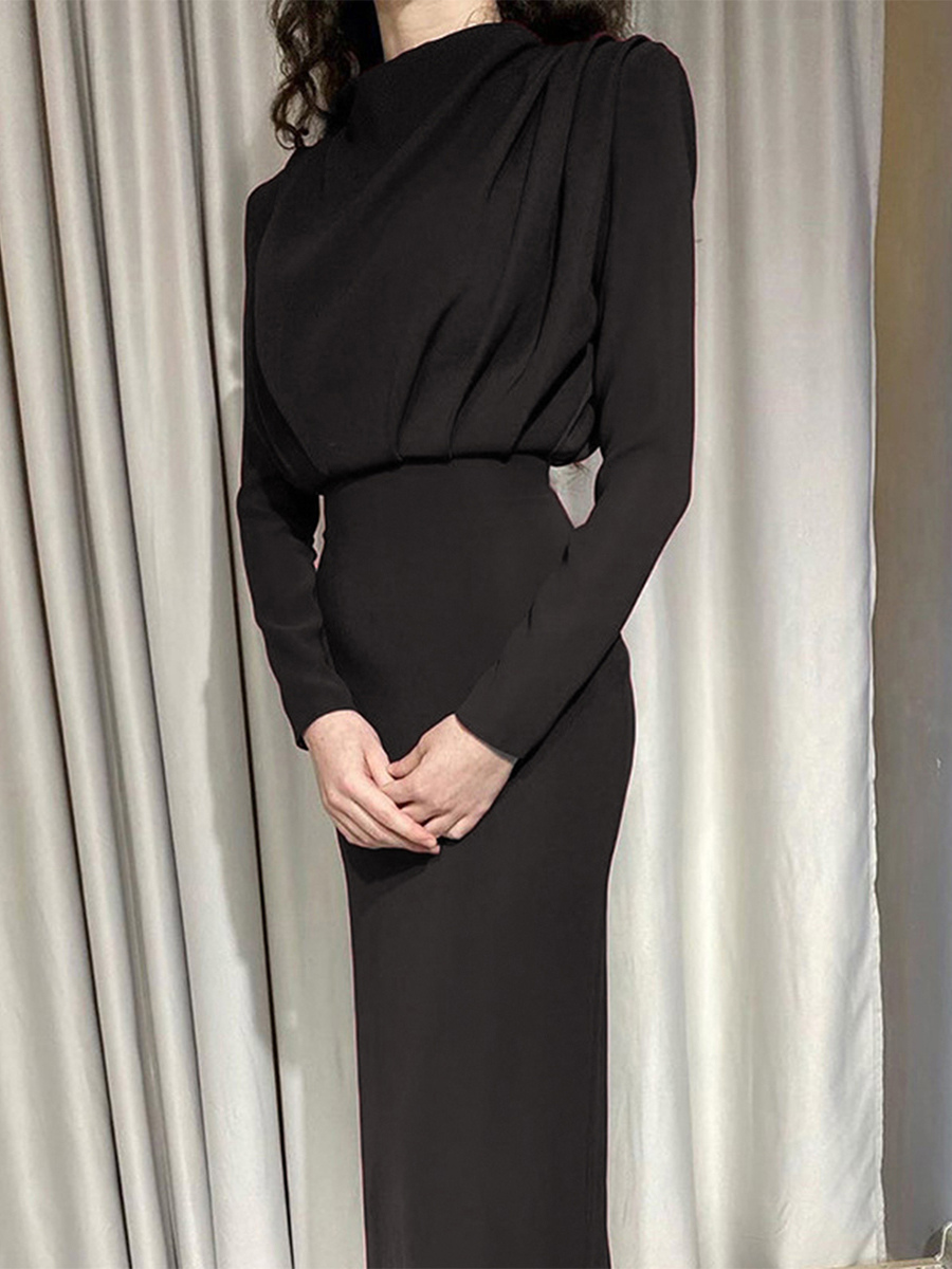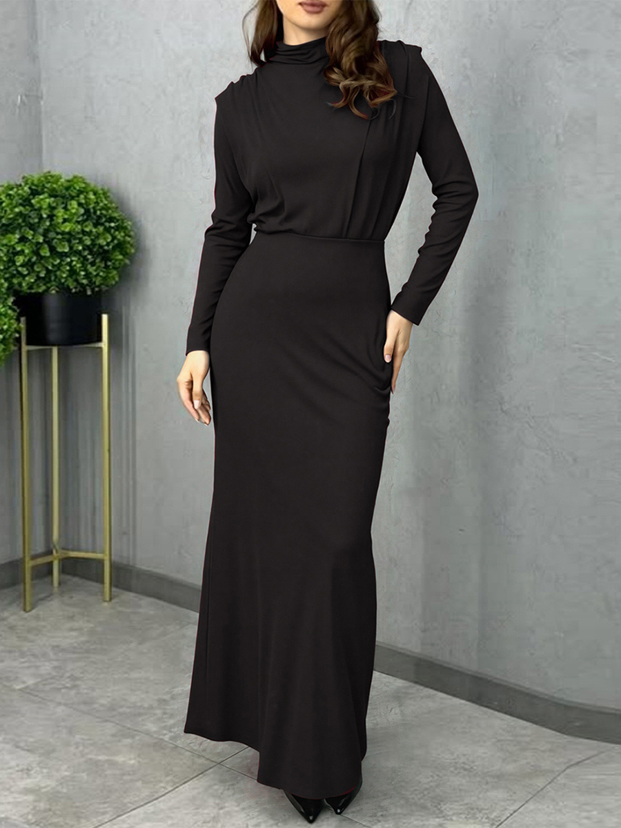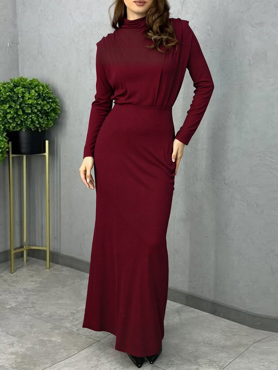 モックネックマキシドレス(女性用) - バックスリット入り長袖ガウン - 2026年春のイブニングパーティー