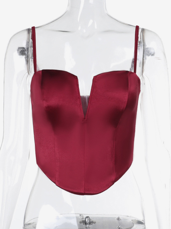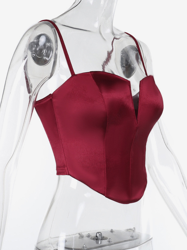 女性用コルセットトップ - サテンのディープVネックビスチェキャミソール - 夏の夜のクラブパーティー 2026