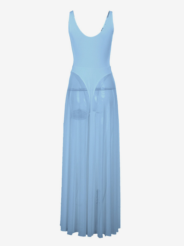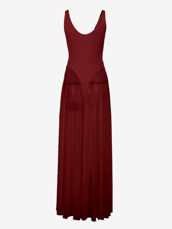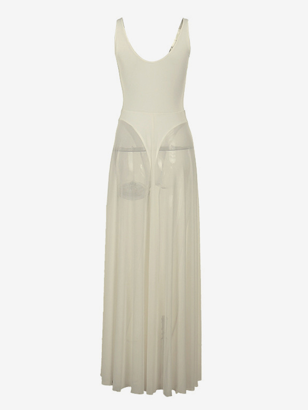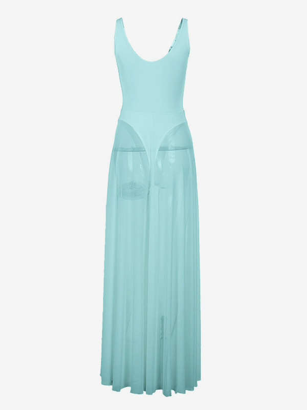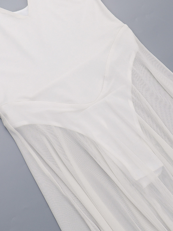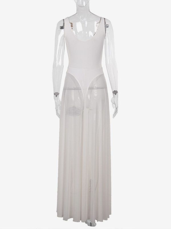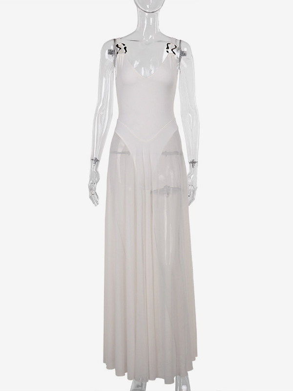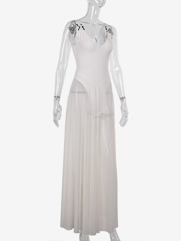 女性用シースルーマキシドレス - セクシーなVネックメッシュパッチワークボディスーツフローリーガウン - サマービーチクラブ2026