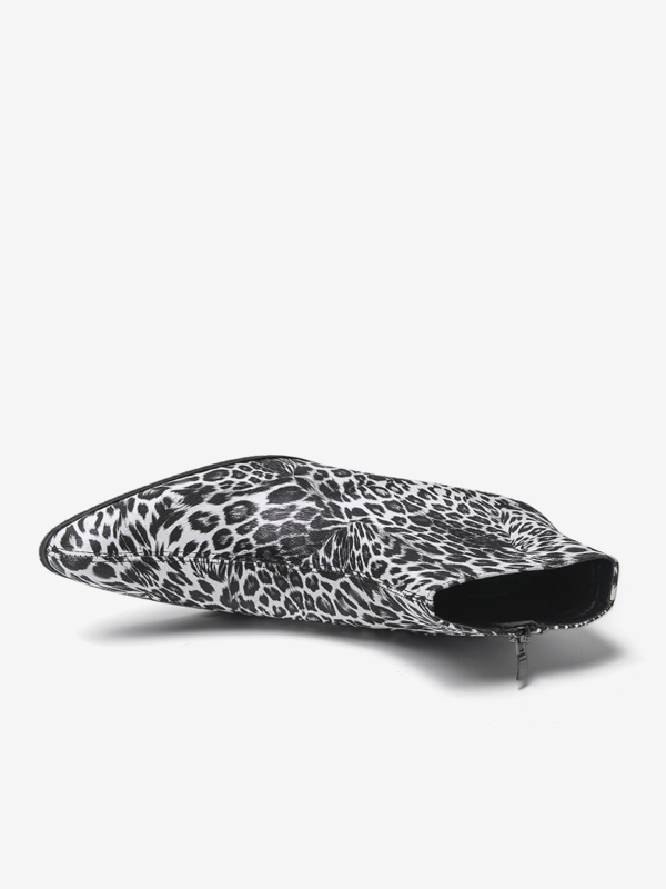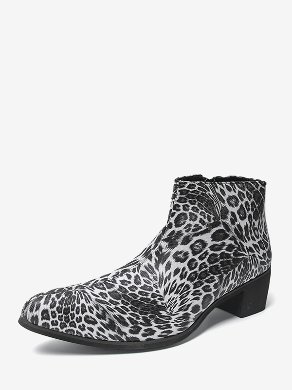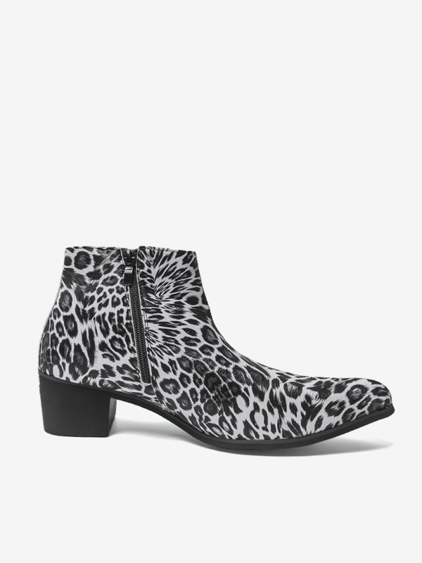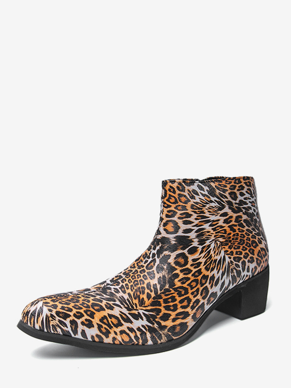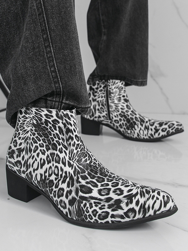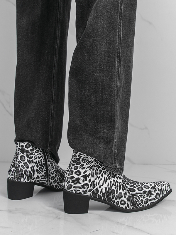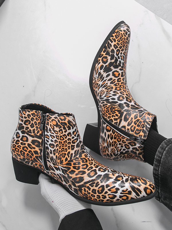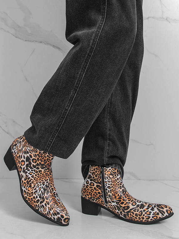 メンズ アンクルブーツ レオパード柄 ラウンドトゥ チャンキーヒール ブーティ