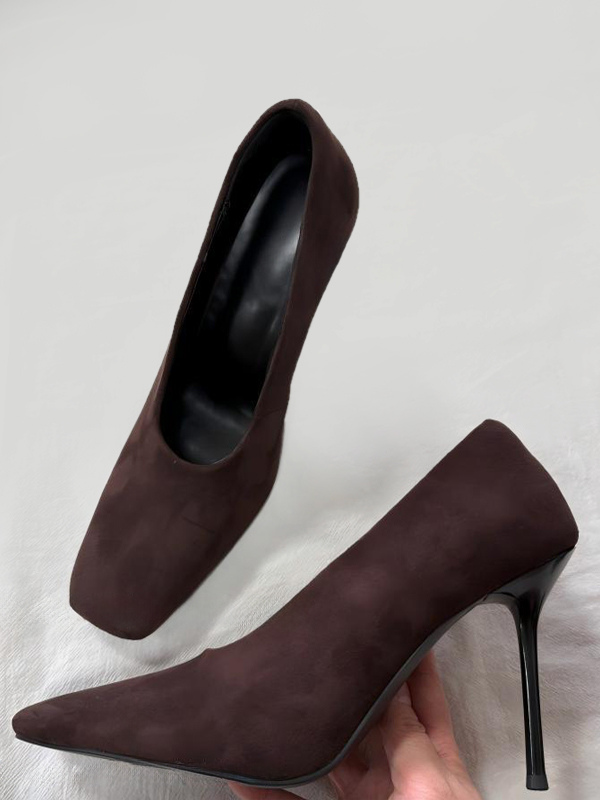 レディース ハイヒール パンプス スクエアトゥ スリッポン ドレスシューズ