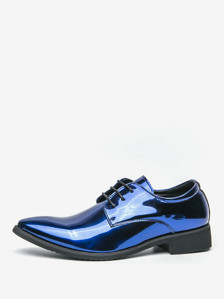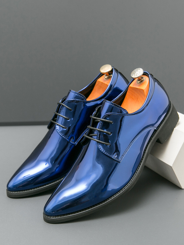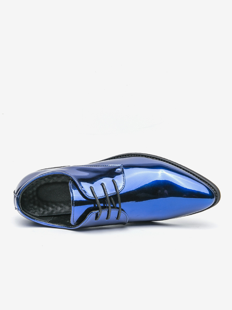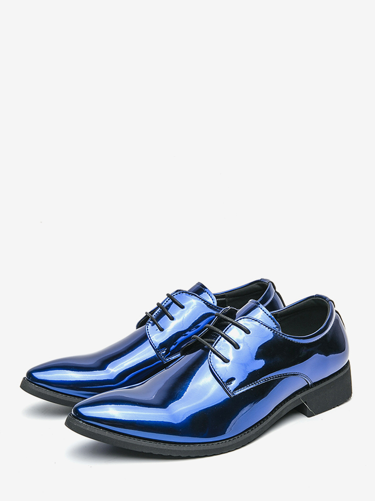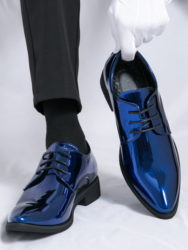 メンズドレスシューズ ブルー ポインテッドトゥ レースアップシューズ