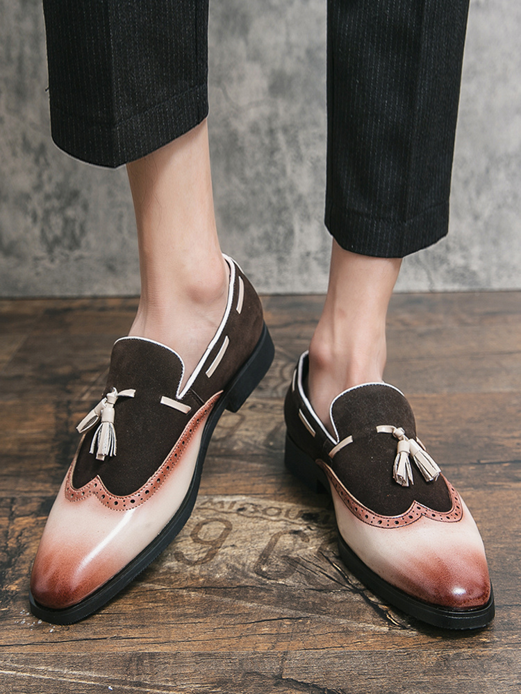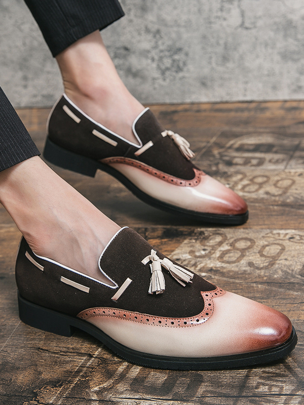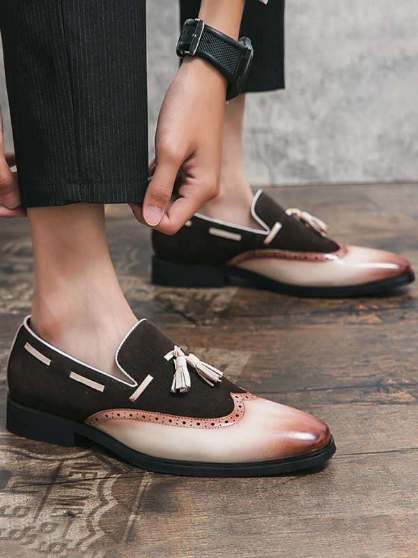 メンズドレスシューズ ラウンドトゥ スリッポンシューズ タッセル付き