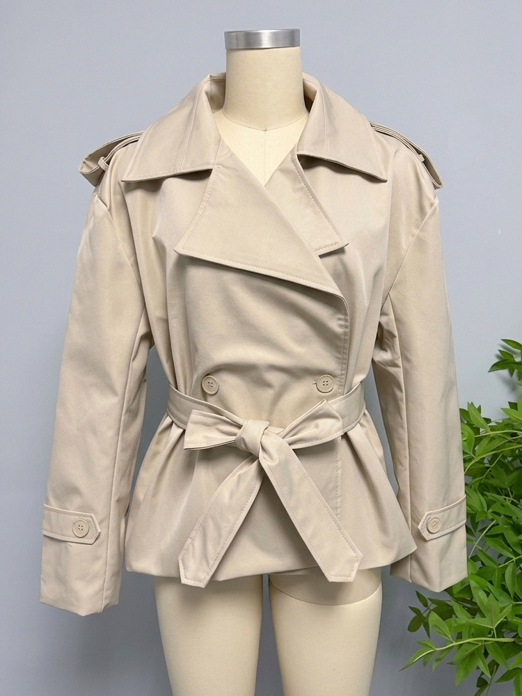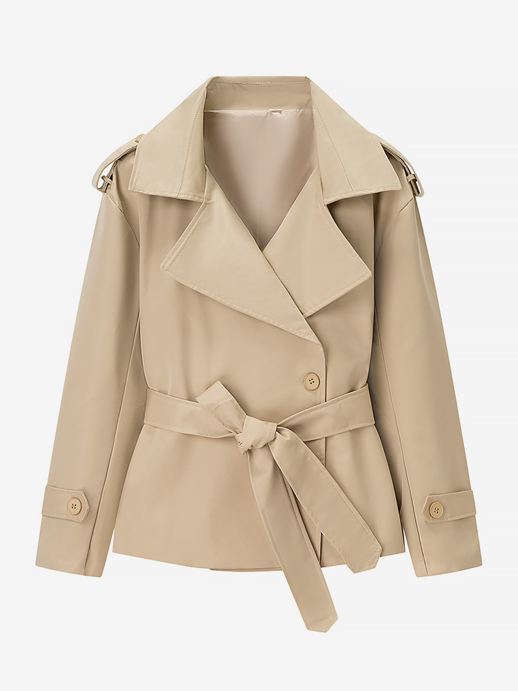 クロップドトレンチコート レディース ショートジャケット - シックなベルト付きスリムフィットウィンドブレーカー - 春のオフィスからディナーまで活躍するデイリーアウター 2026