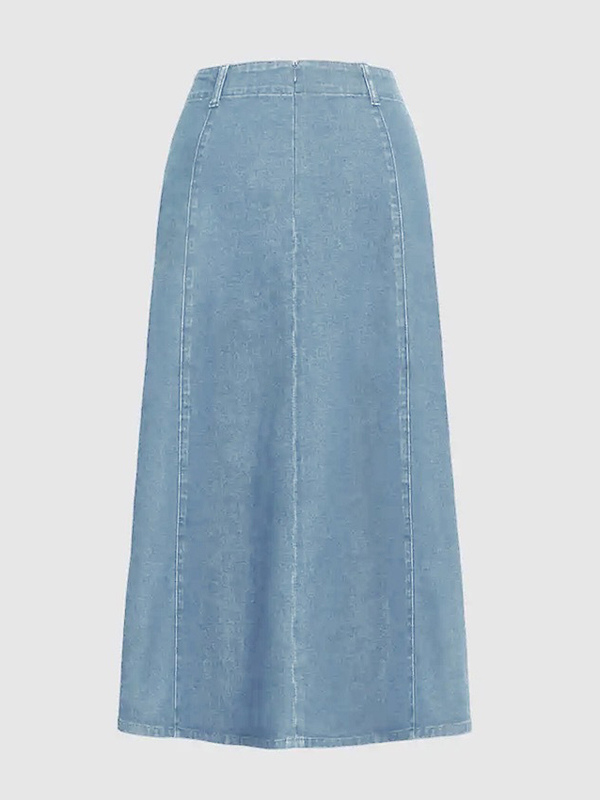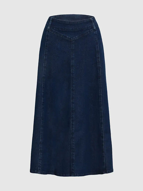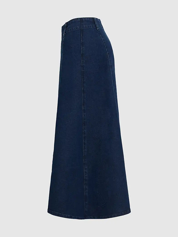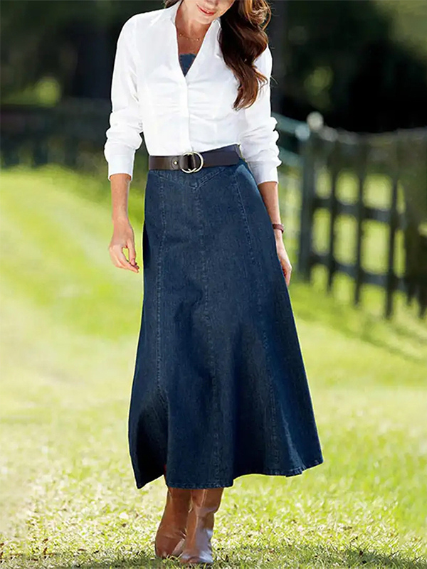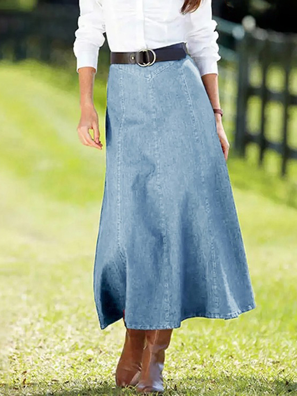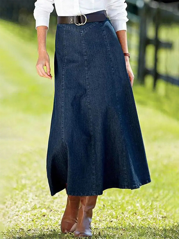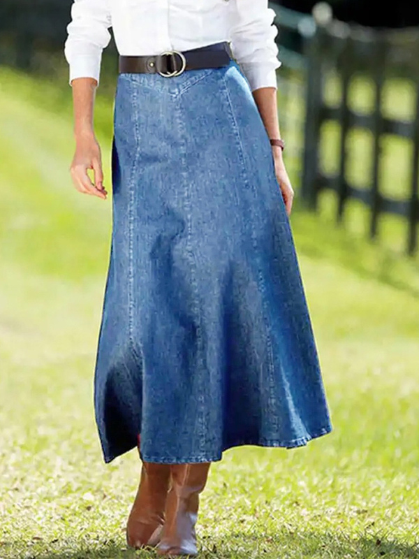 レディース用ウエスタンデニムマキシスカート - ボヘミアン風Aラインハイウエストロングスカート - オールシーズンカジュアルウェア 2026