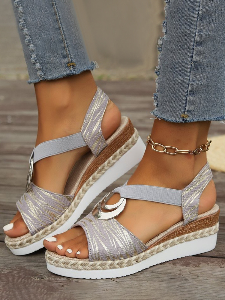 レディース ウェッジヒール オープントゥ バックルディテール サンダルシューズ