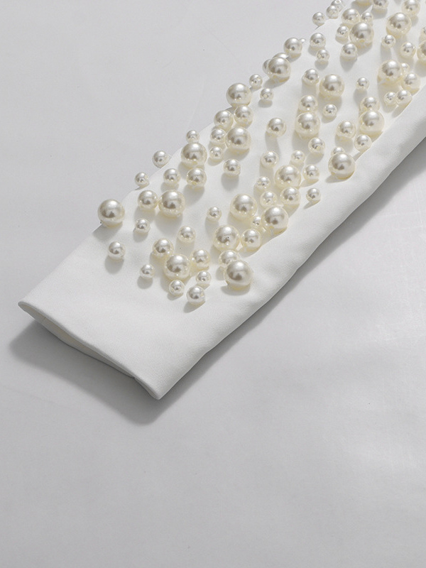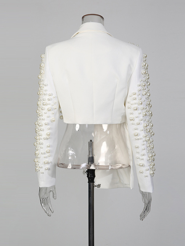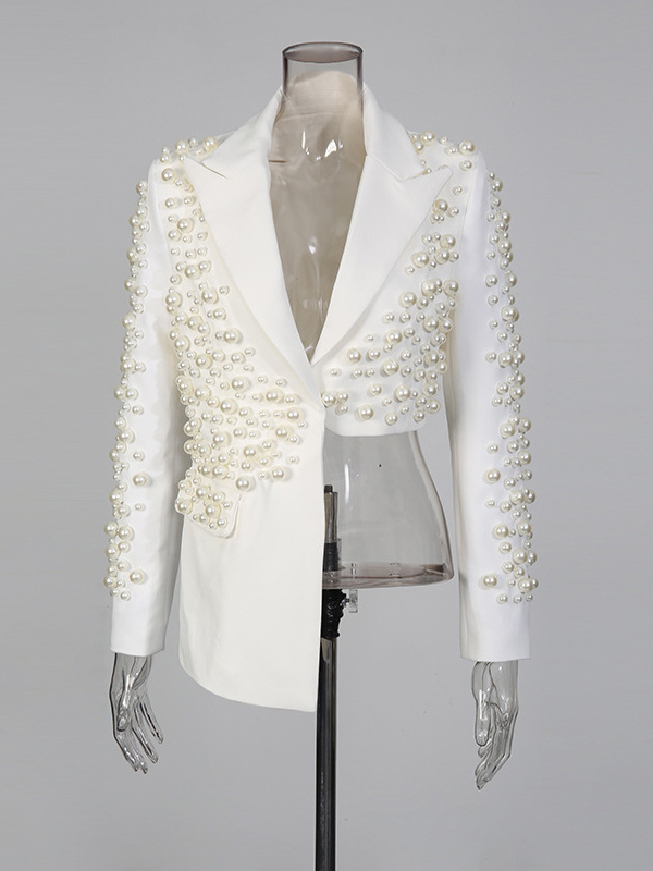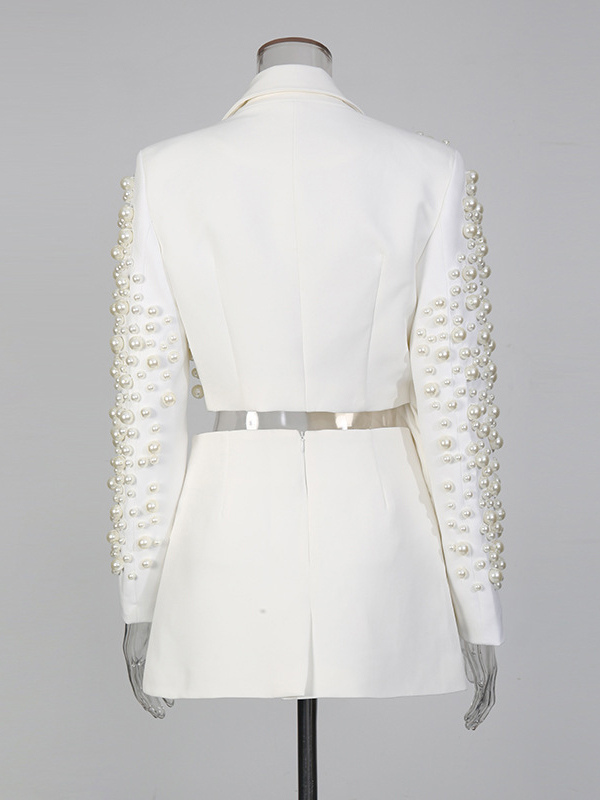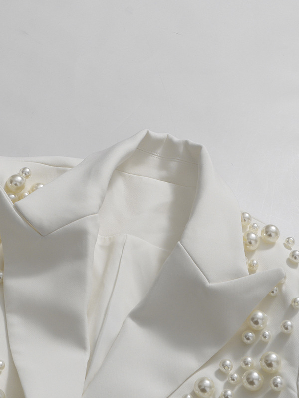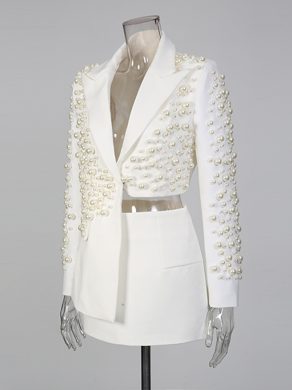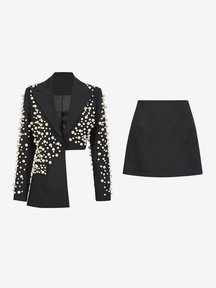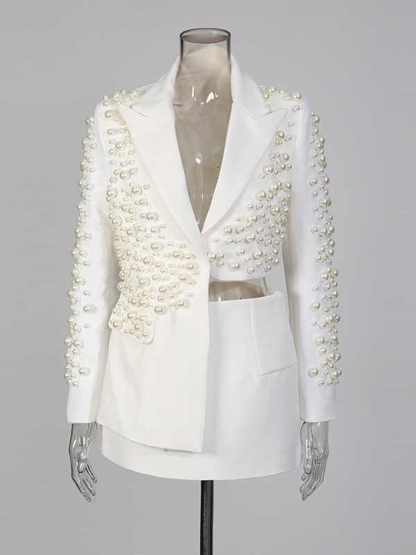パールビーズ付きブレザースカートセット(レディース) - セクシーなアシンメトリー裾カットアウトミニツーピーススーツ - 春の夜のパーティーに最適 2026