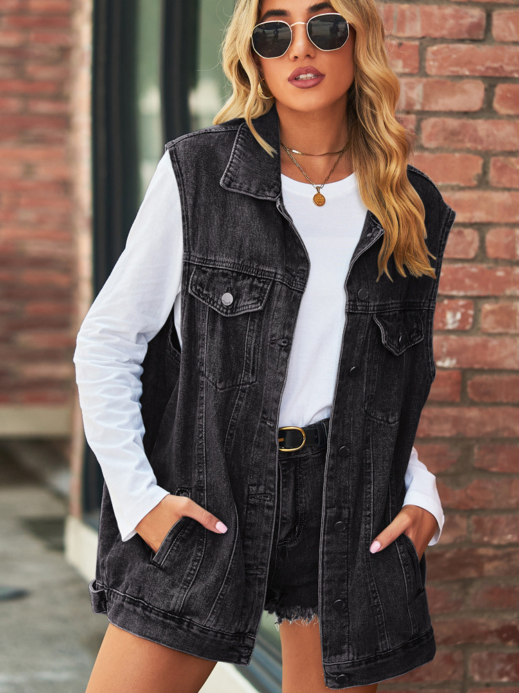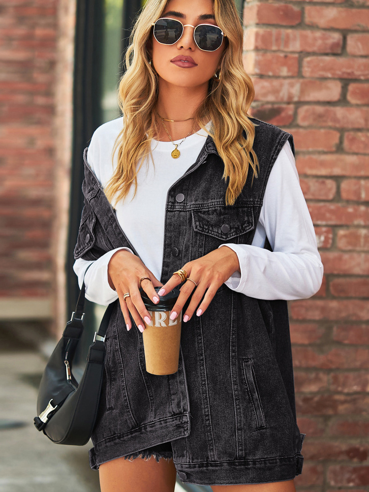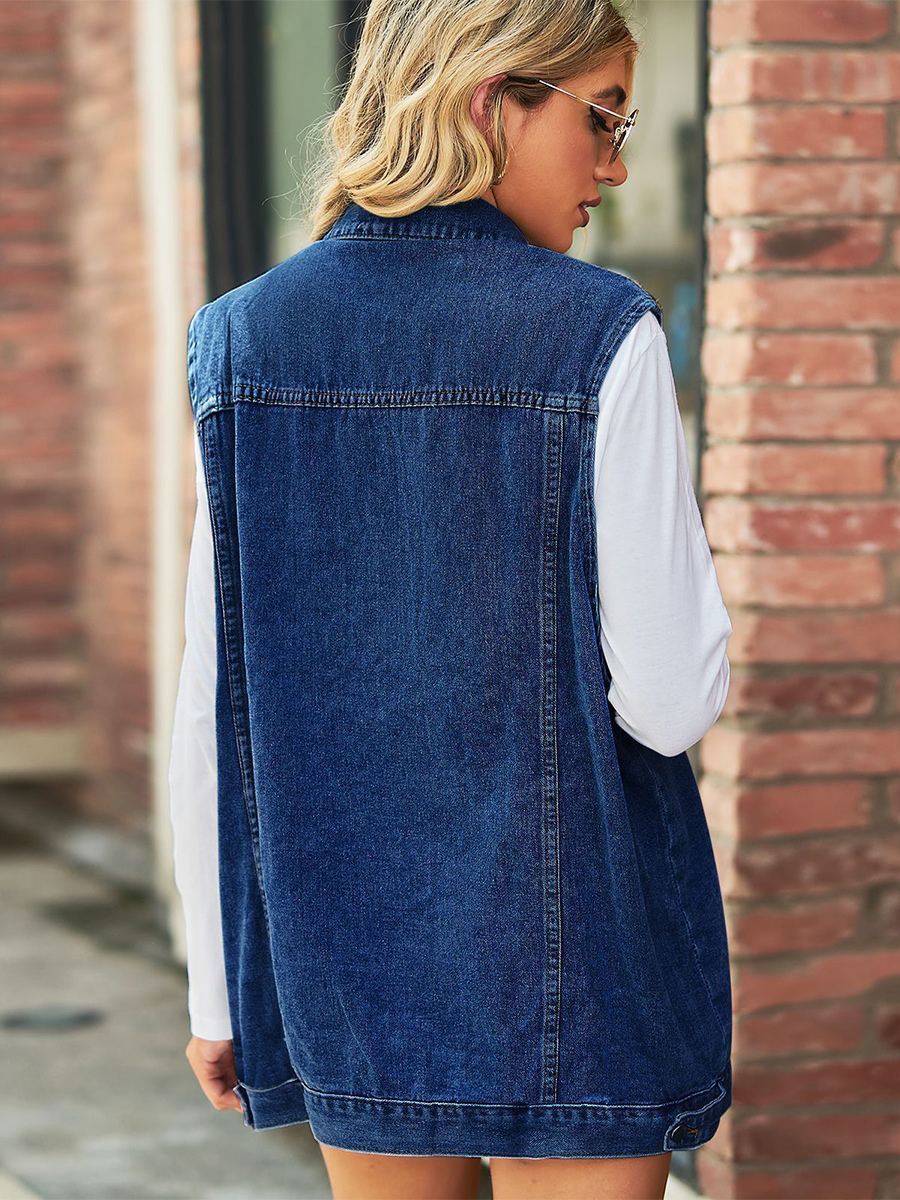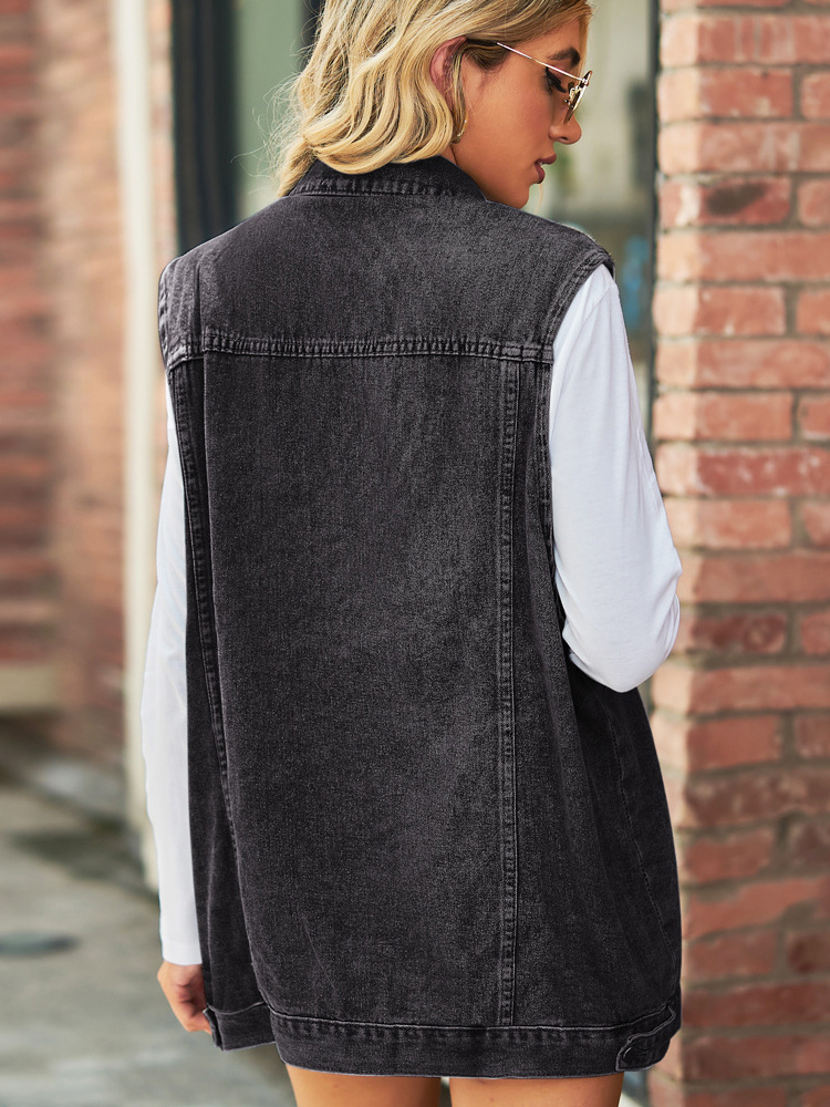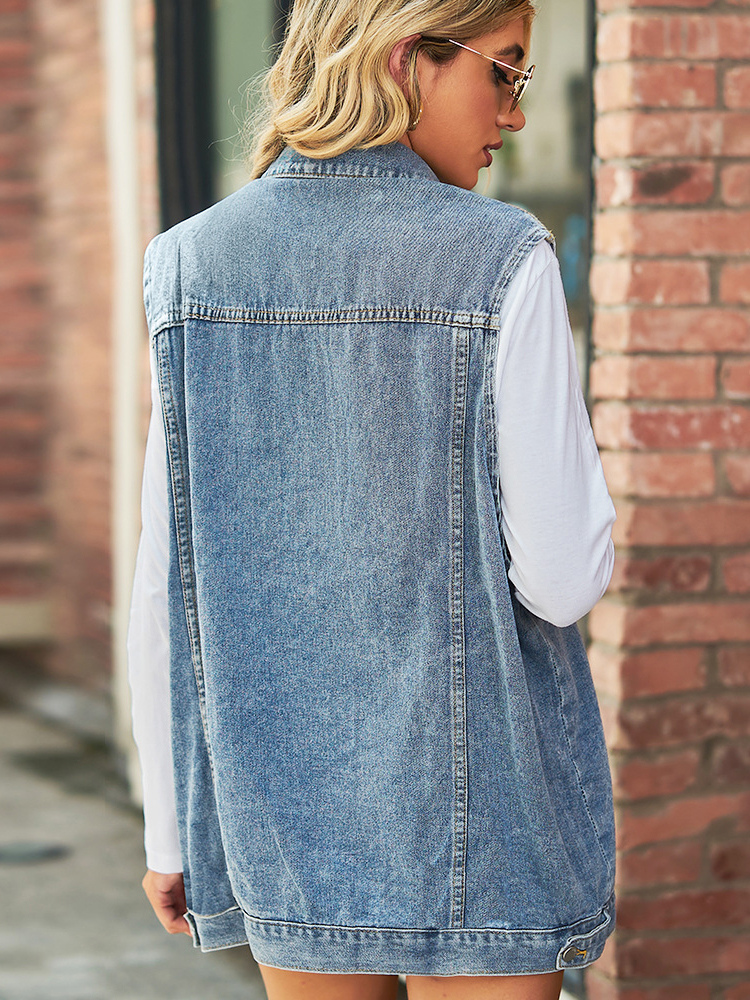 レディース用オーバーサイズデニムベスト - ヴィンテージ風ダメージ加工ノースリーブロングジーンズジャケットコート - 2026年春夏シックストリートウェア