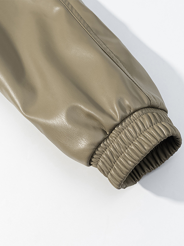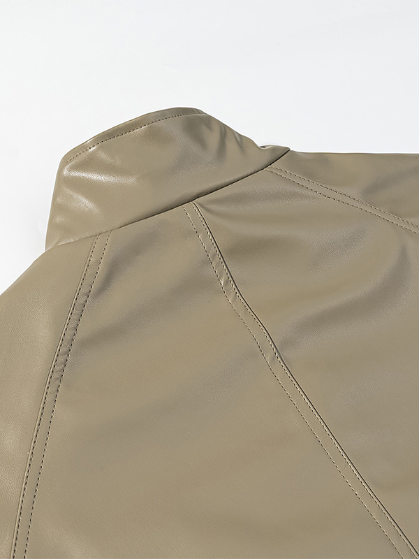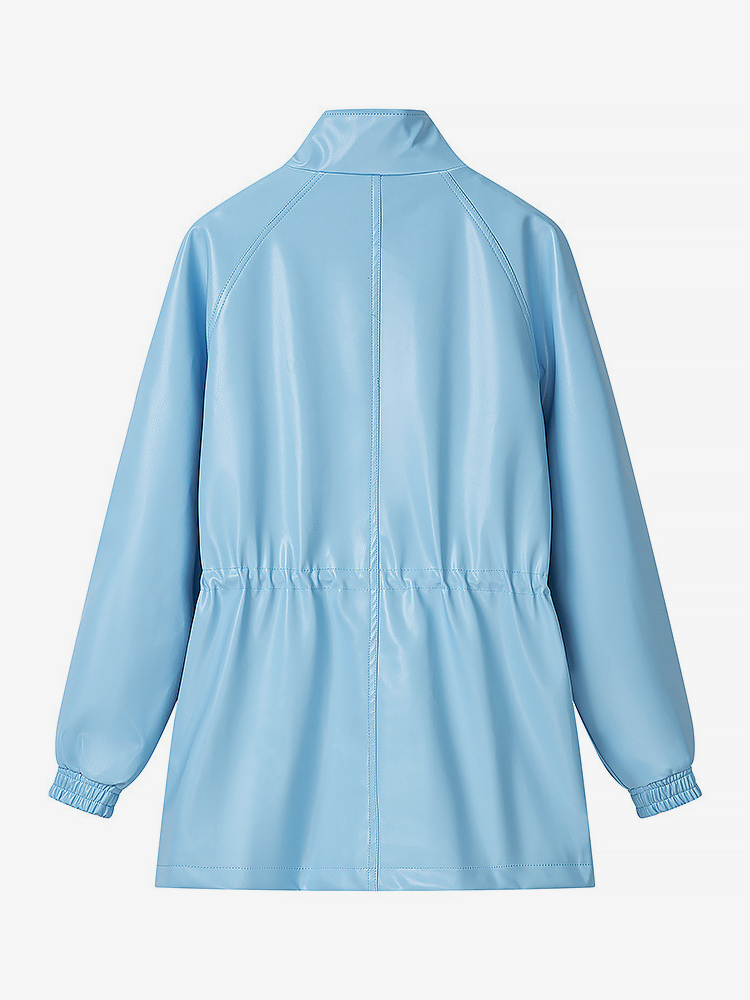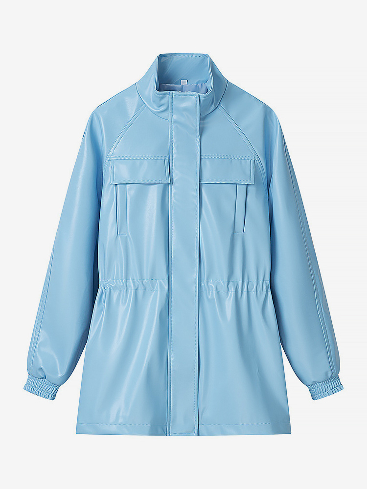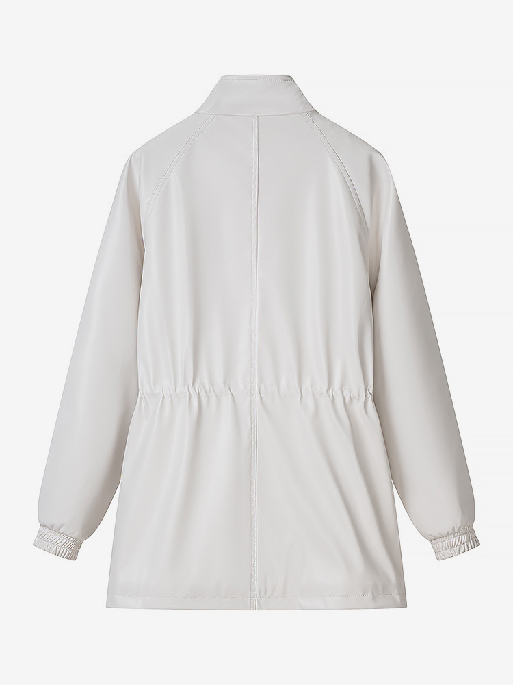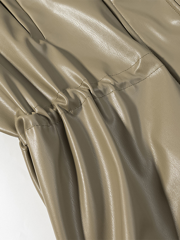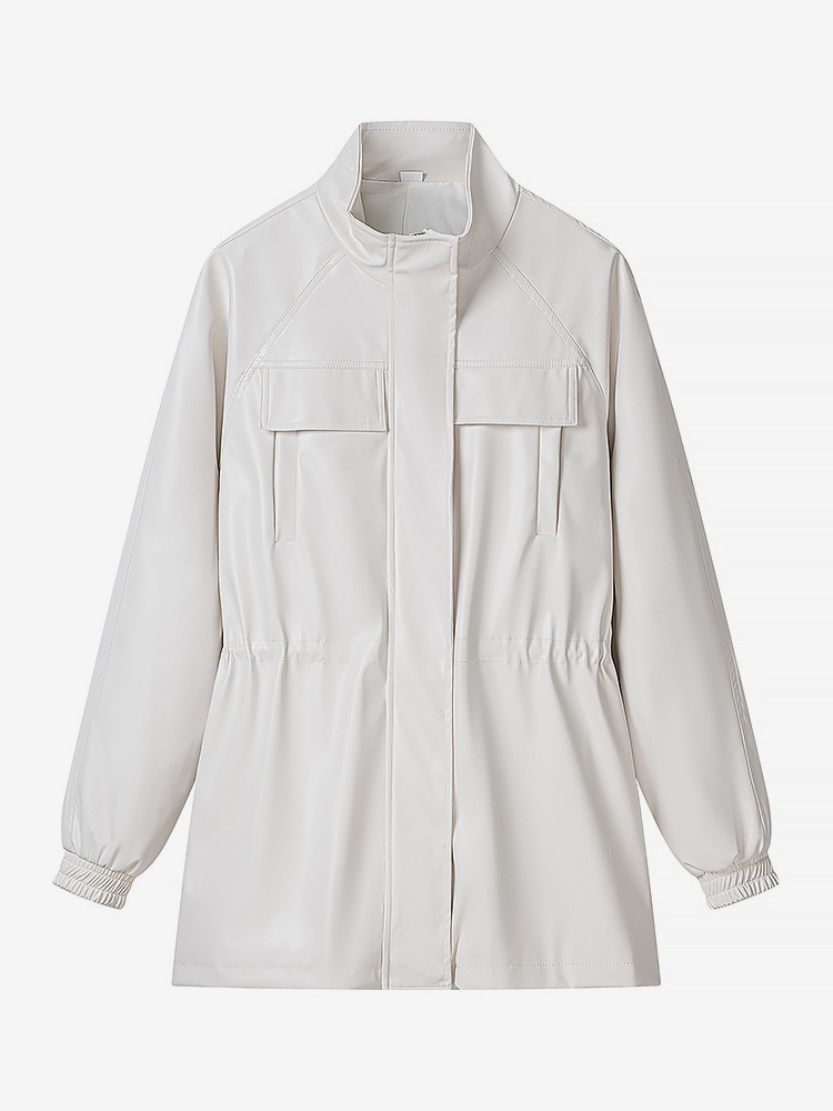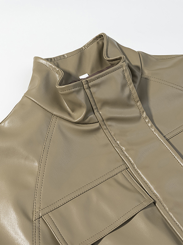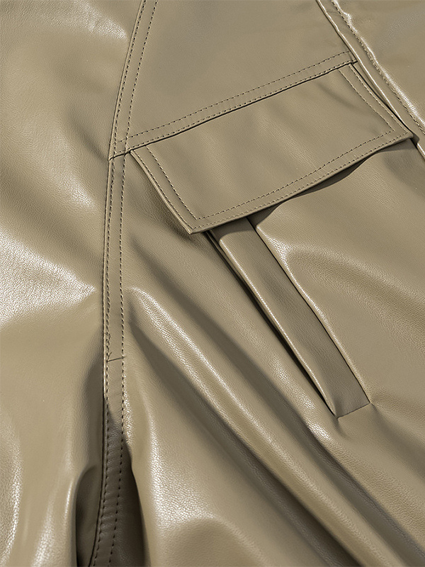 レディース用フェイクレザーサファリジャケット - ドローストリングウエスト、ハイネック、カーゴポケット付きミディコート - 2026年春のシックなストリートウェア