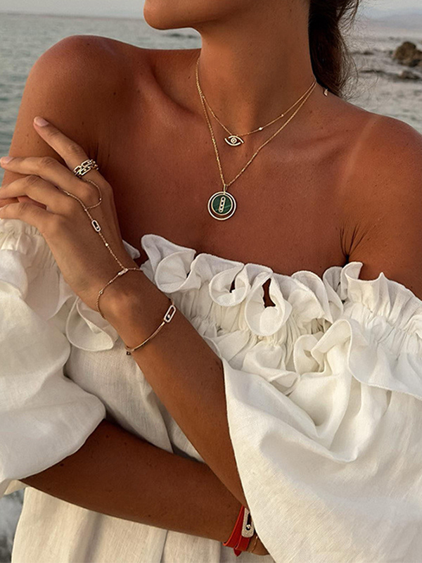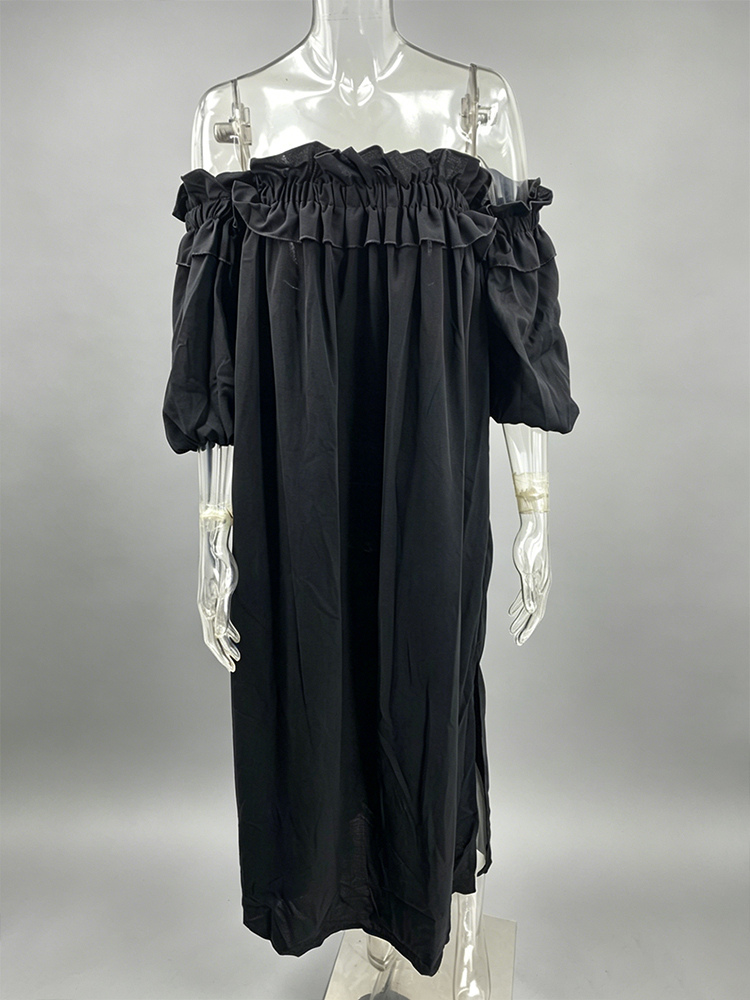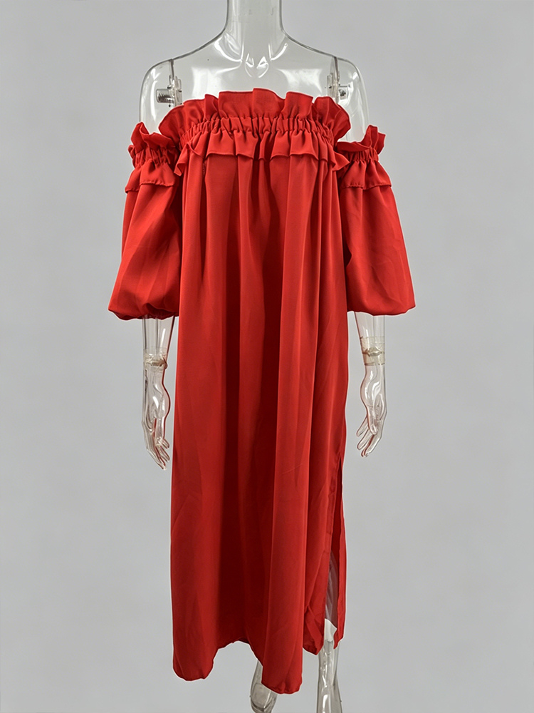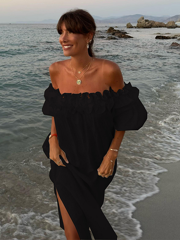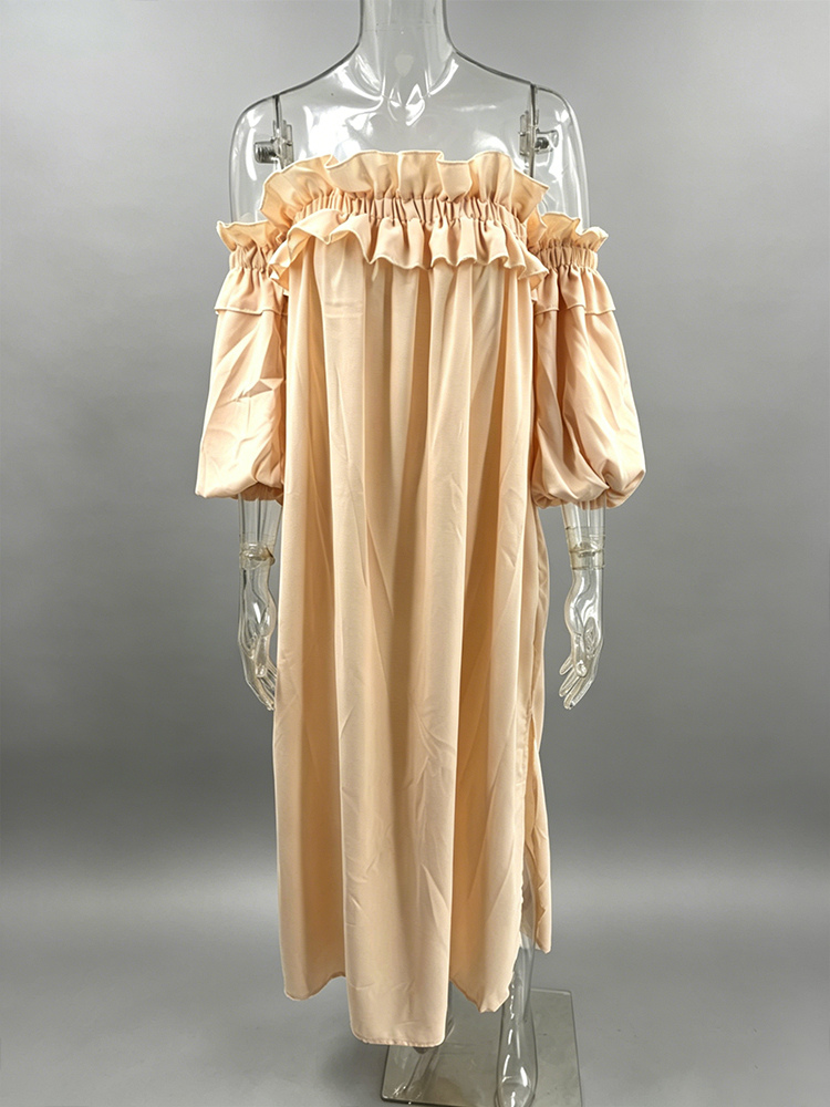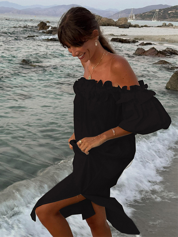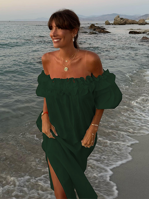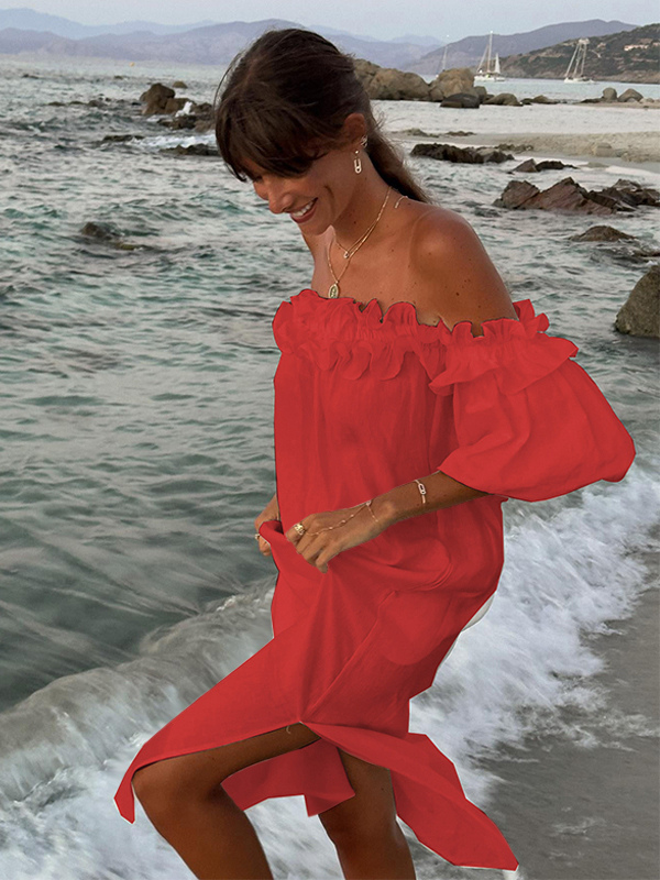 ホワイト オフショルダー ロングドレス レディース - リネンコットン ボヘミアン フリル ランタンスリーブ ゆったり ビーチ サンドレス - 2026年夏休み
