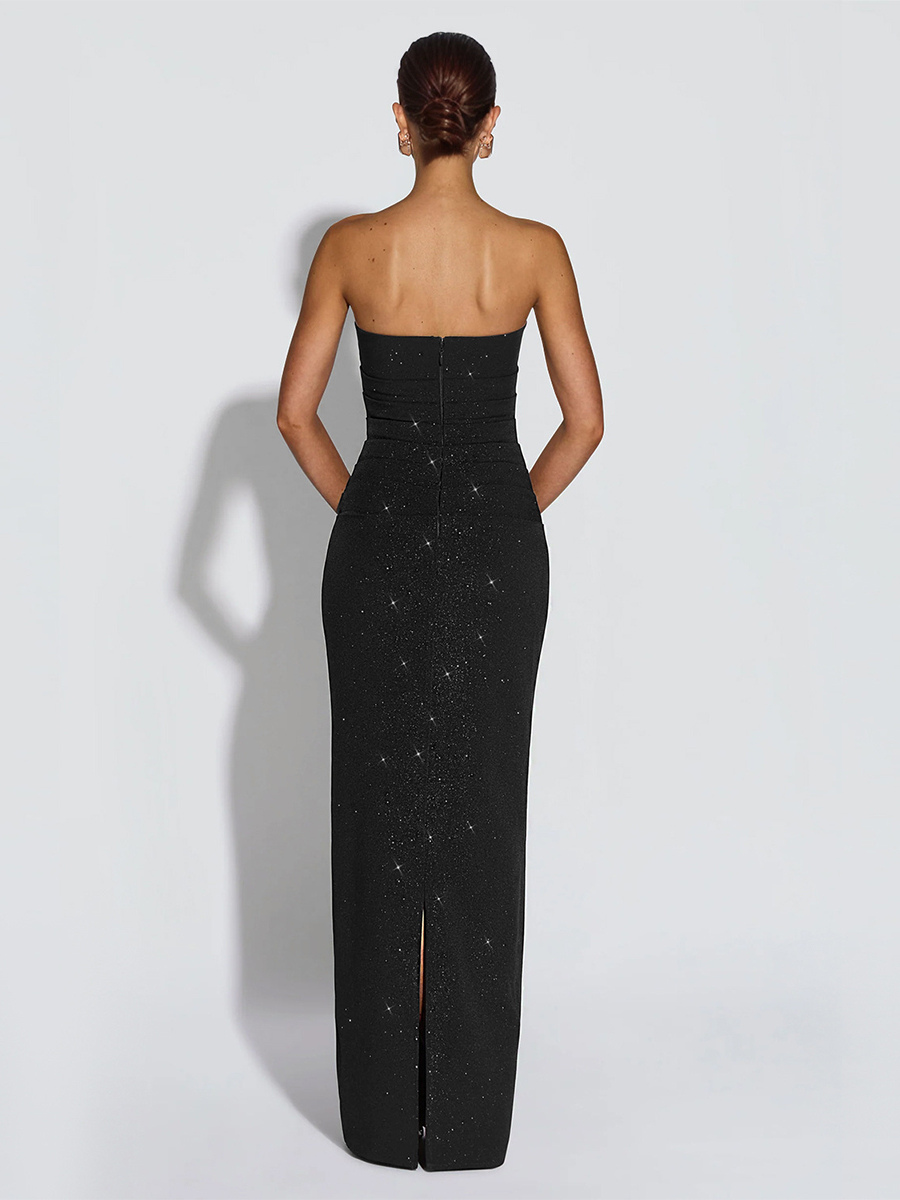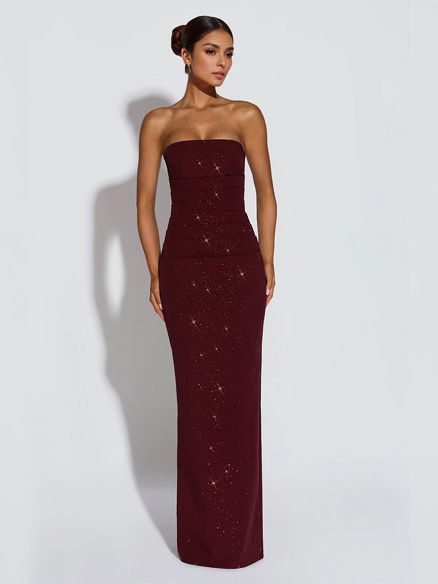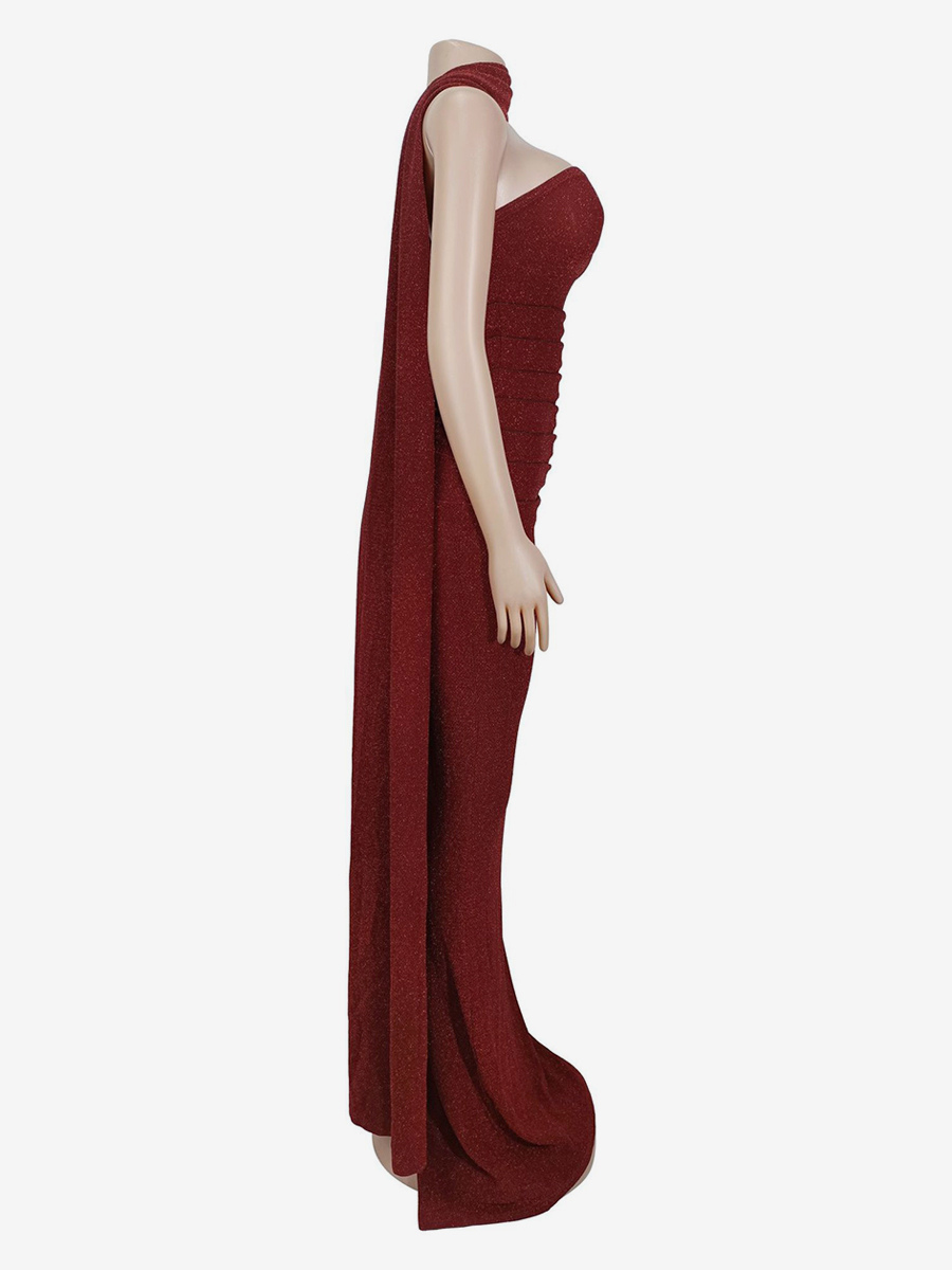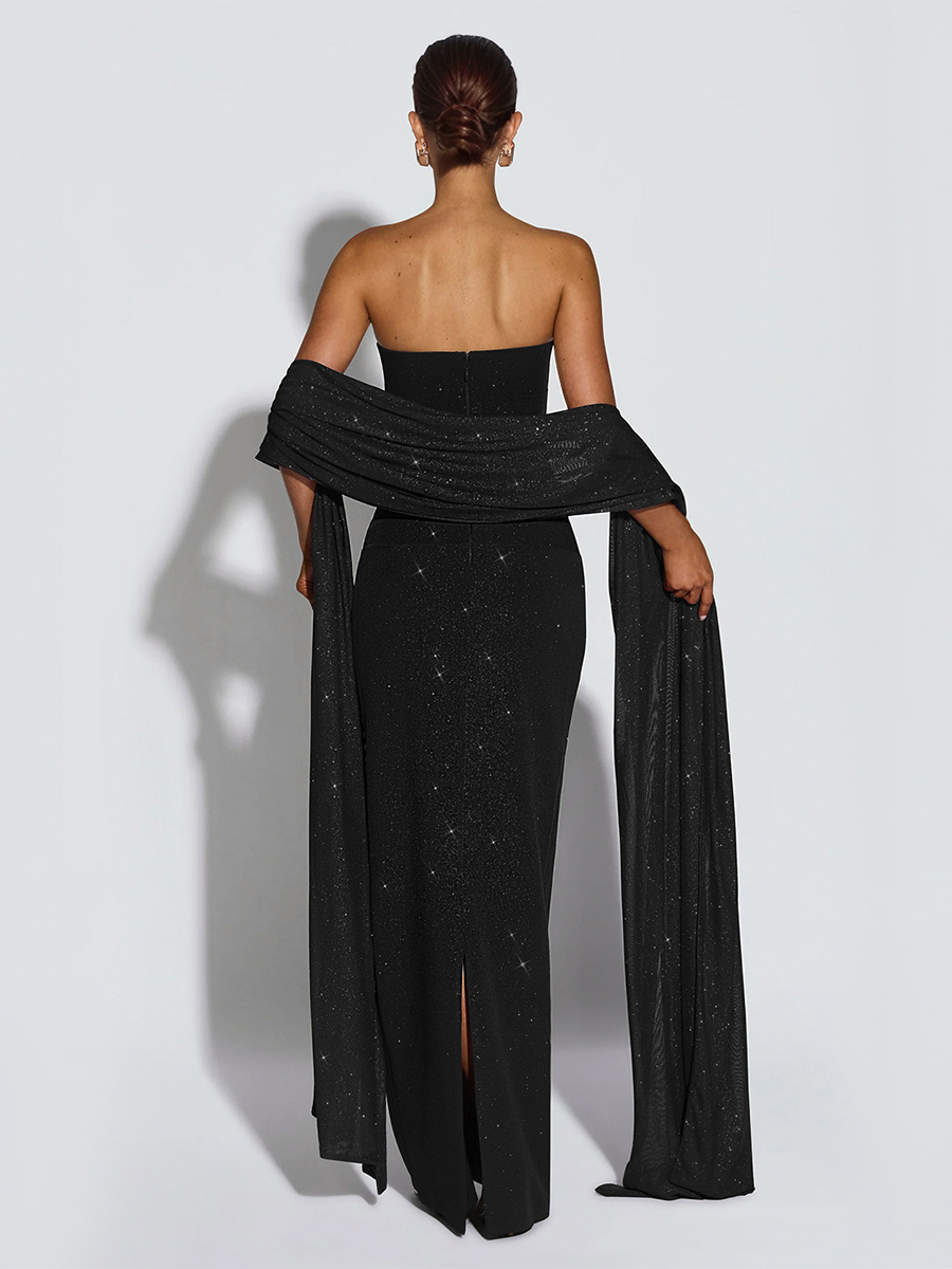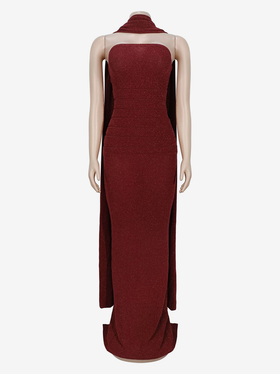 グリッターチューブマキシドレス(女性用) - セクシーな背中開きロングボディコンガウン(スカーフ付き) - 夏のイブニングフォーマル 2026