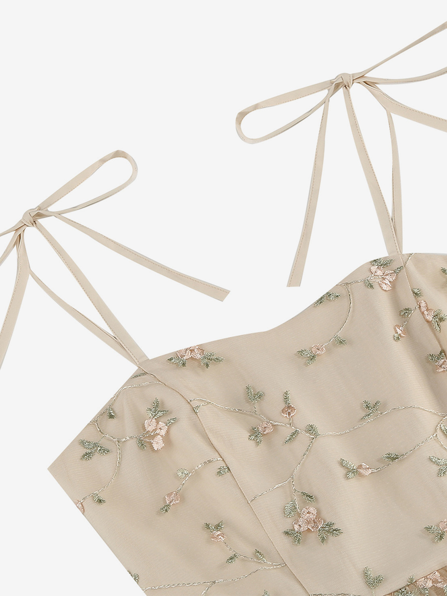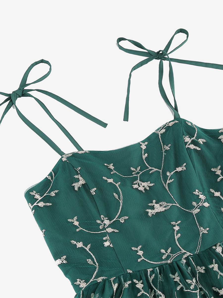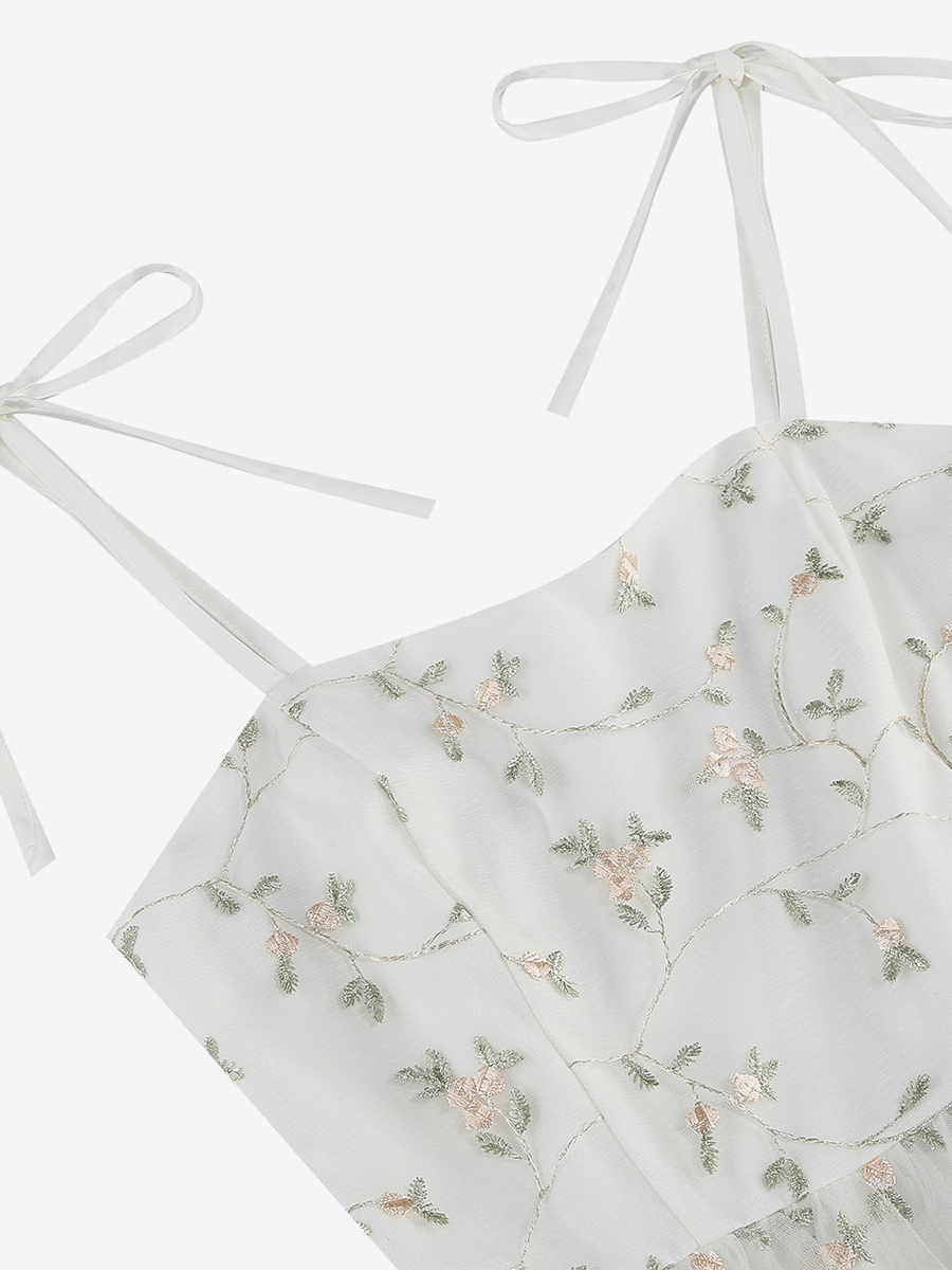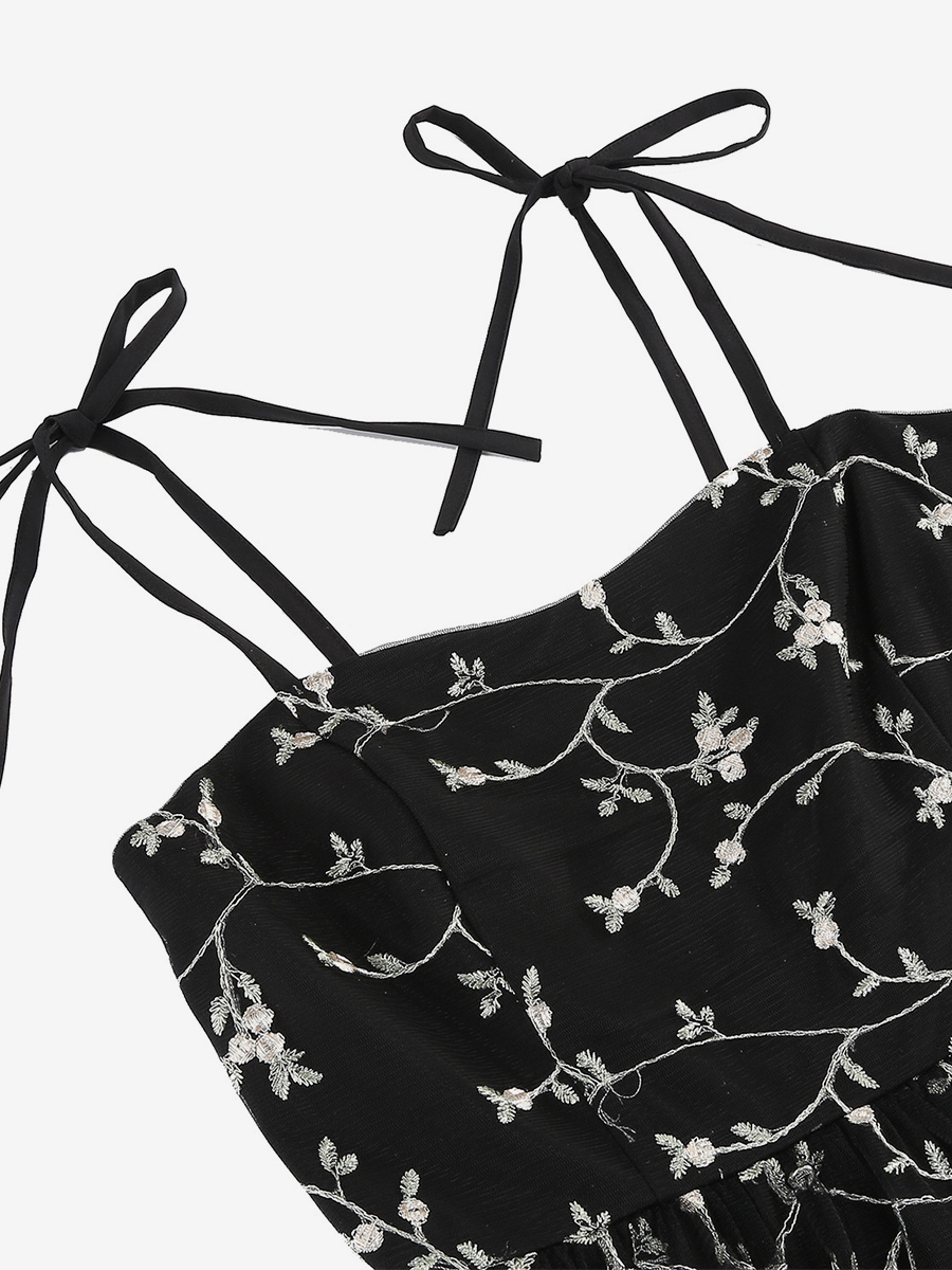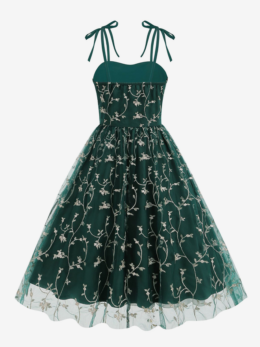 ヴィンテージ 1950年代 花柄プロムドレス(女性用) - 刺繍メッシュ タイショルダー Aライン スイング ミディドレス - サマーカクテル 2026