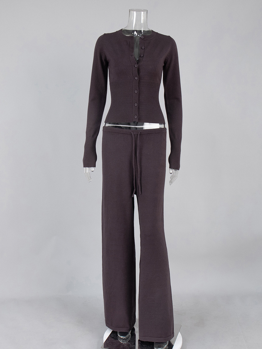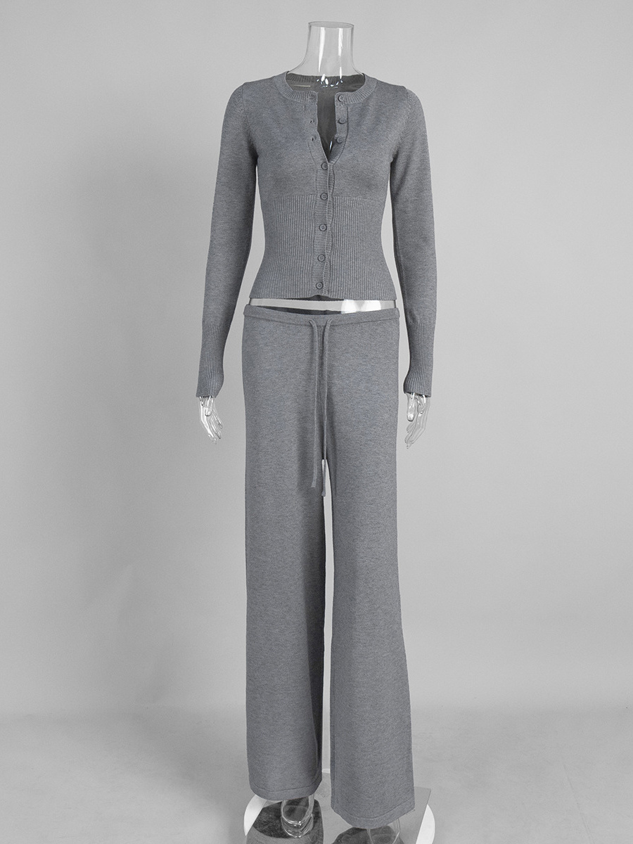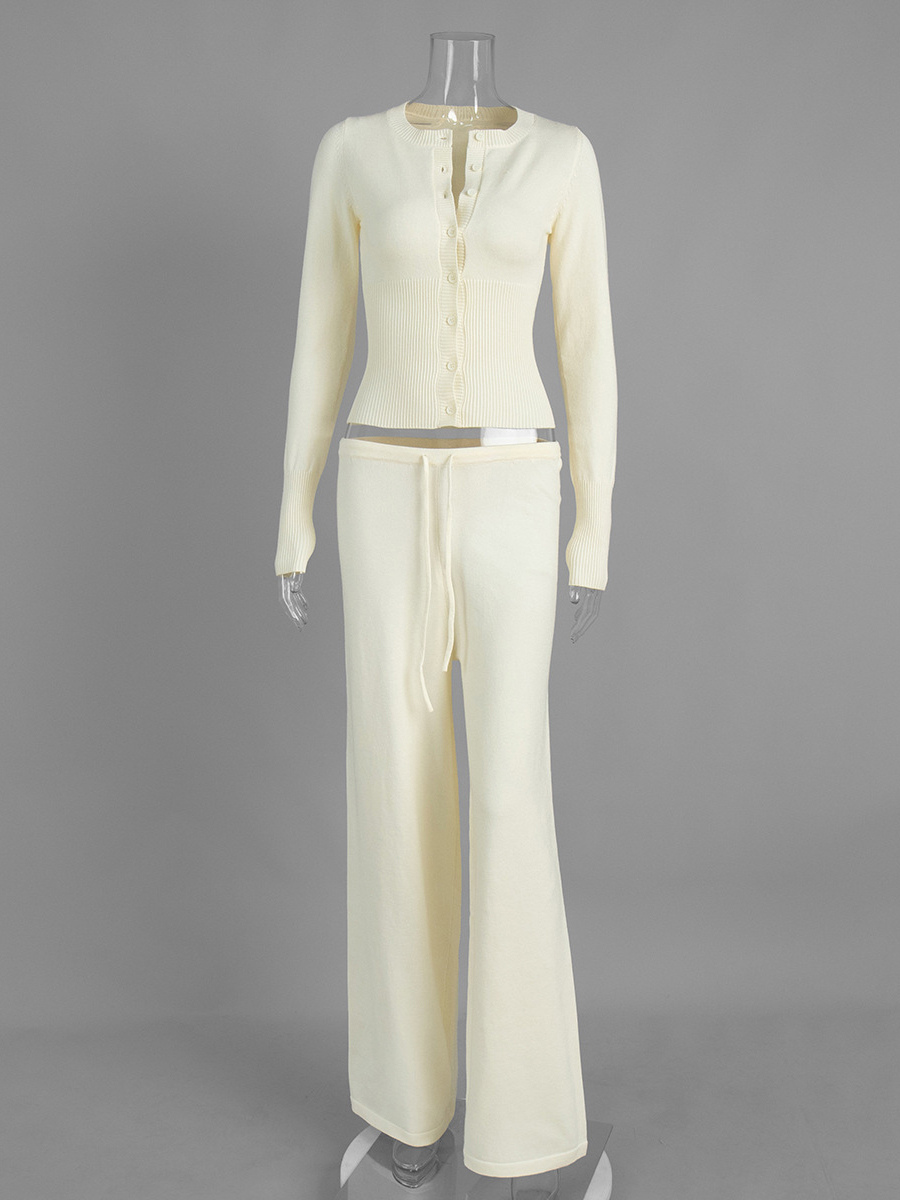リブ編みニットのツーピースセット(レディース) - スリムフィットのボタンアップカーディガンとワイドレッグのラウンジパンツ - 春のホームカジュアル 2026