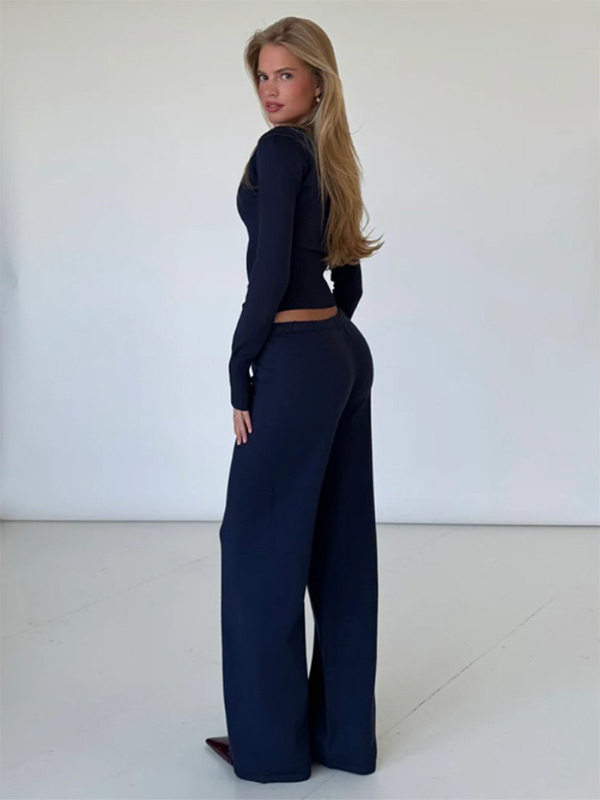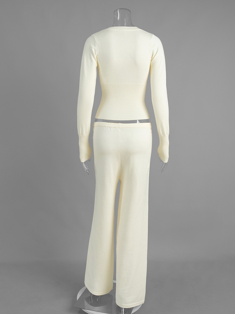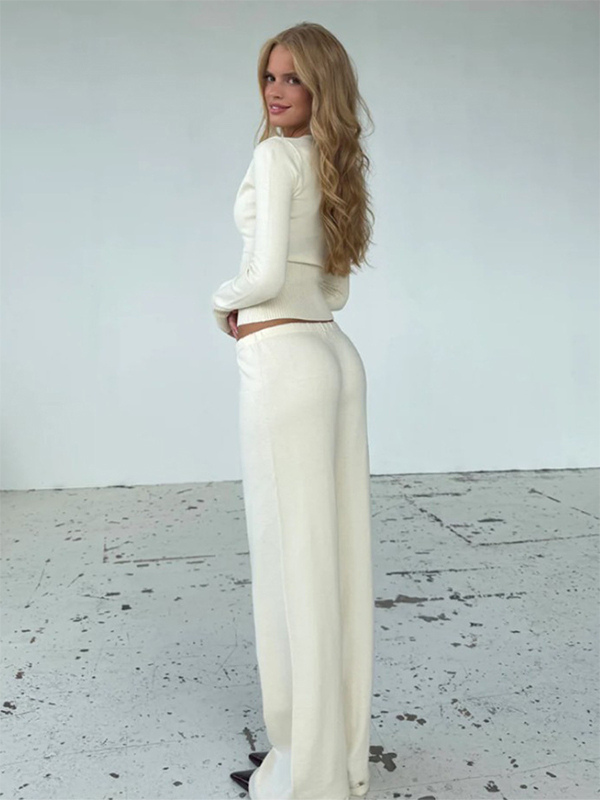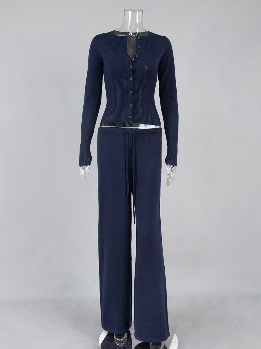 リブ編みニットのツーピースセット(レディース) - スリムフィットのボタンアップカーディガンとワイドレッグのラウンジパンツ - 春のホームカジュアル 2026