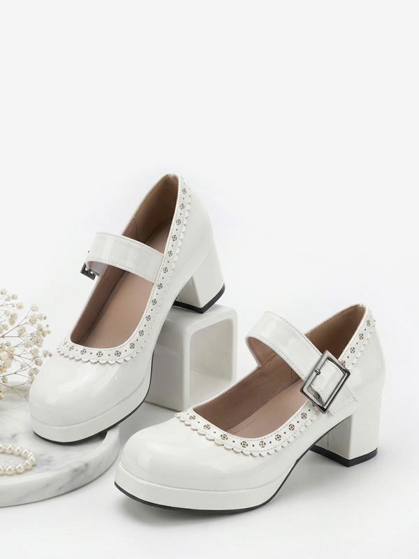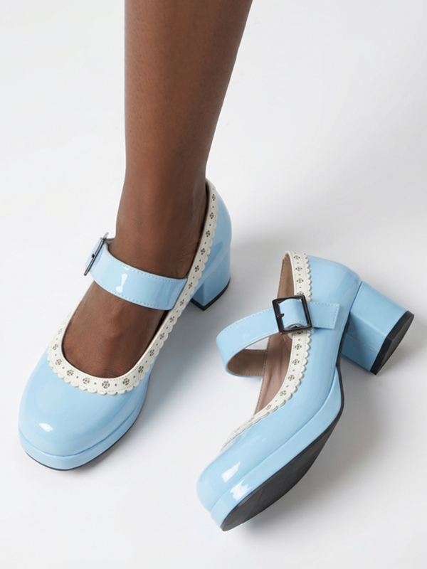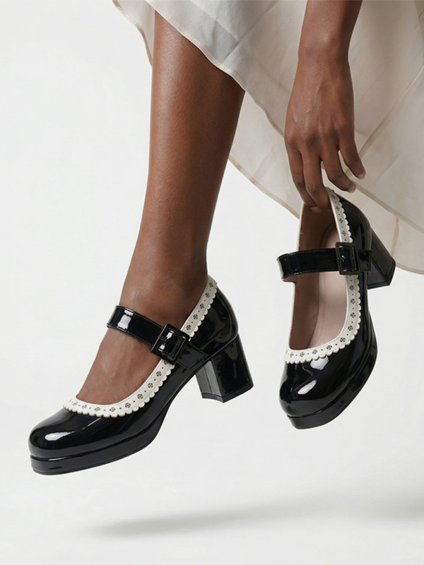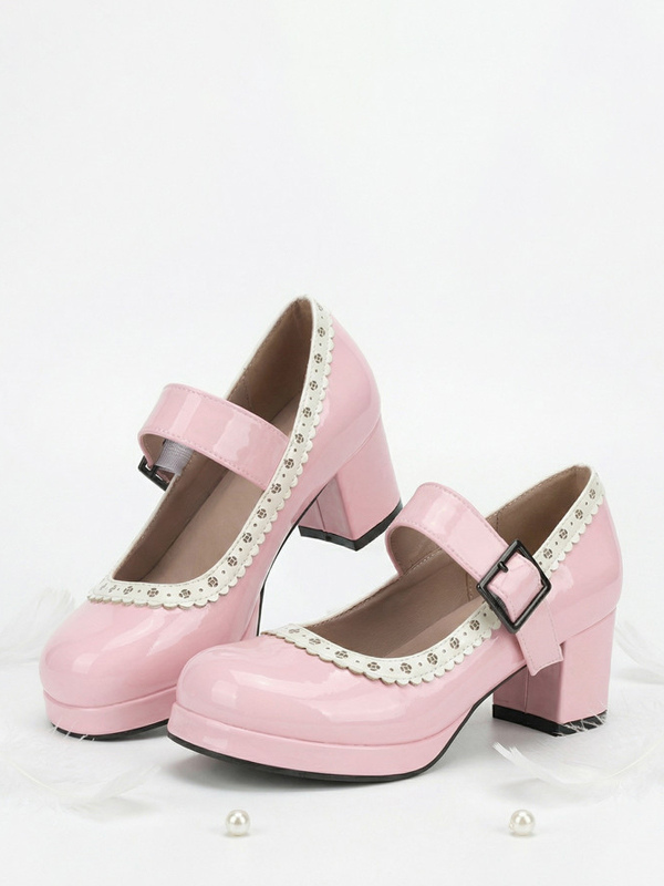 スウィートロリータシューズ ローズリボン パテントレザー チャンキーヒール ロリータシューズ