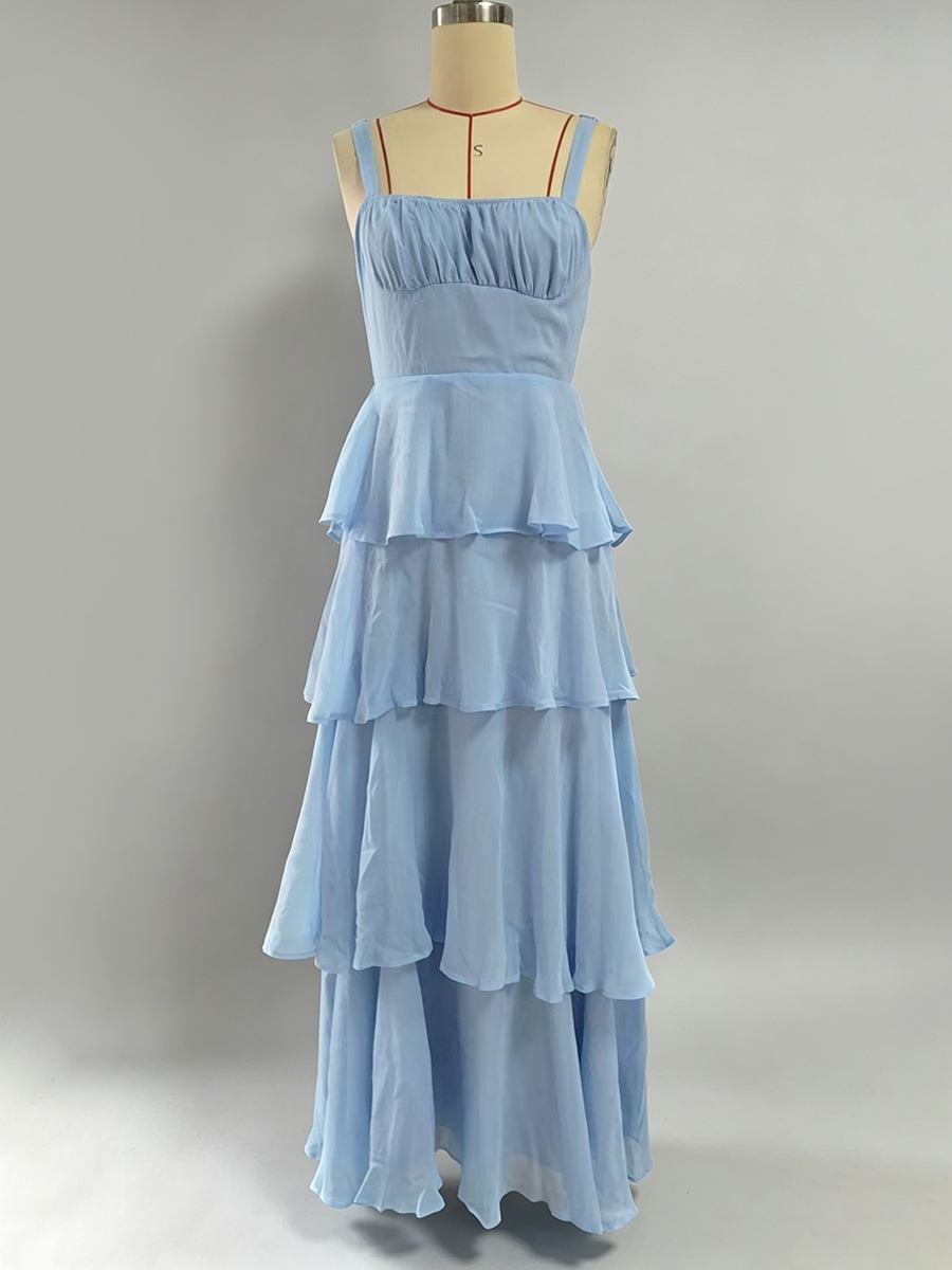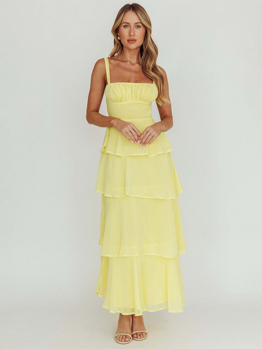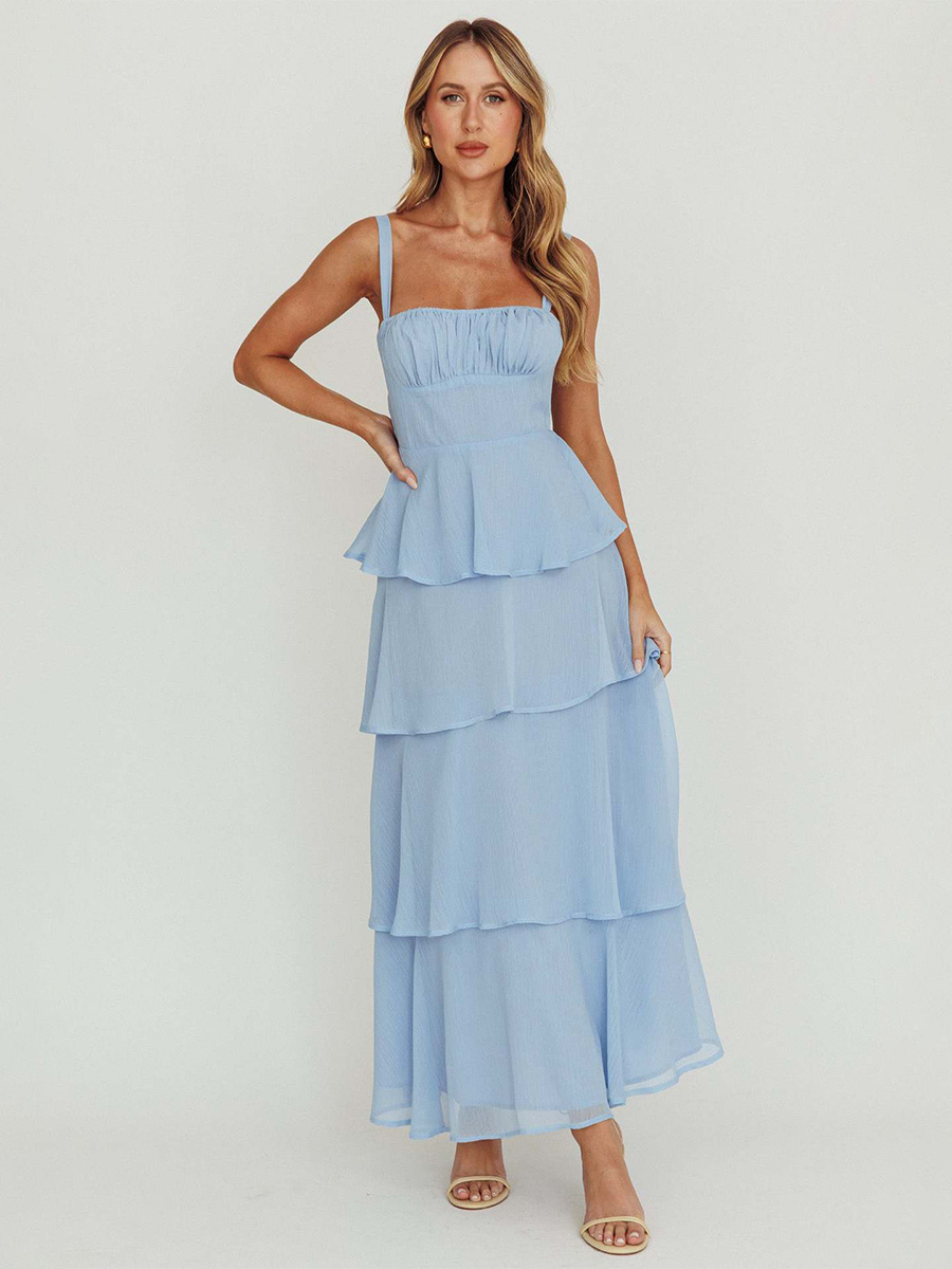 ティアードフリルマキシスリップドレス(女性用) - フェアリーコアスクエアネックタイバックAラインガウン - 夏のビーチウェディングゲスト 2026