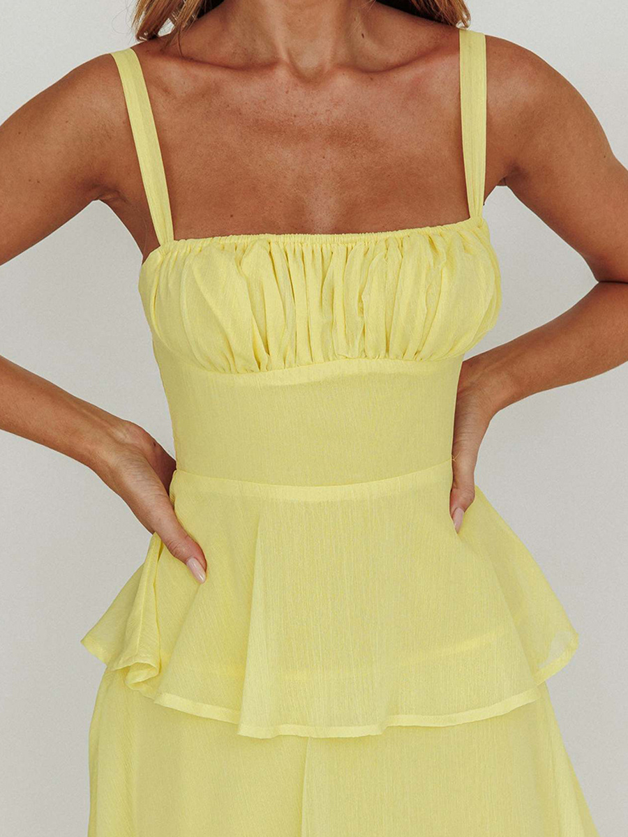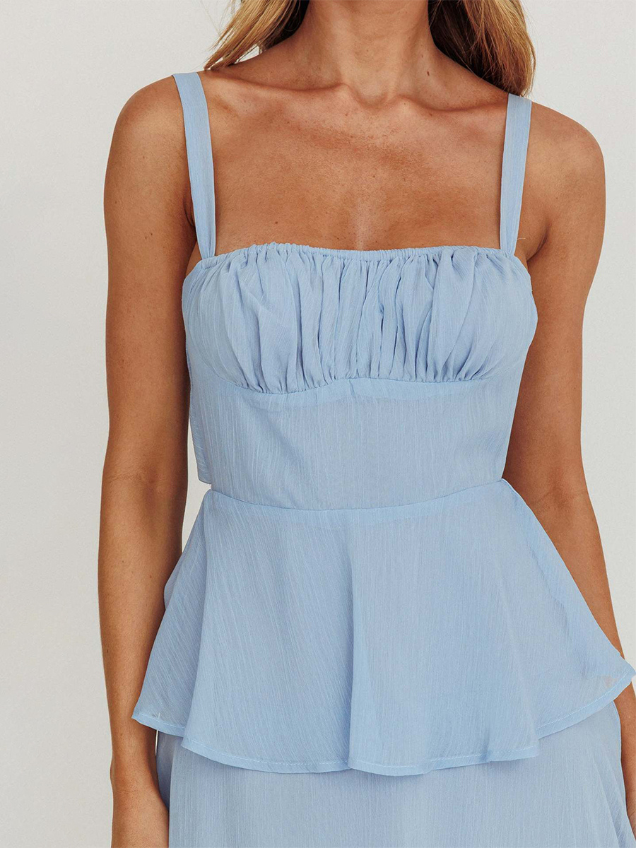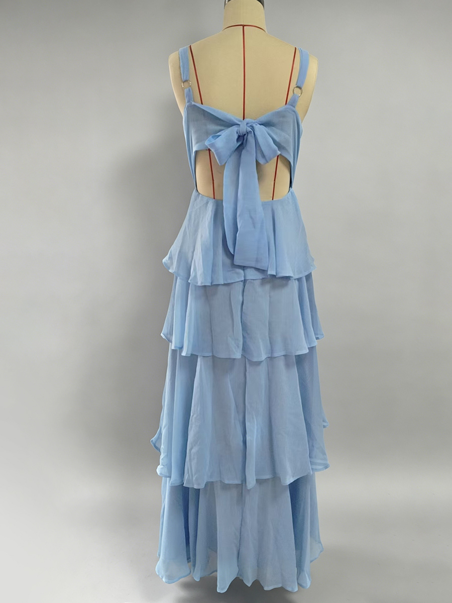 ティアードフリルマキシスリップドレス(女性用) - フェアリーコアスクエアネックタイバックAラインガウン - 夏のビーチウェディングゲスト 2026