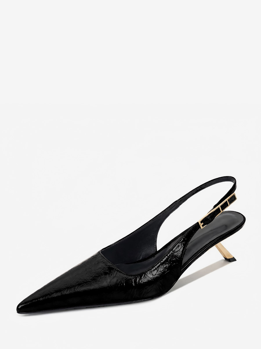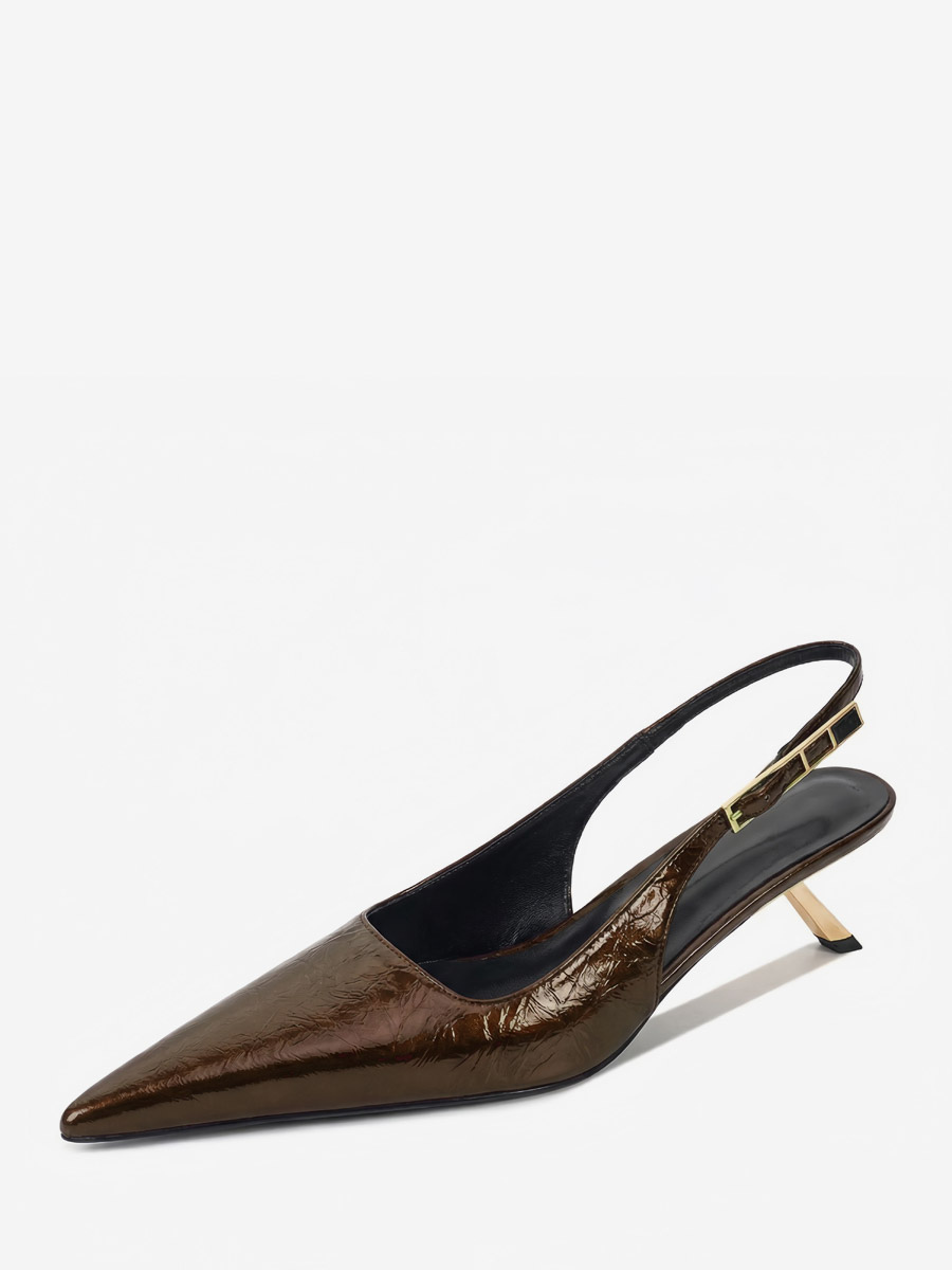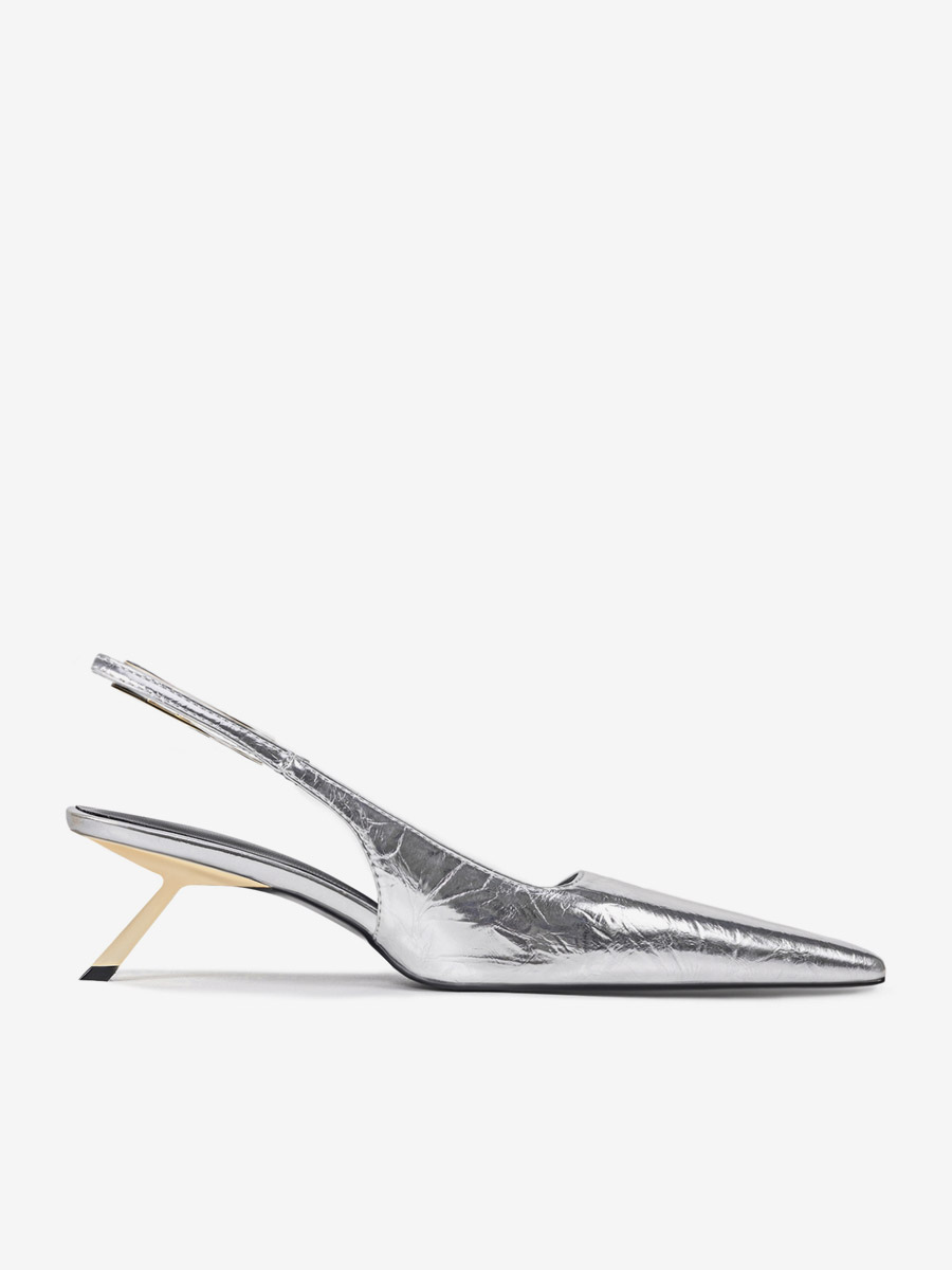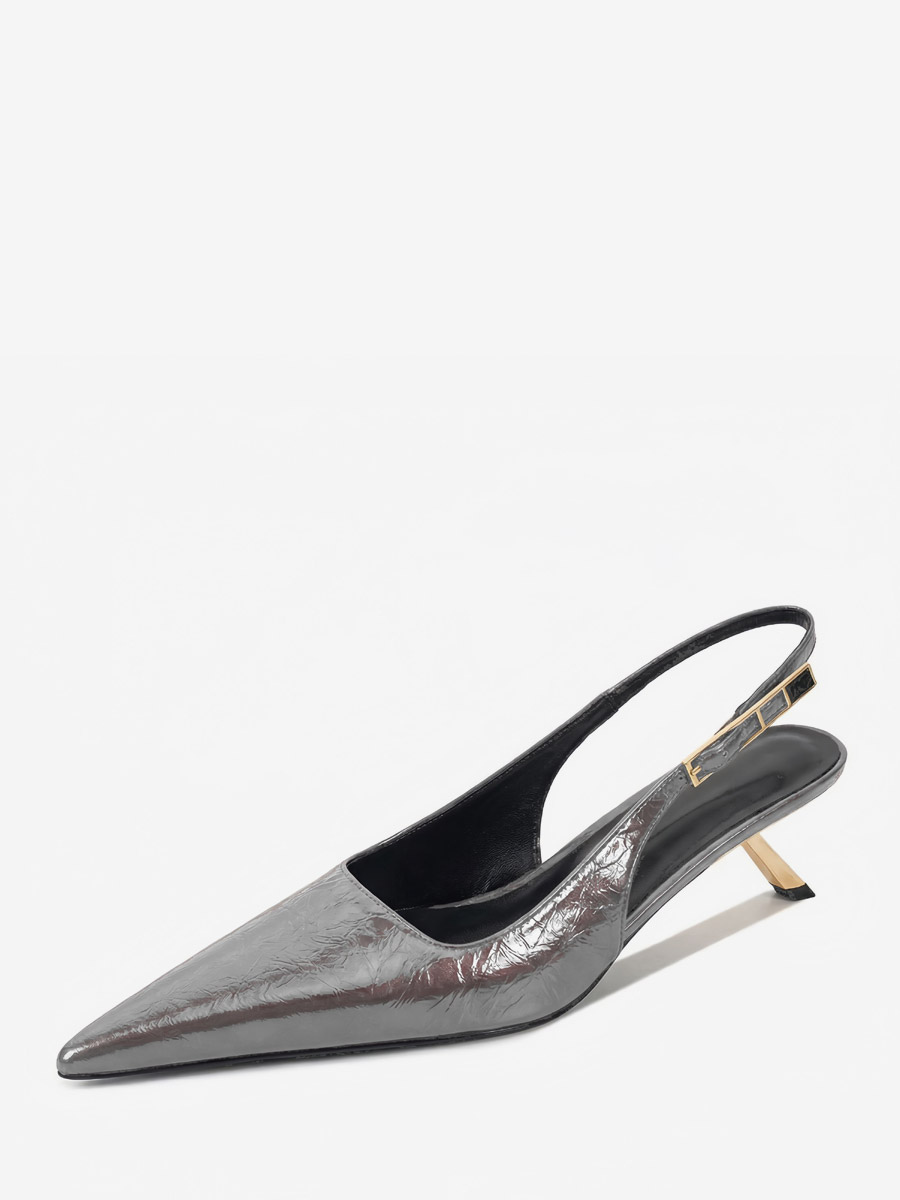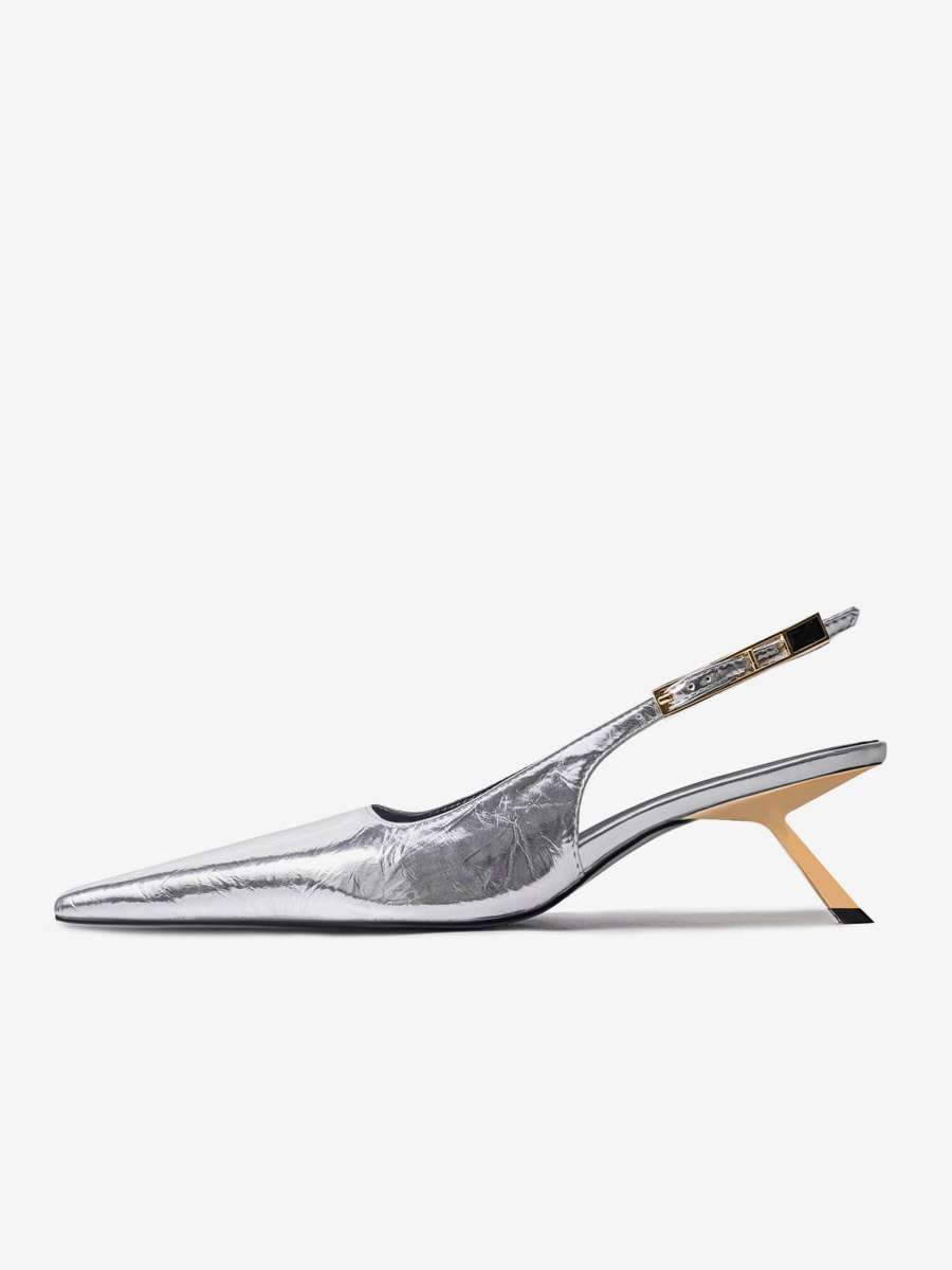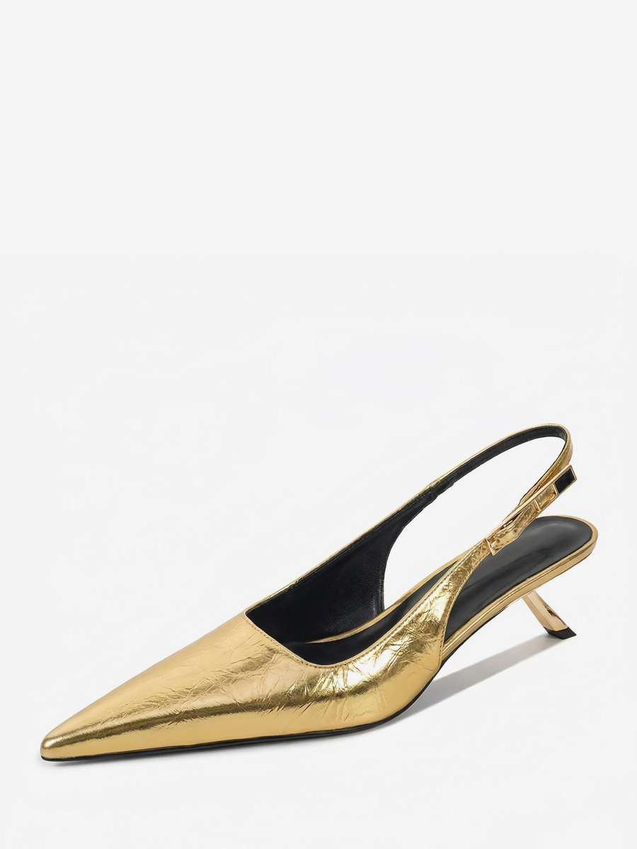 シルバーのハイヒールパンプス、レディース、ポインテッドトゥ、スリングバック、キトゥンヒールパンプス