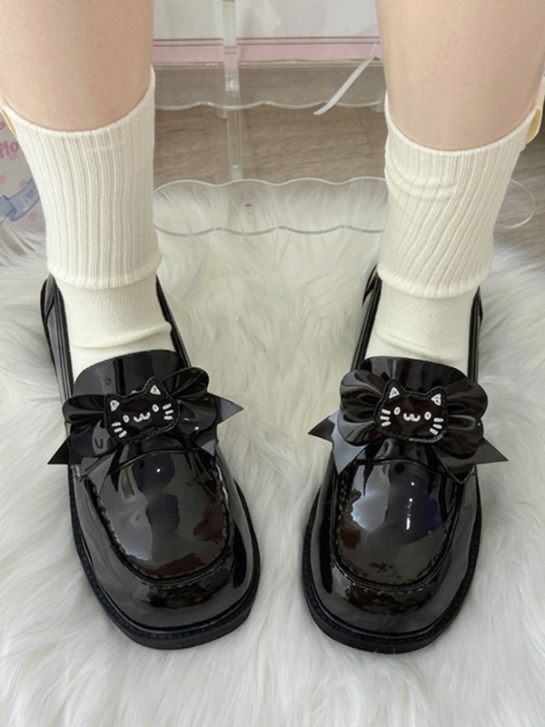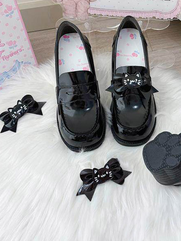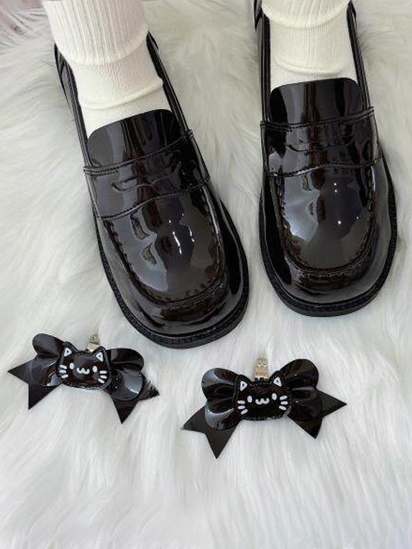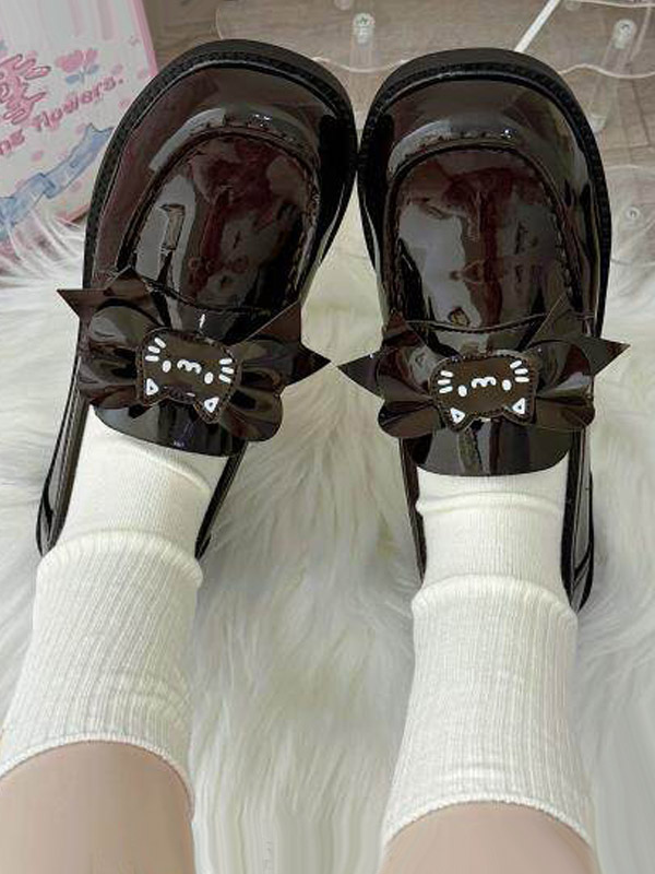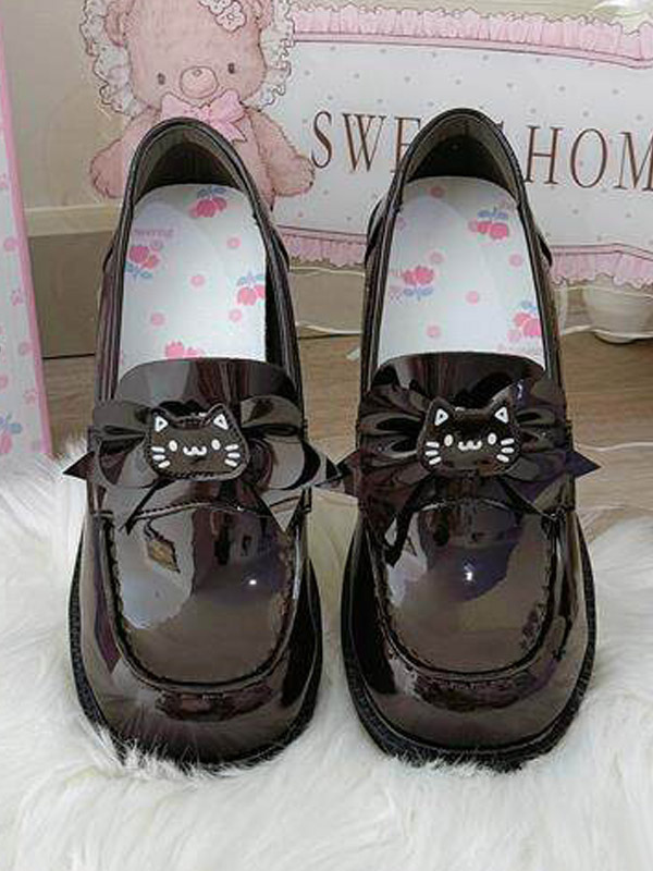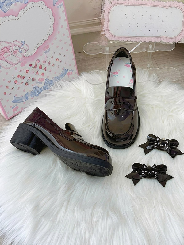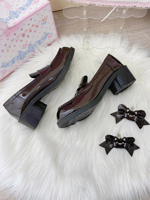 ゴシックロリータローファーシューズ ブラウンPUレザー チャンキーヒール ロリータパンプス