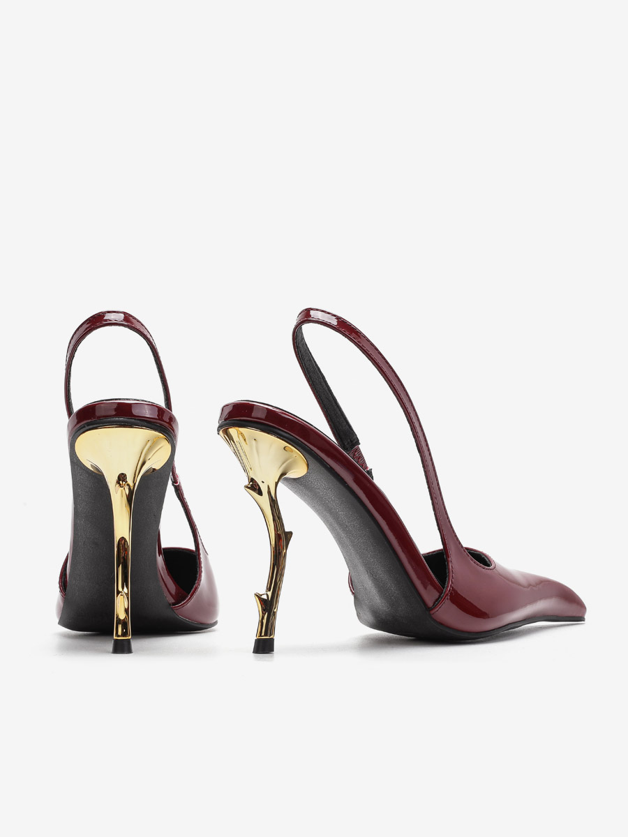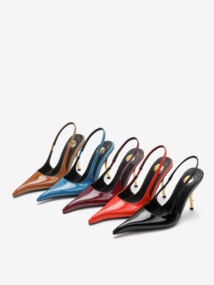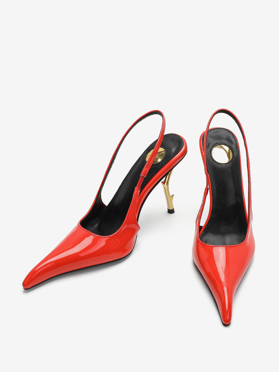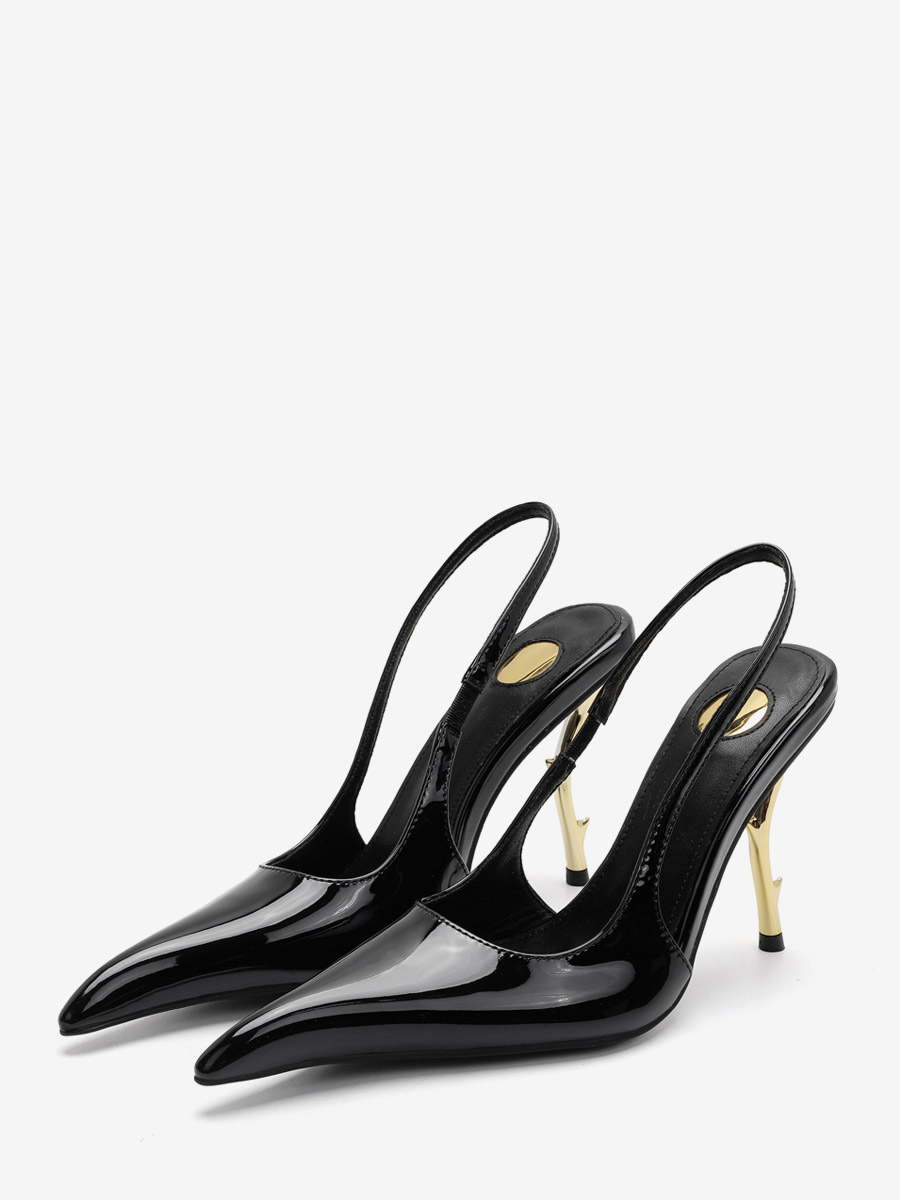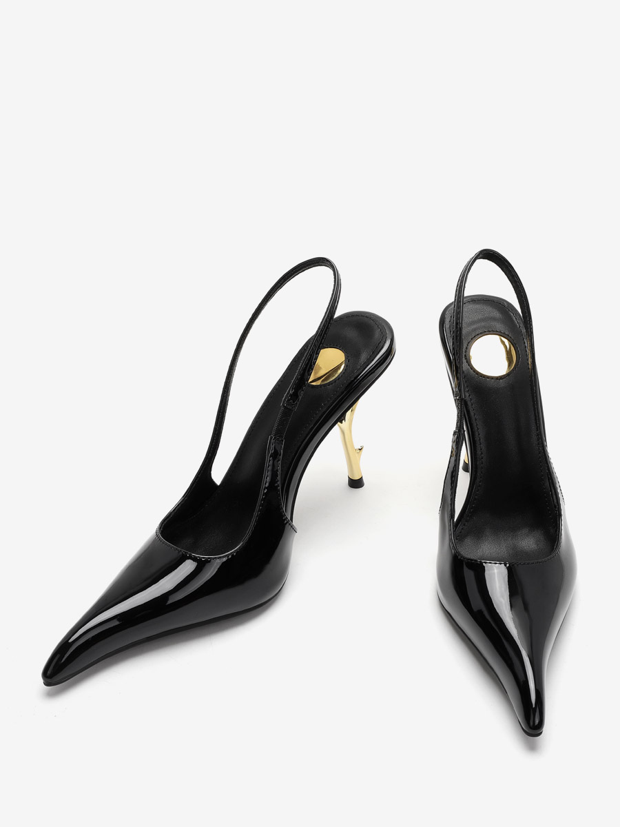 ハイヒール スリングバック パンプス レディース ポインテッドトゥ デザインヒール パーティシューズ