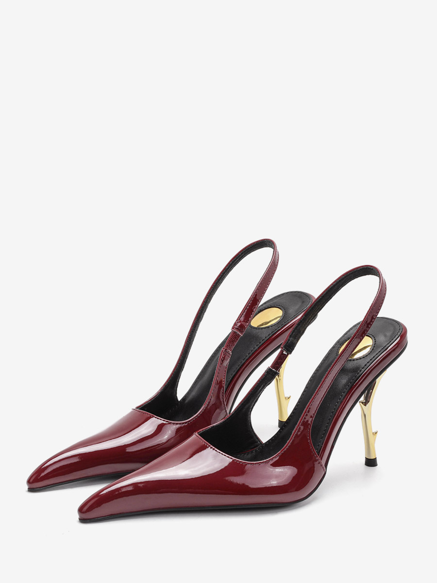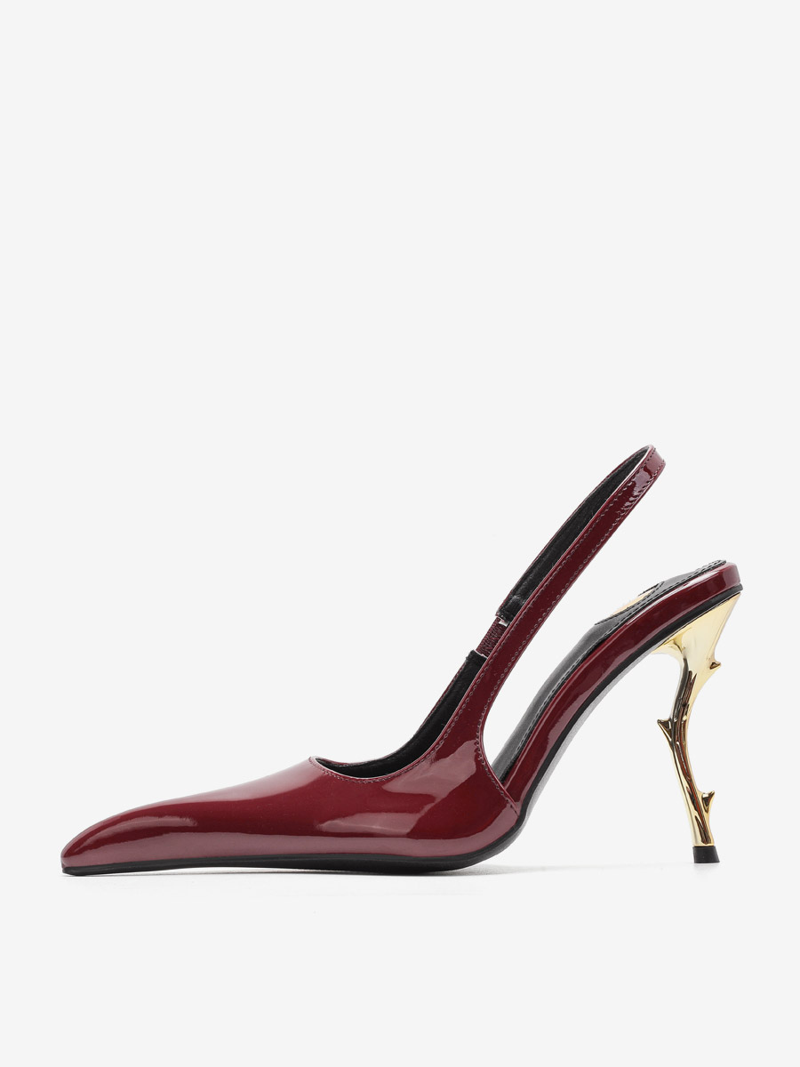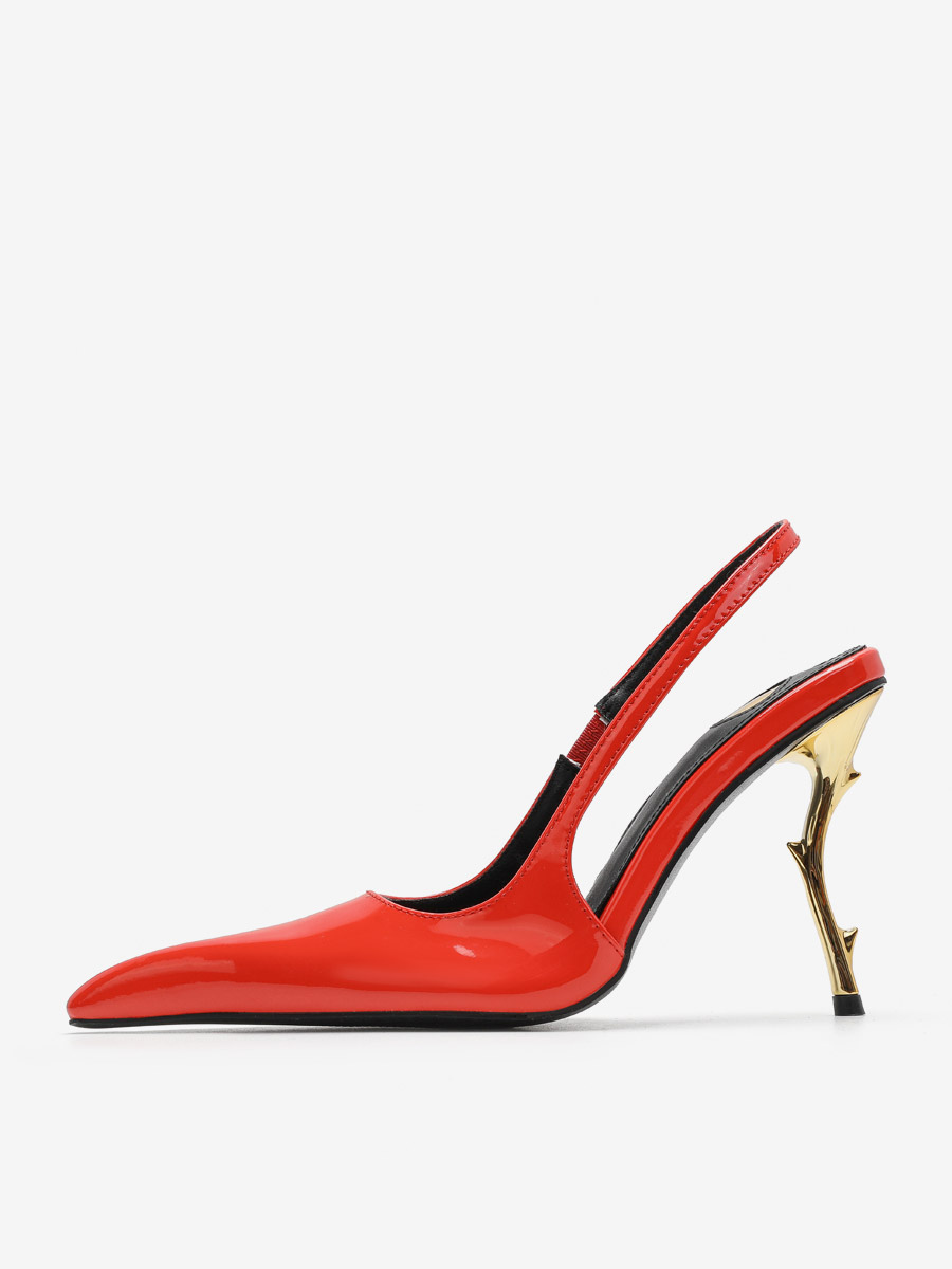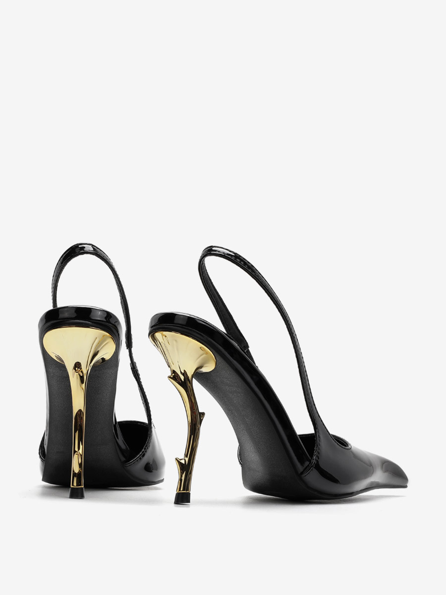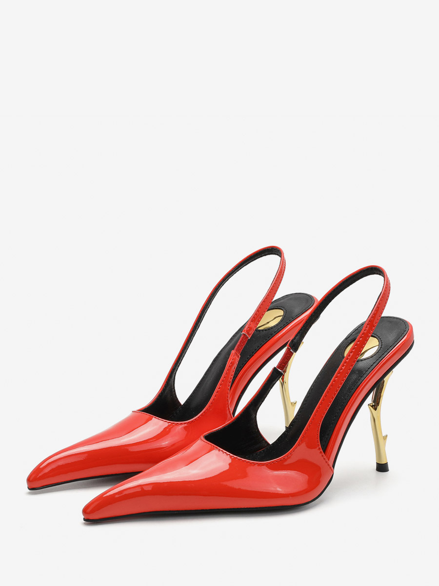 ハイヒール スリングバック パンプス レディース ポインテッドトゥ デザインヒール パーティシューズ