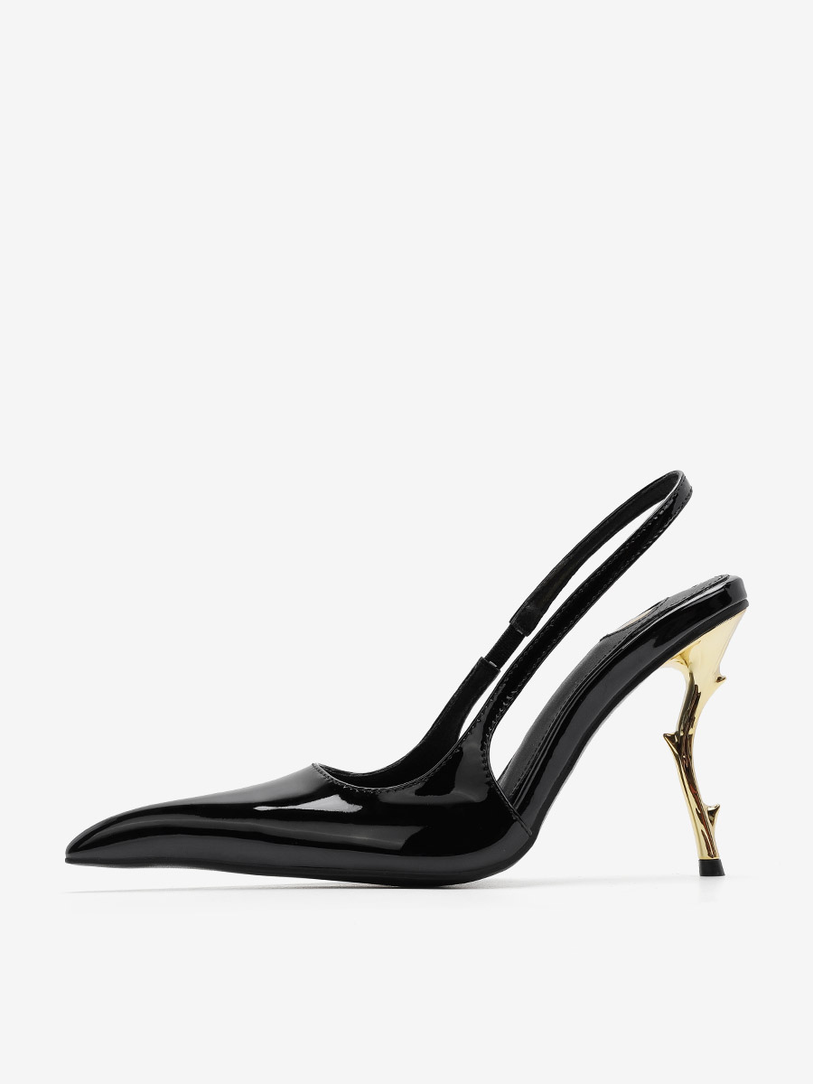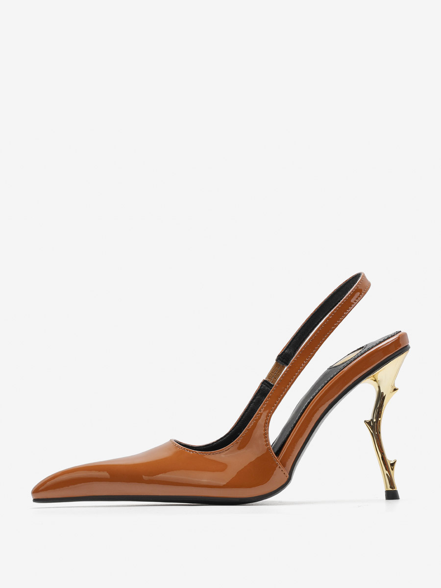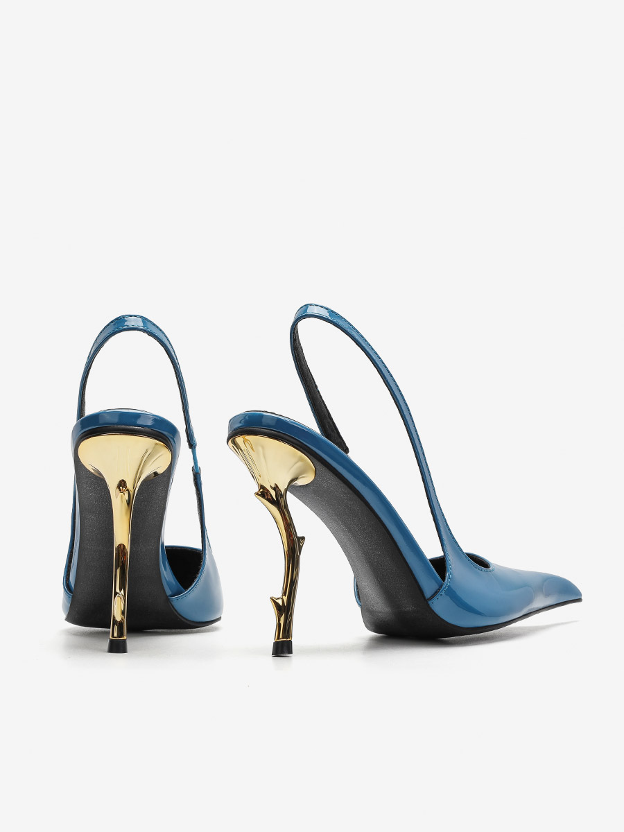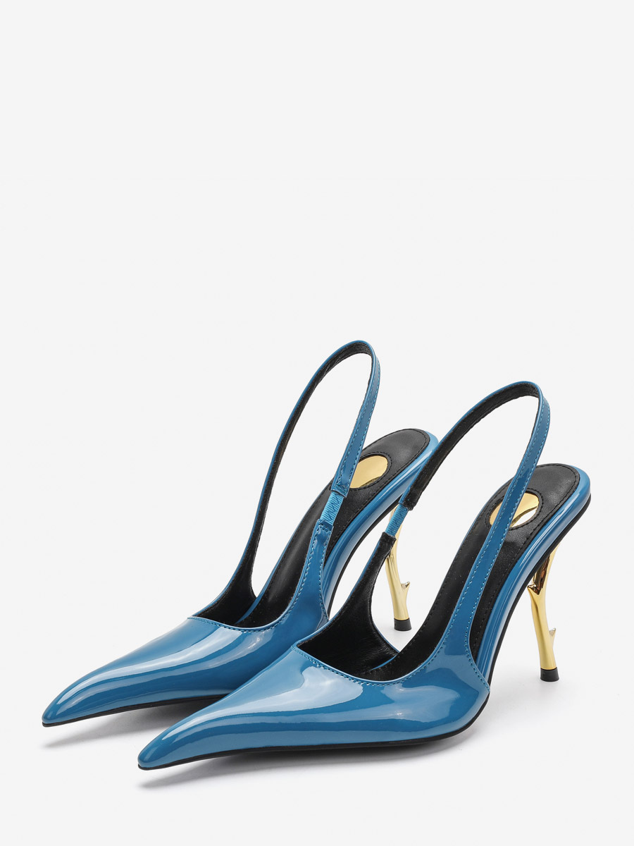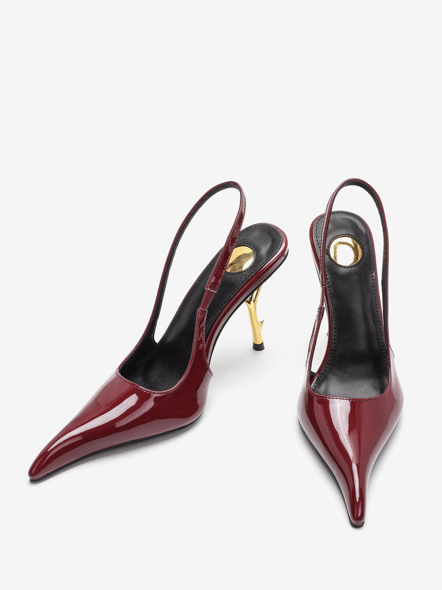 ハイヒール スリングバック パンプス レディース ポインテッドトゥ デザインヒール パーティシューズ