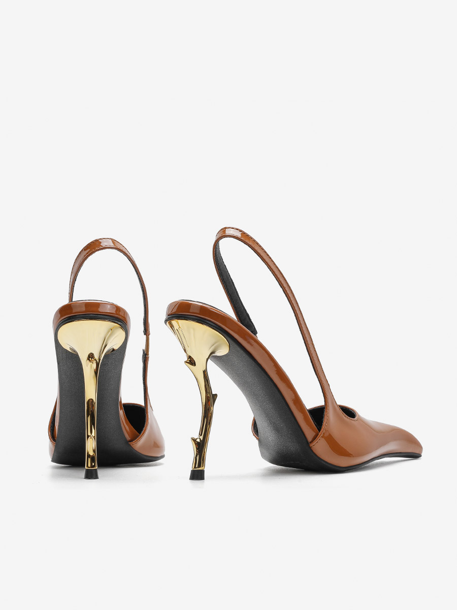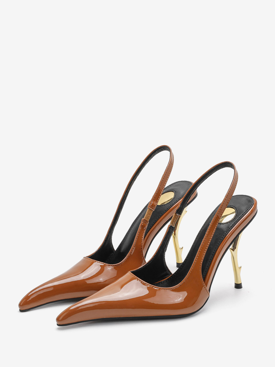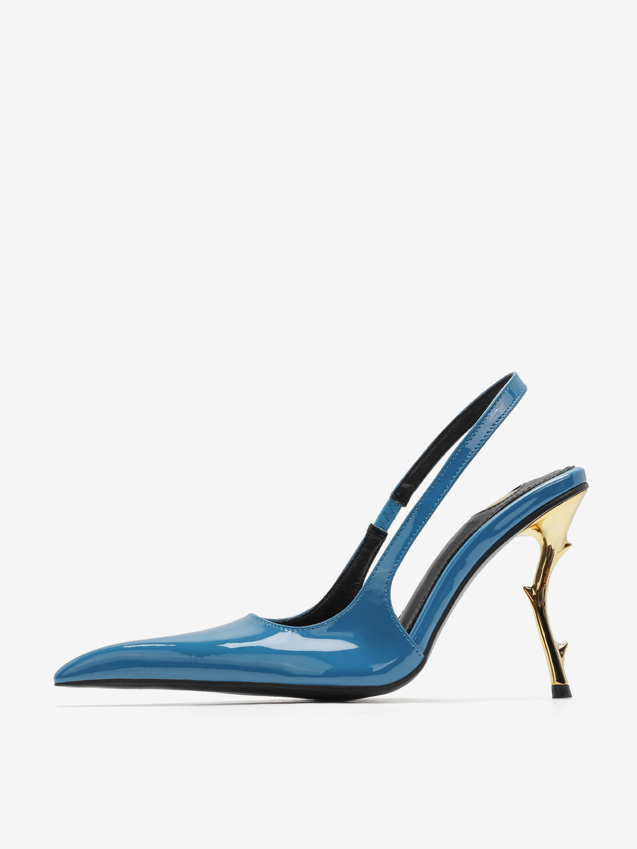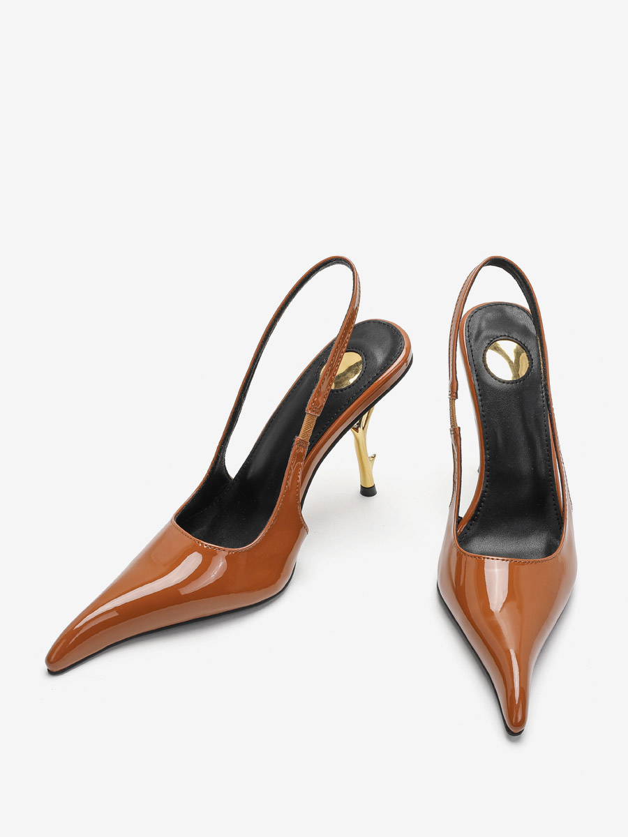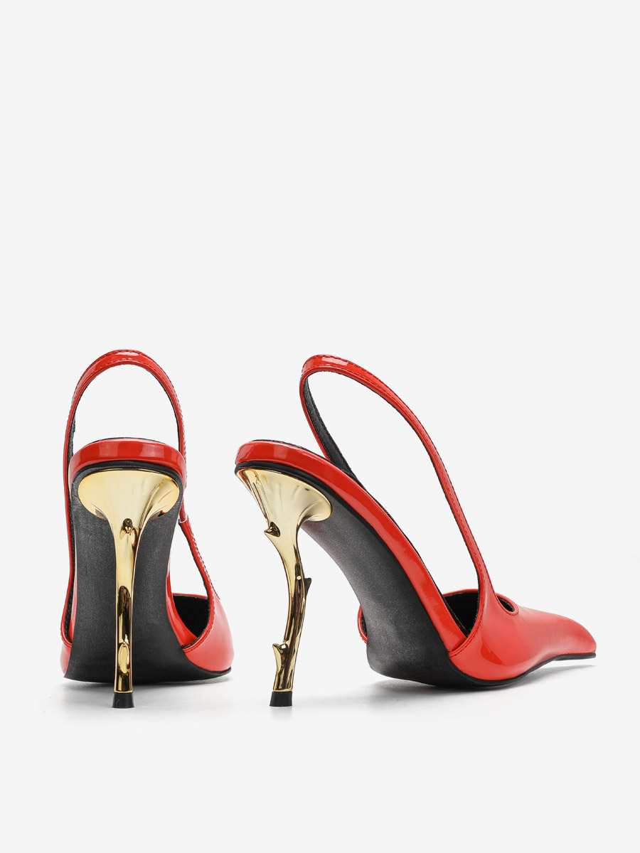 ハイヒール スリングバック パンプス レディース ポインテッドトゥ デザインヒール パーティシューズ