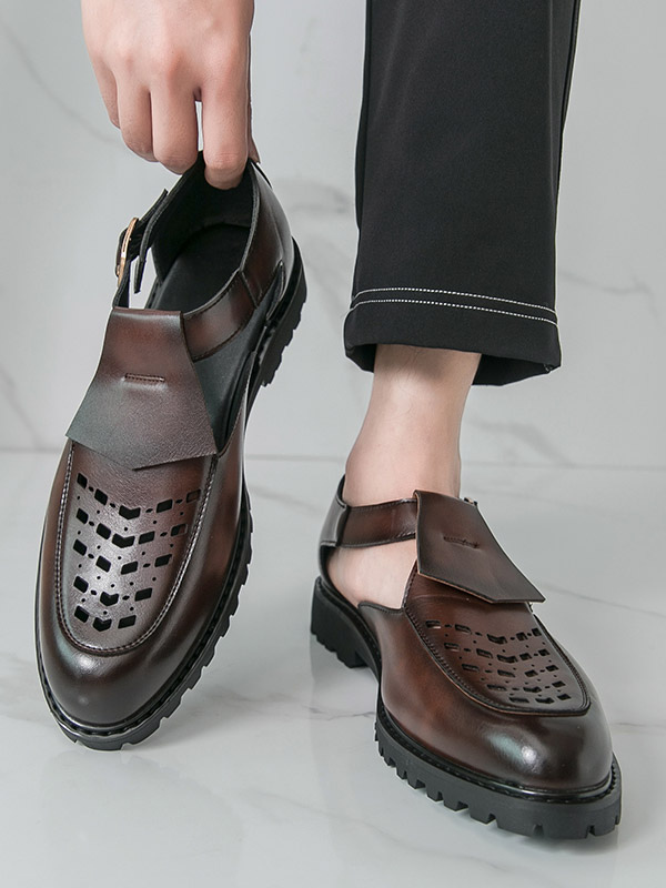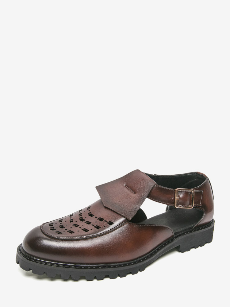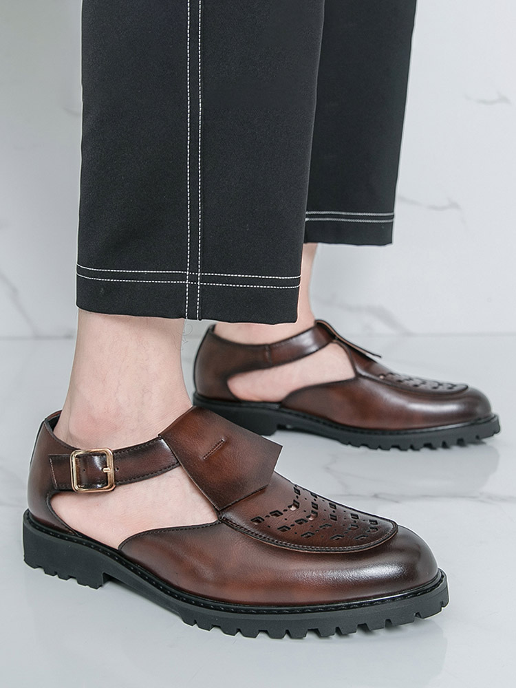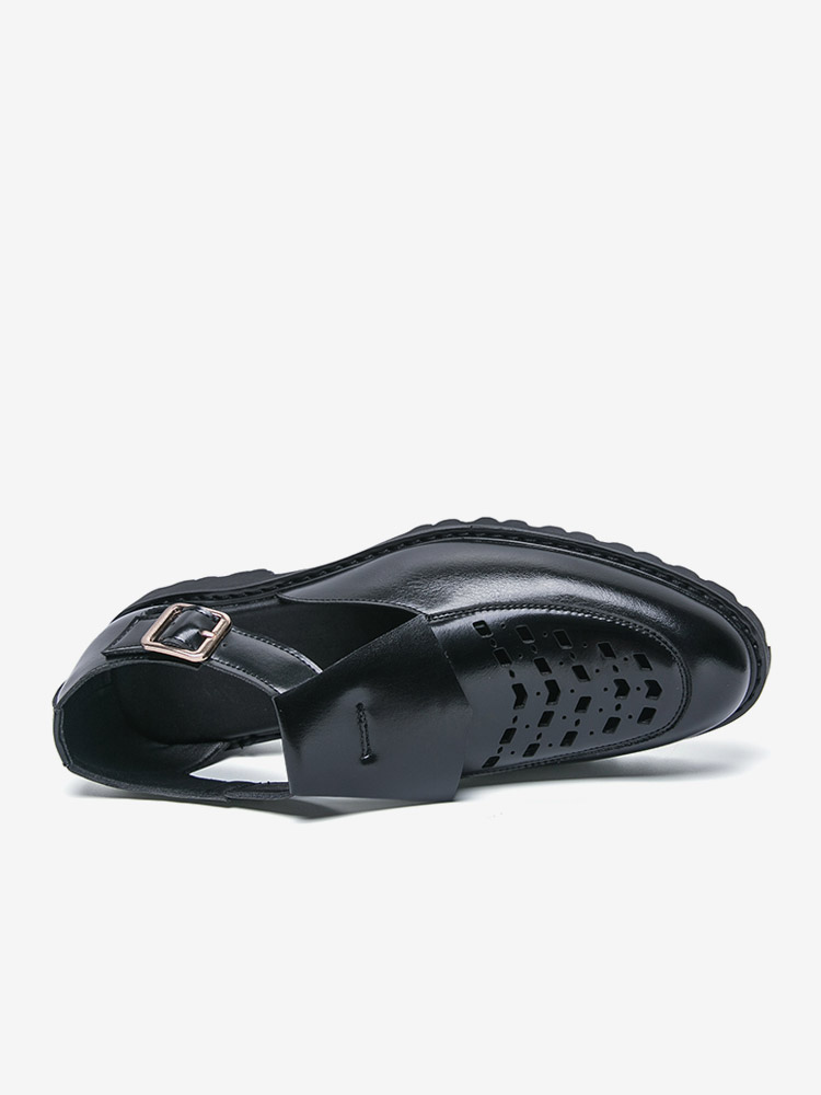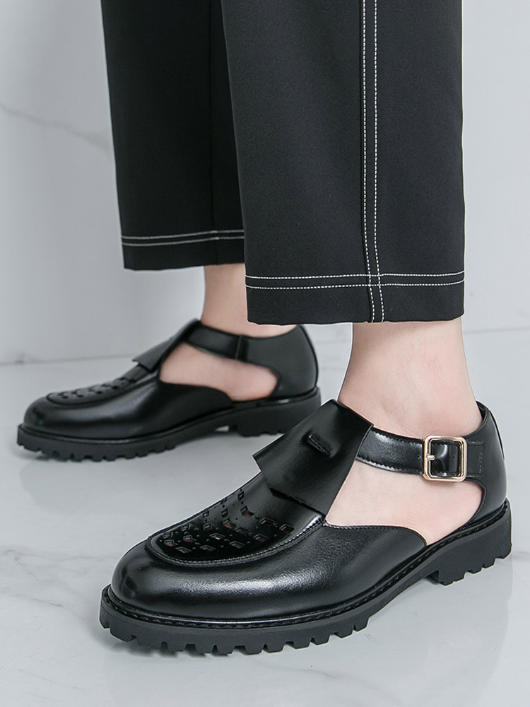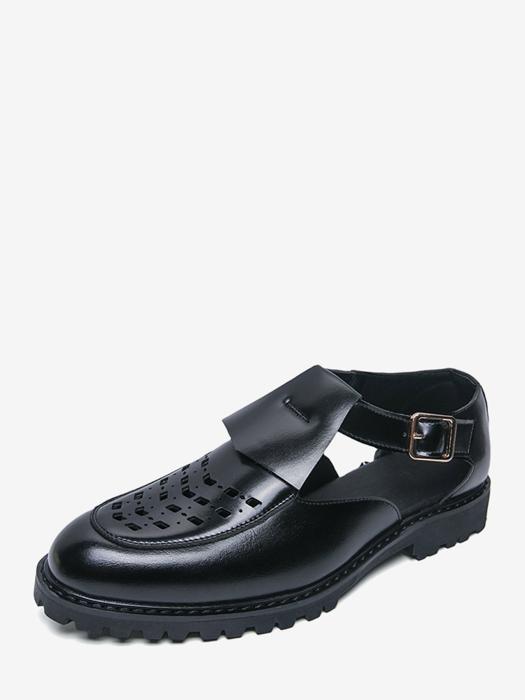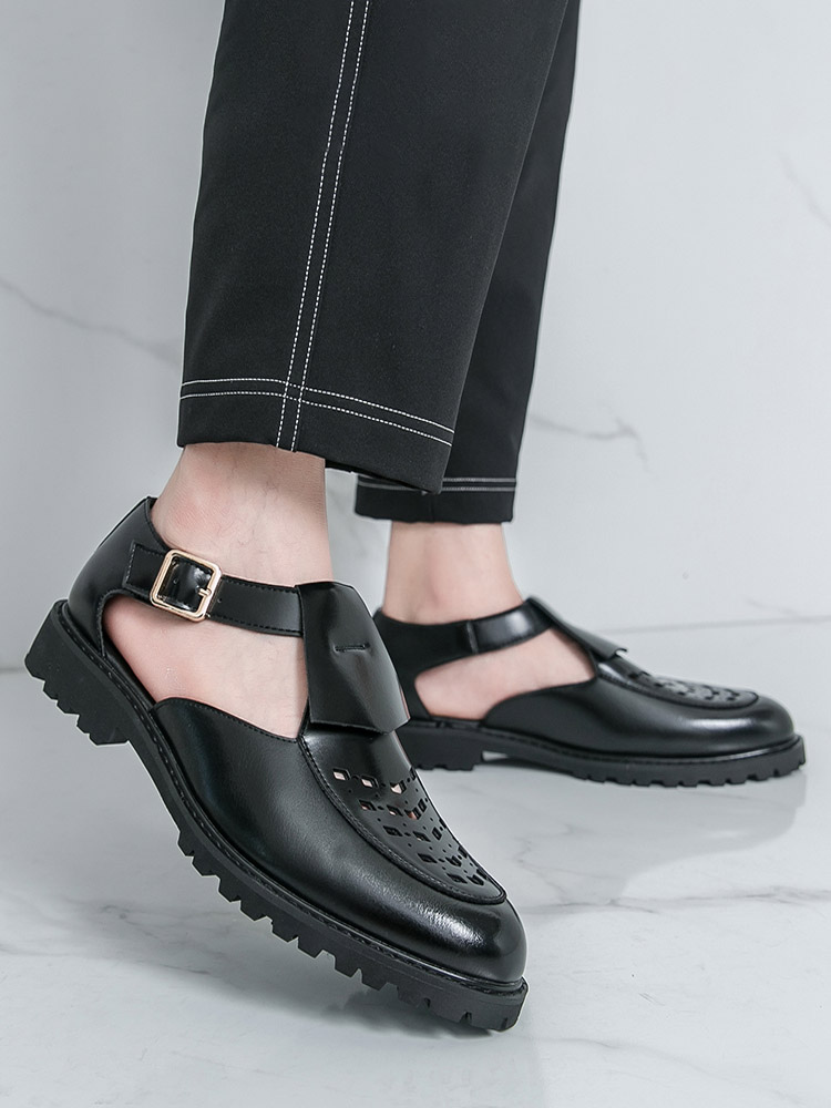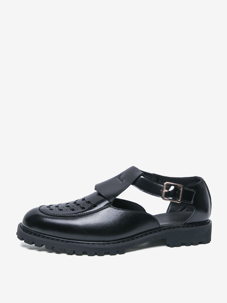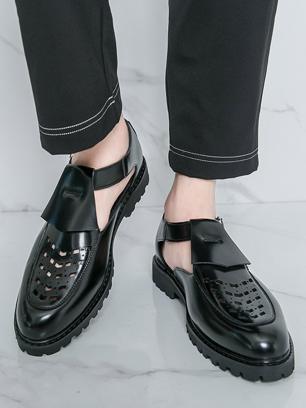 ブラック グラディエーターシューズ メンズ ラウンドトゥ カットアウトサンダルシューズ